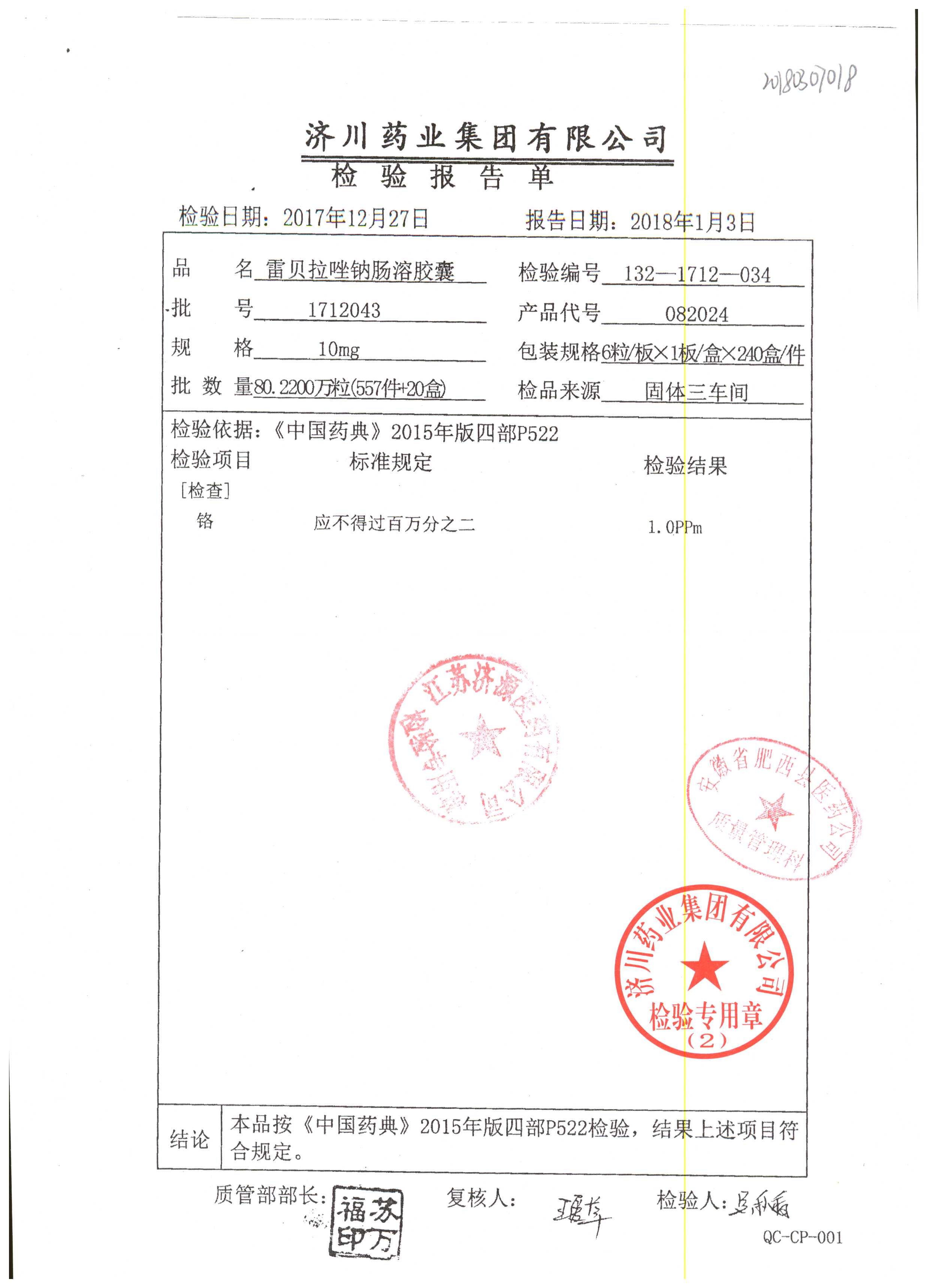 | 名稱(chēng) | 規(guī)格 | 批號(hào) | 藥檢報(bào)告 |