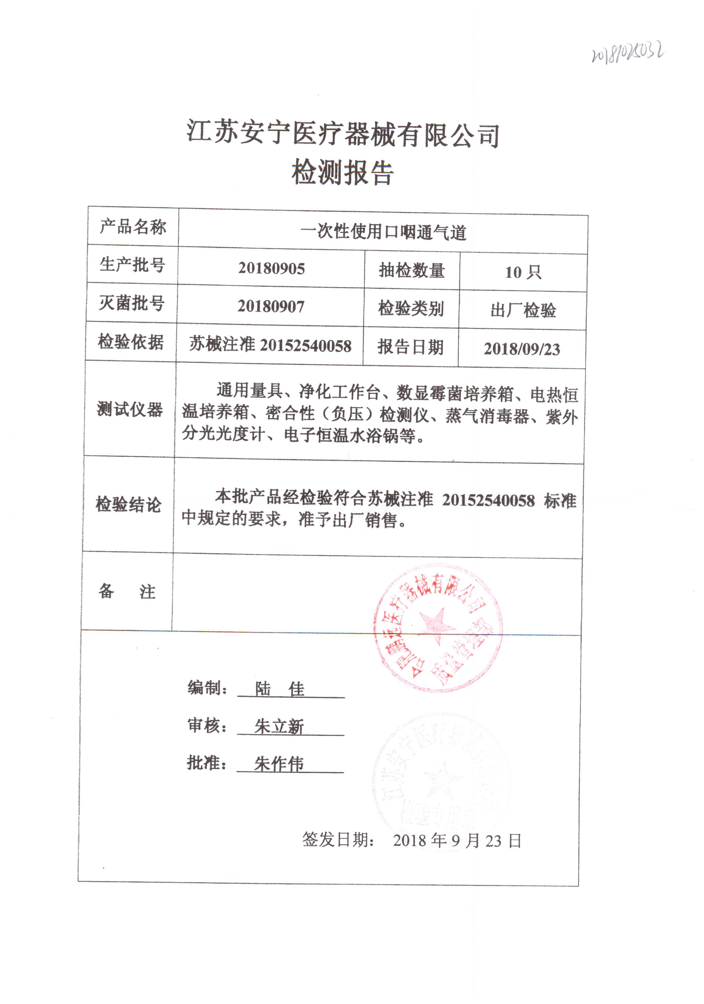 | 一次性使用口咽通氣道 | / | 20180905 | 查看詳情 |