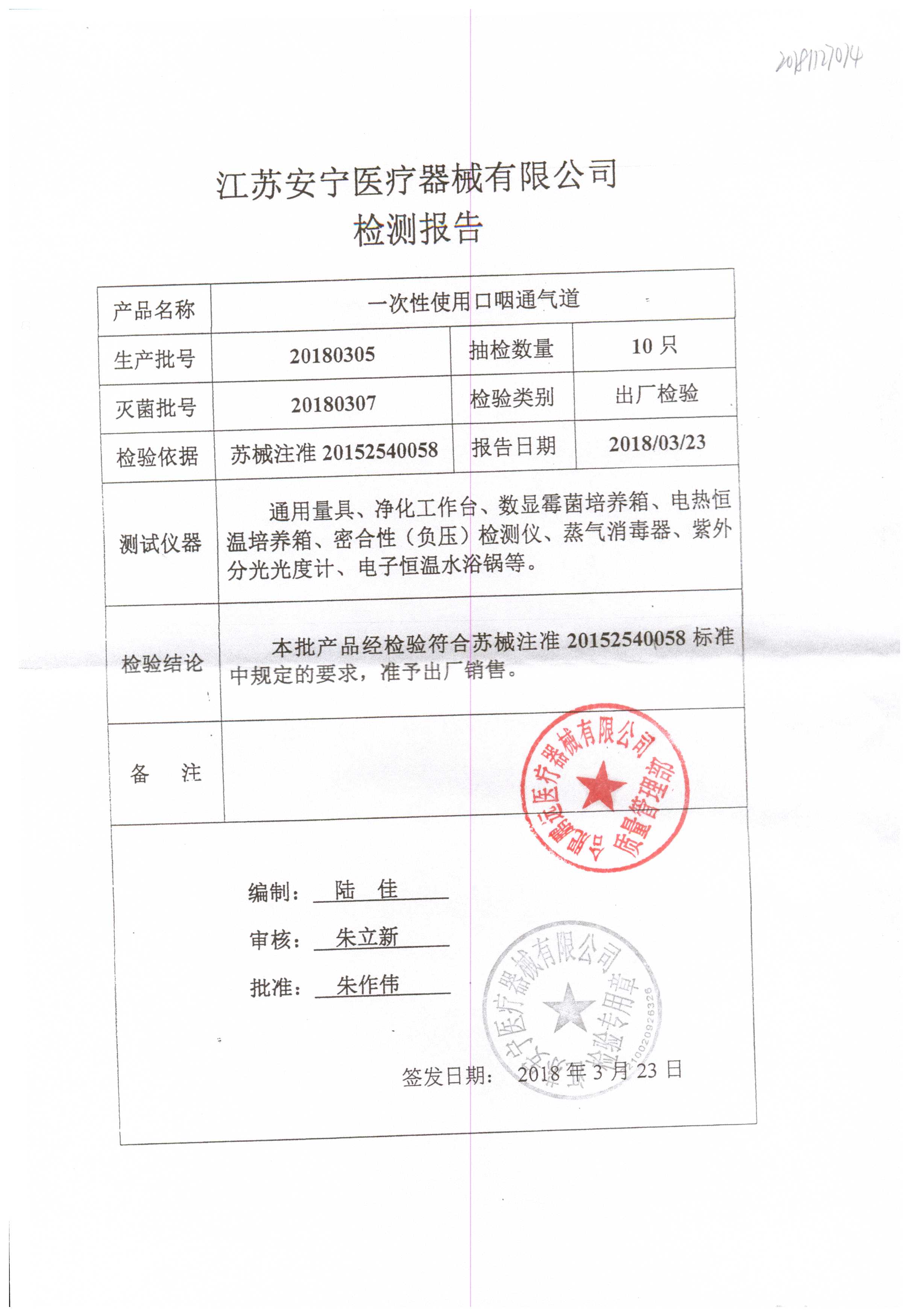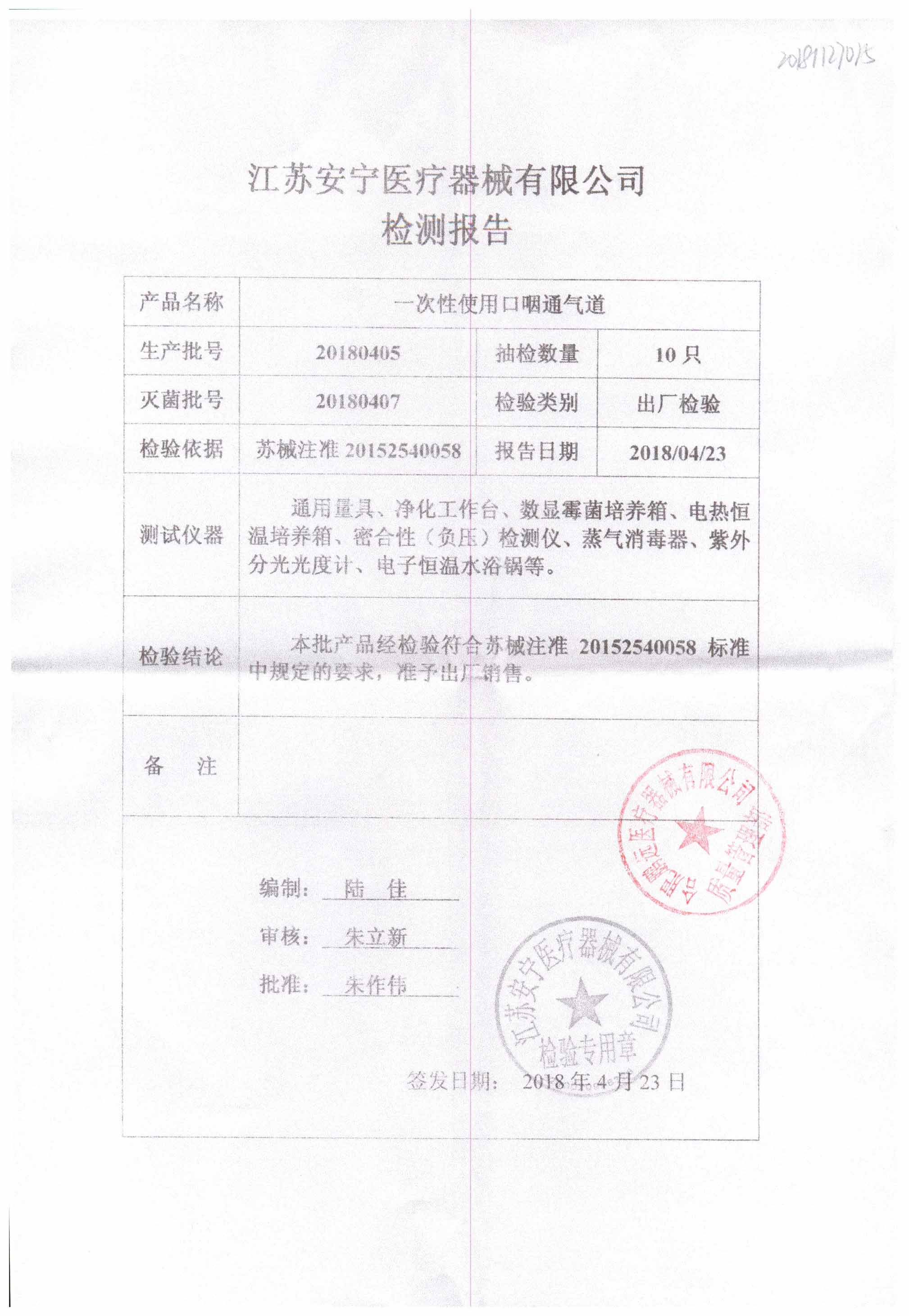 | 一次性使用口咽通氣道 | / | 20180405 | 查看詳情 |