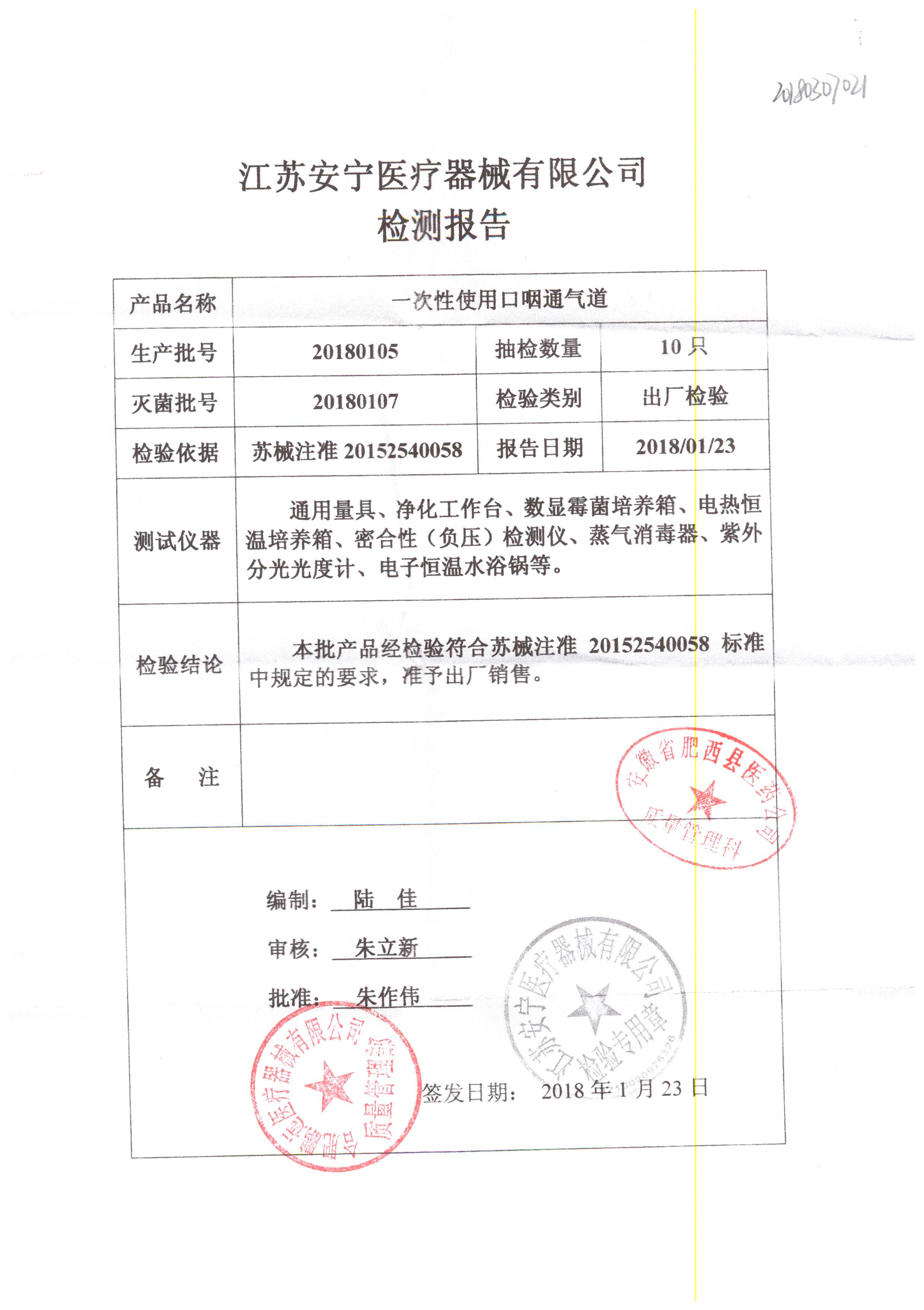 | 一次性使用口咽通氣道 | / | 20180105 | 查看詳情 |