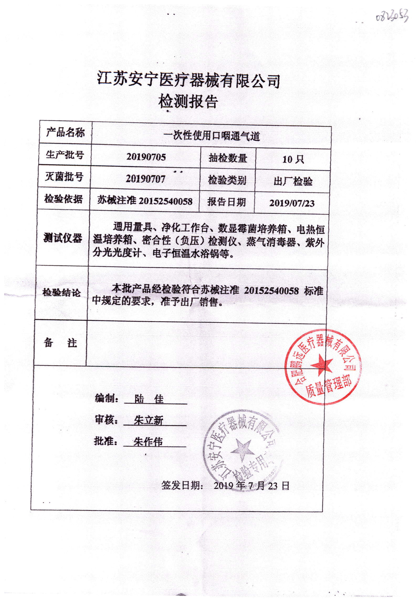 | 一次性使用口咽通氣道 | / | 20190705 | 查看詳情 |