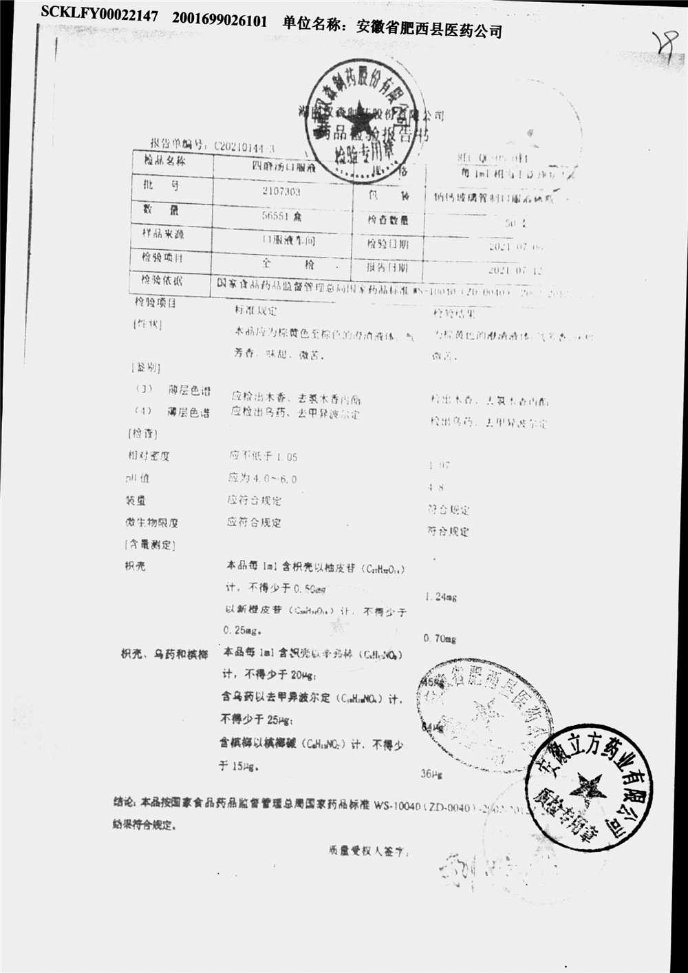 | 名稱 | 規(guī)格 | 批號 | 藥檢報告 |