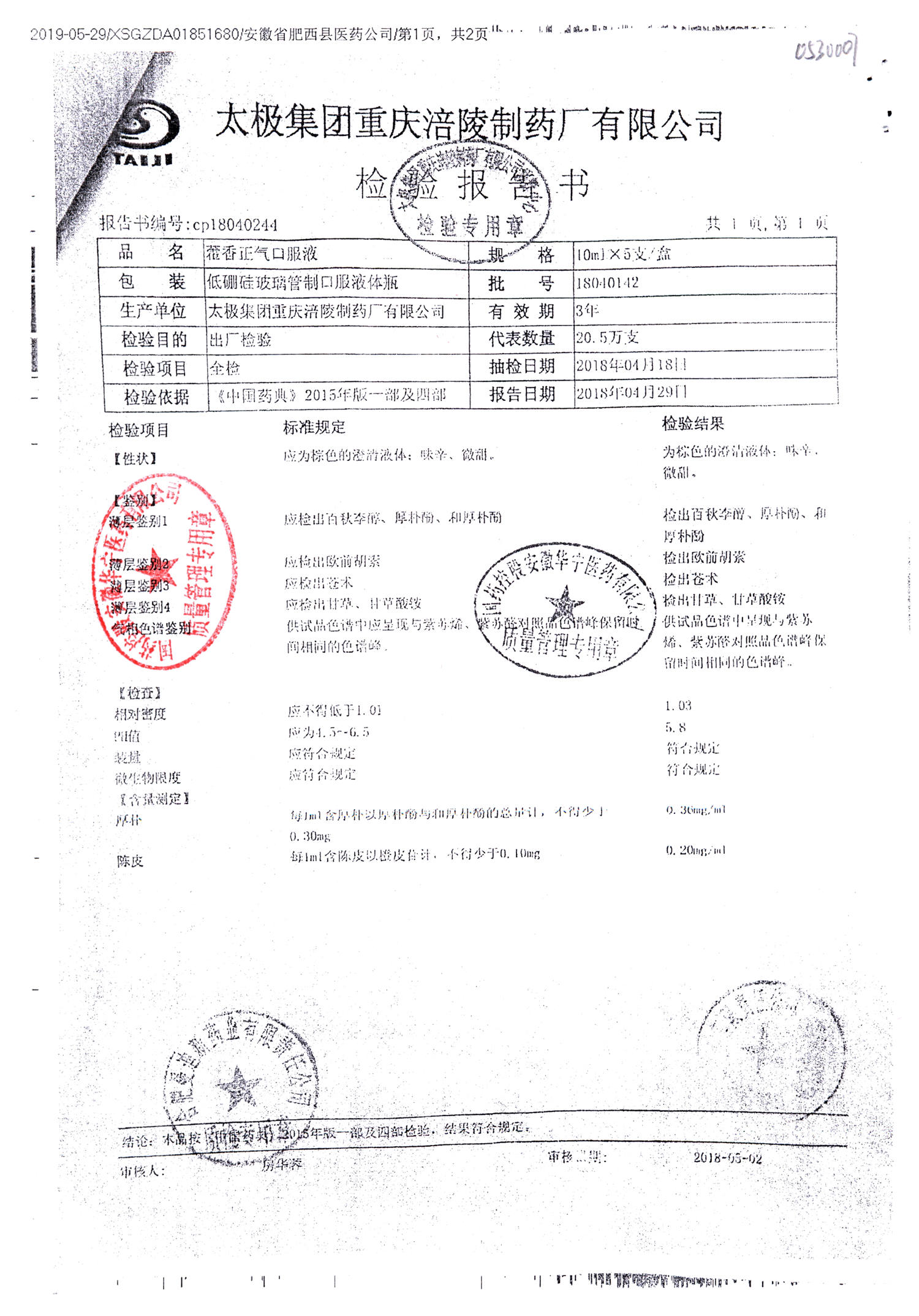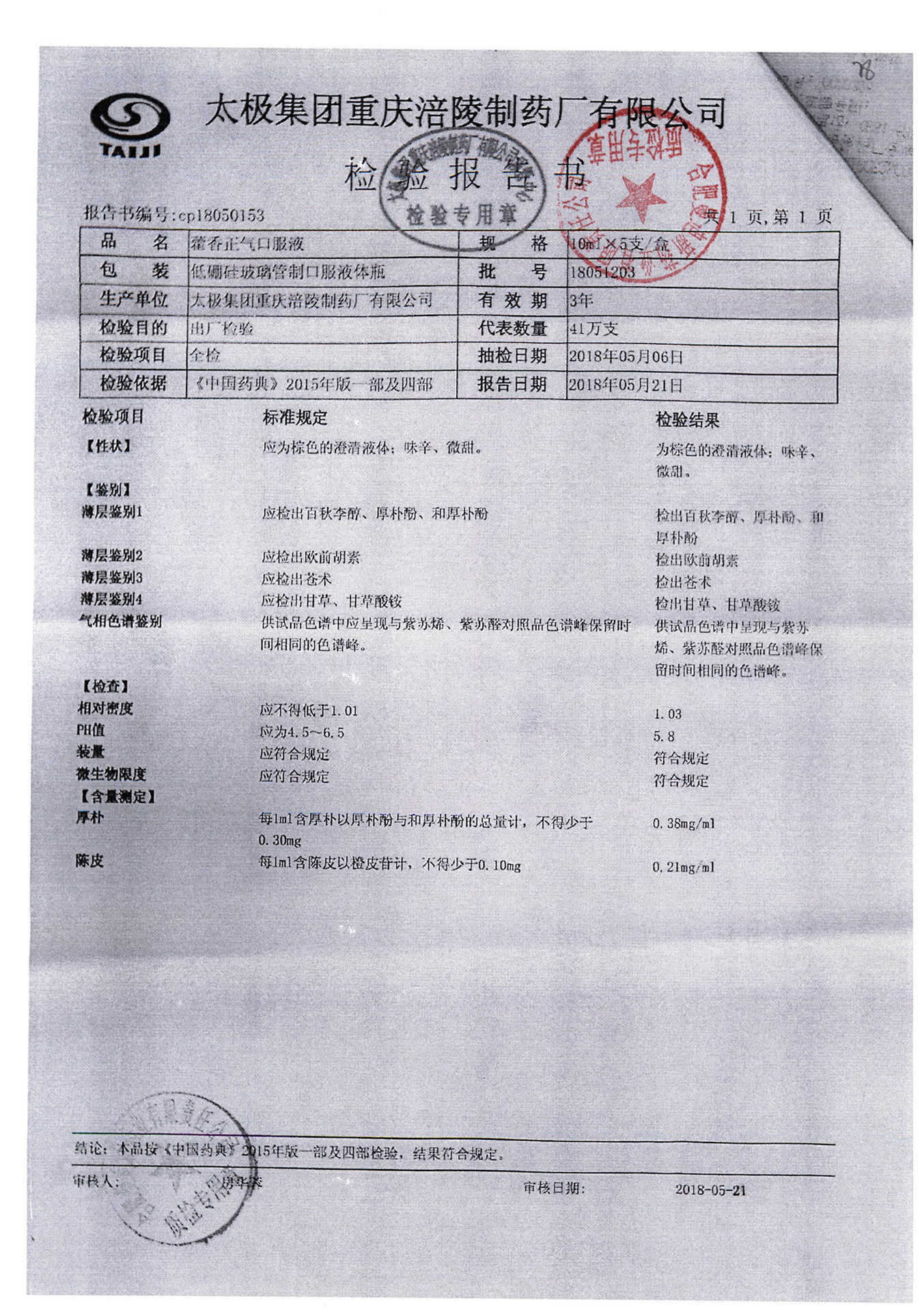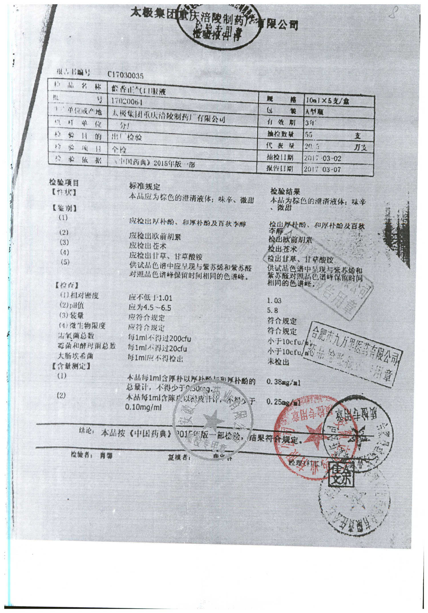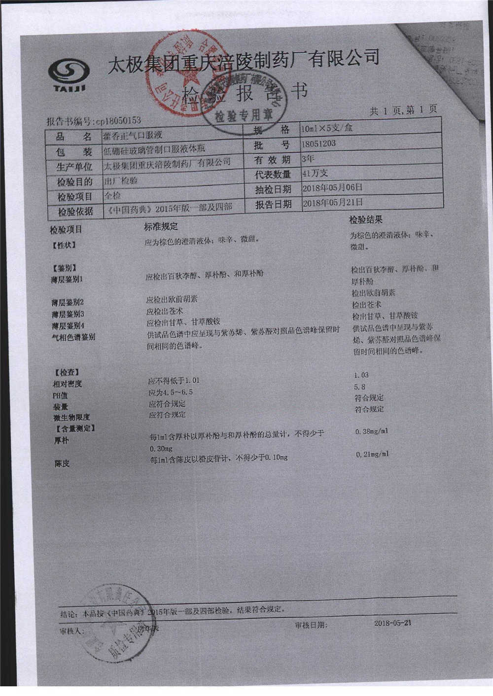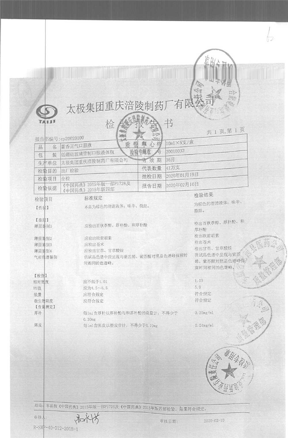 | 藿香正氣口服液 | 10ml*5支 | 18051203 | 查看詳情 |