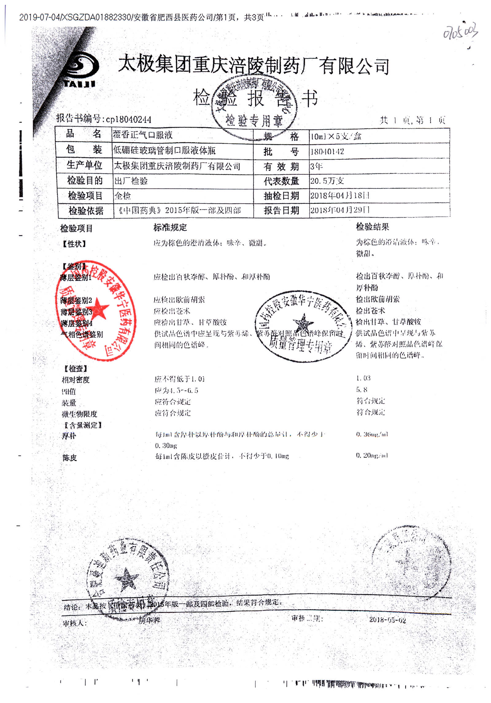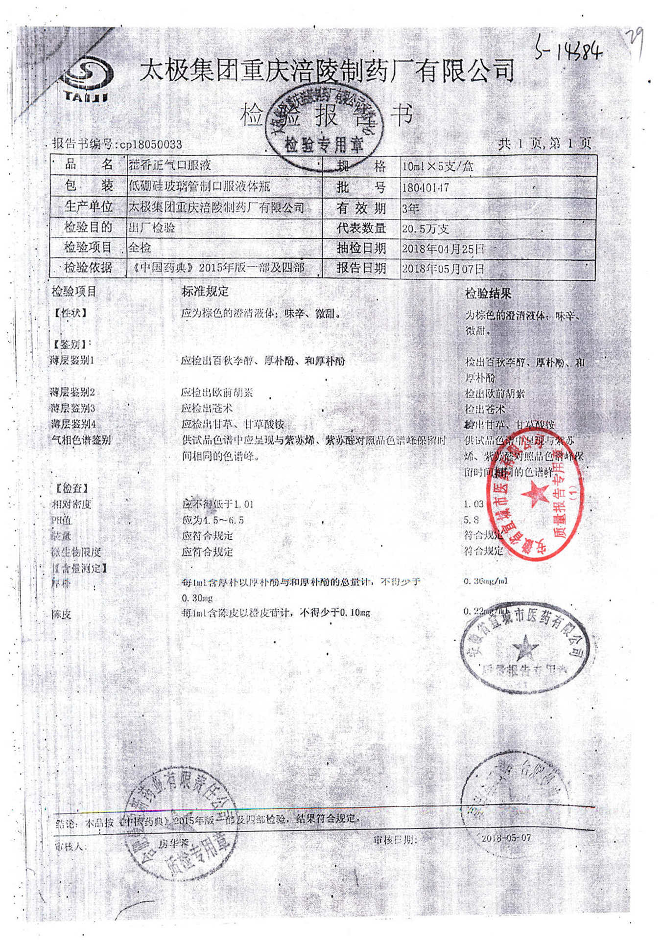 | 名稱 | 規(guī)格 | 批號 | 藥檢報(bào)告 |