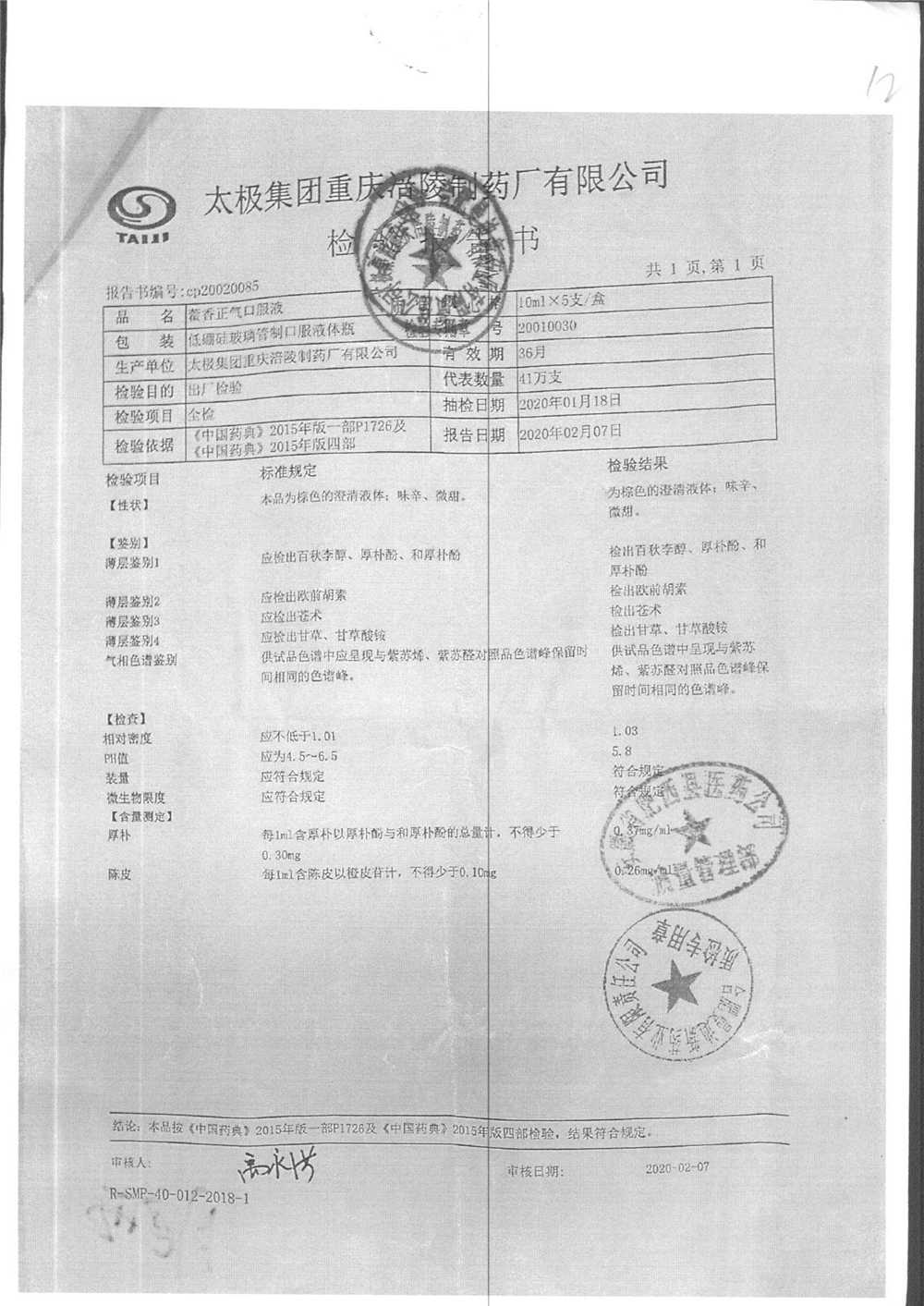 | 藿香正氣口服液 | 10ml*5支 | 20010030 | 查看詳情 |