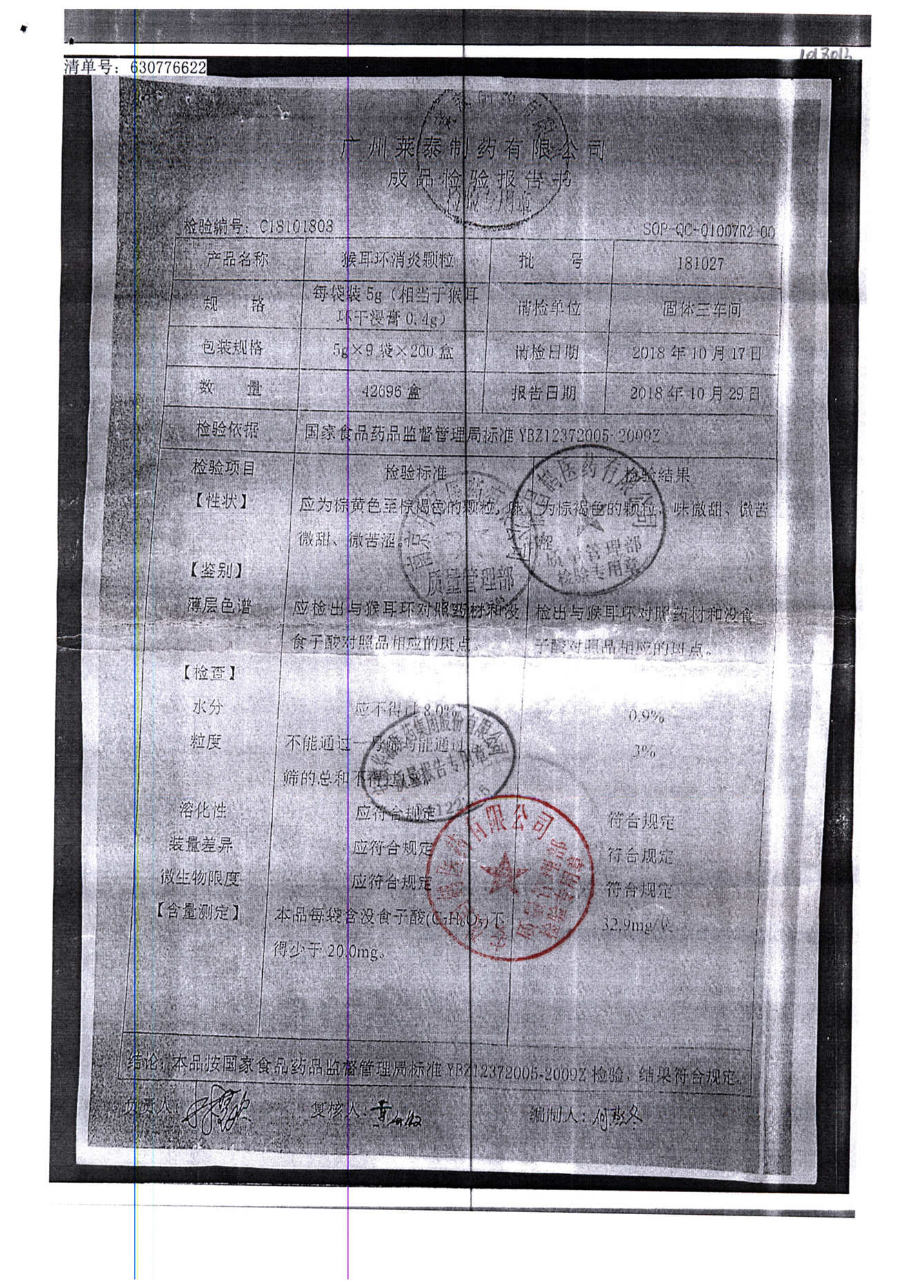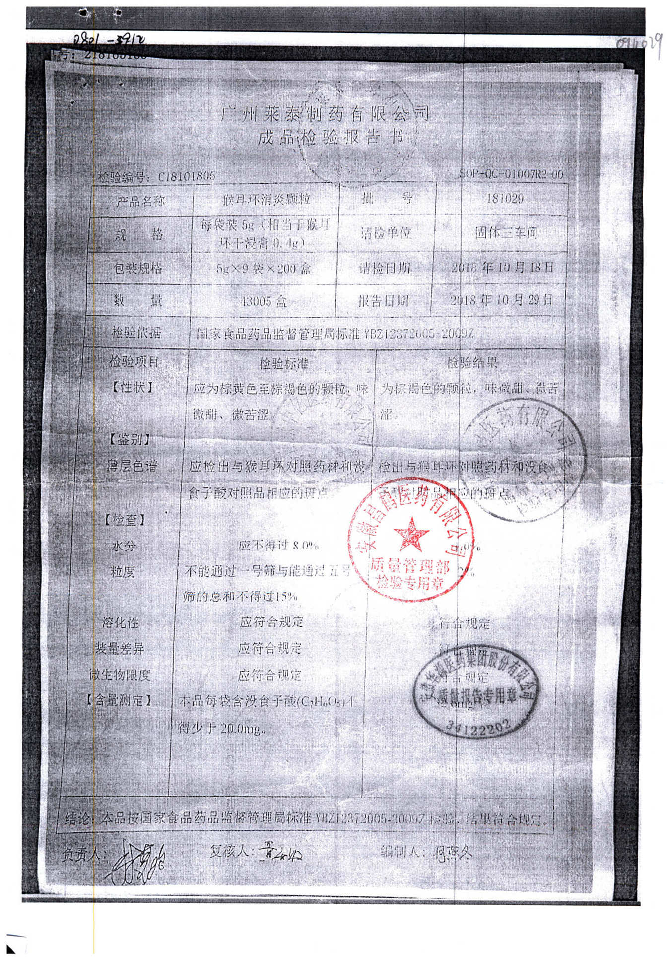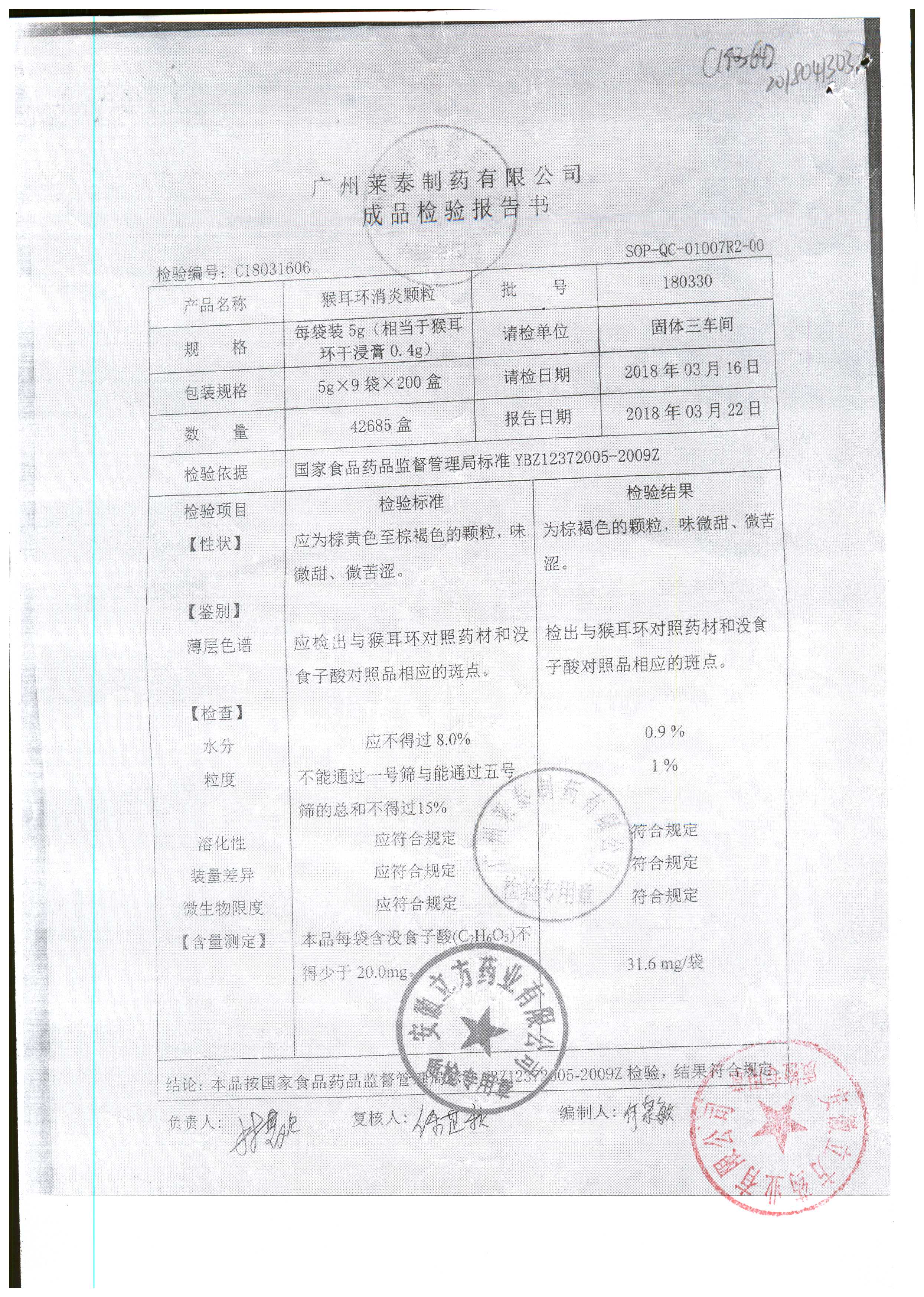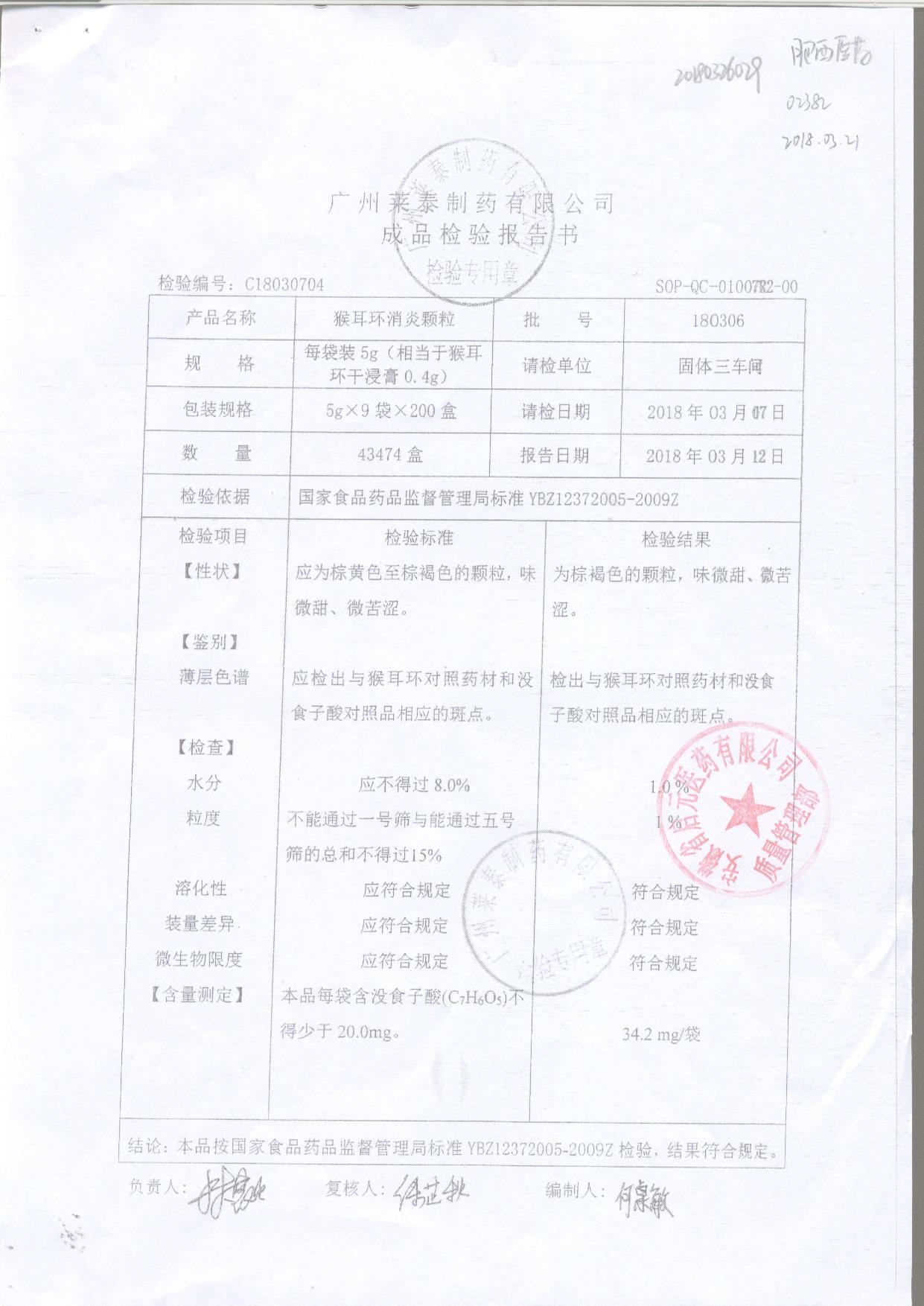 | 名稱 | 規(guī)格 | 批號 | 藥檢報告 |