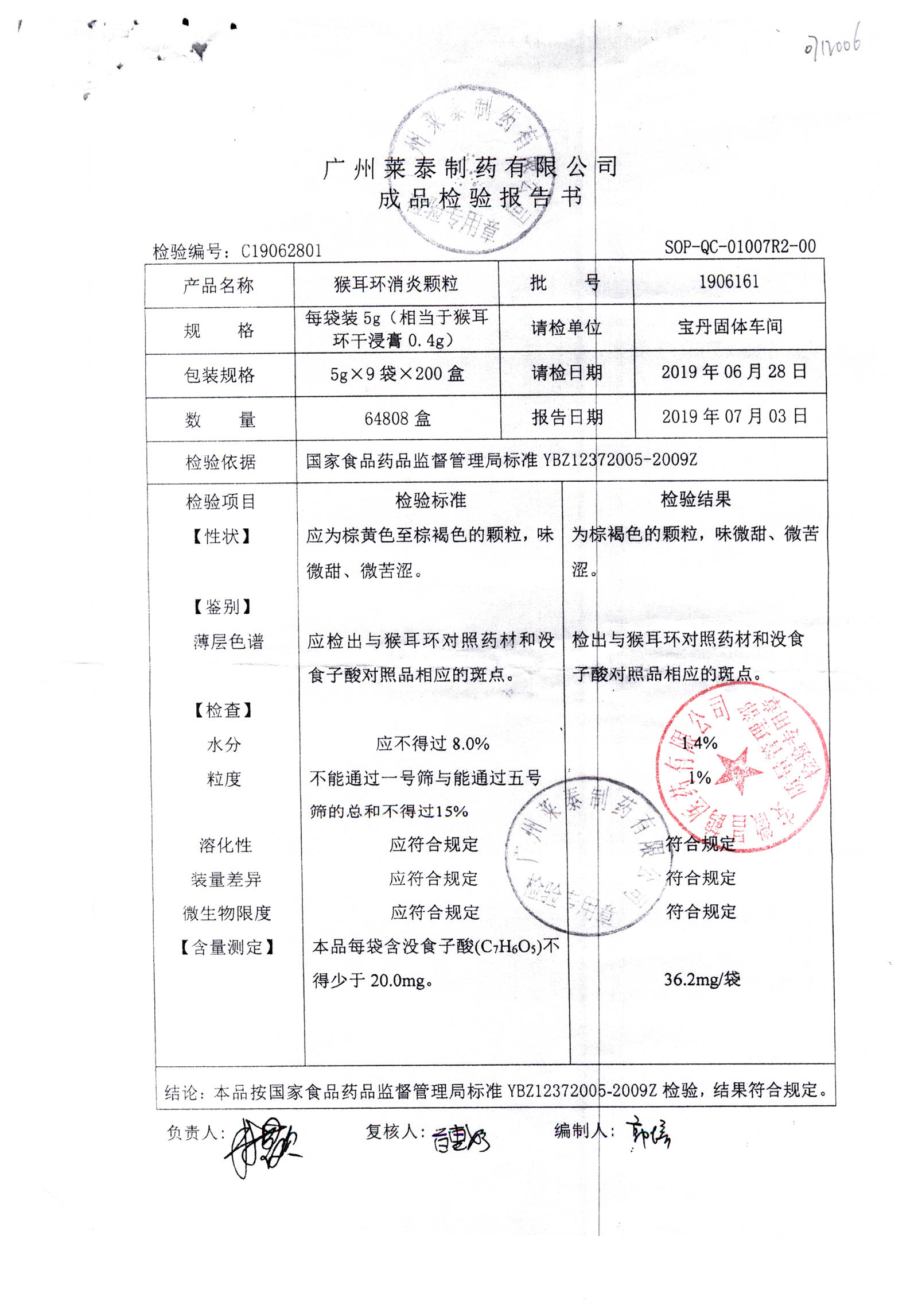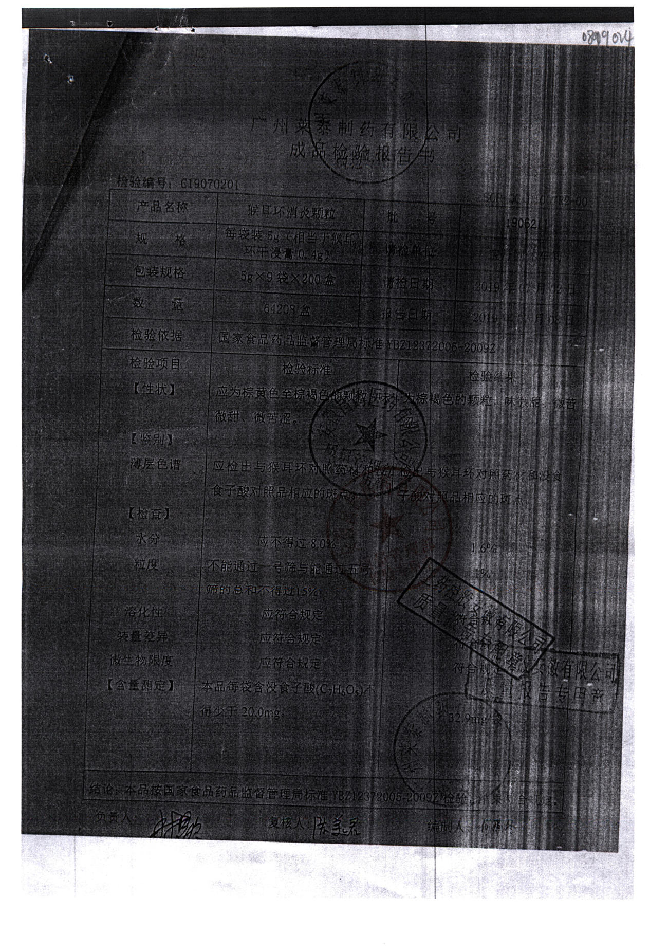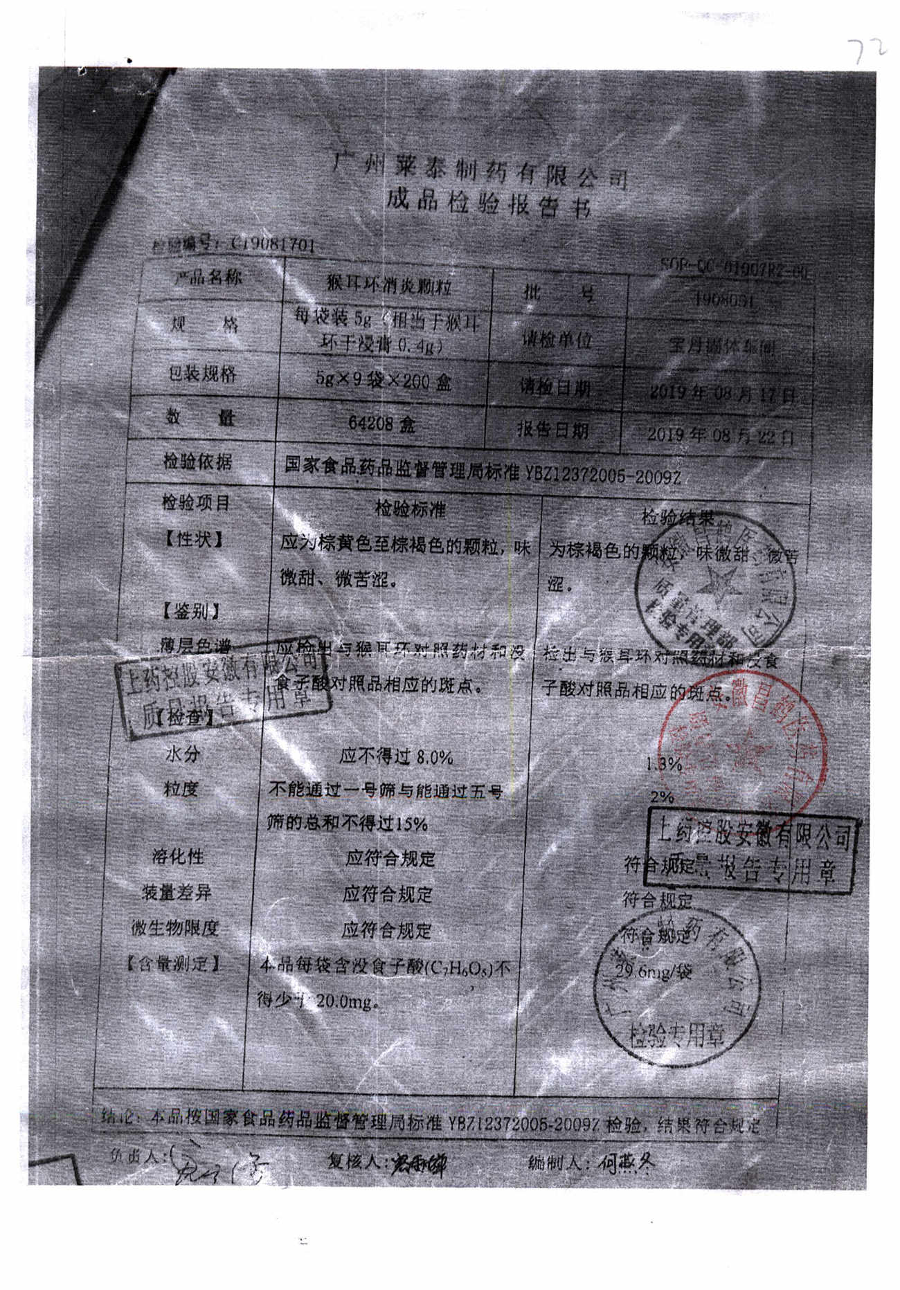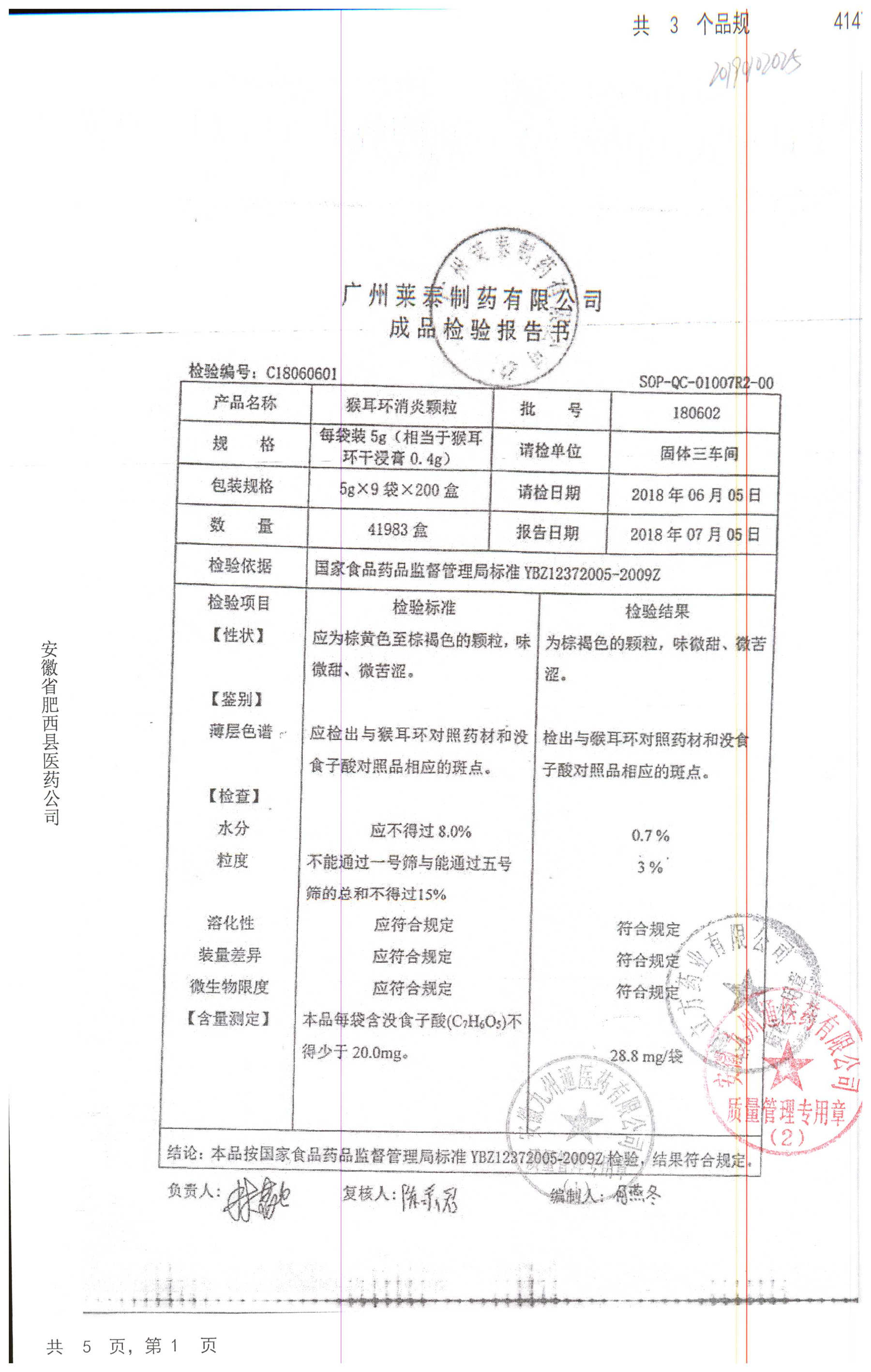 | 名稱 | 規(guī)格 | 批號 | 藥檢報告 |