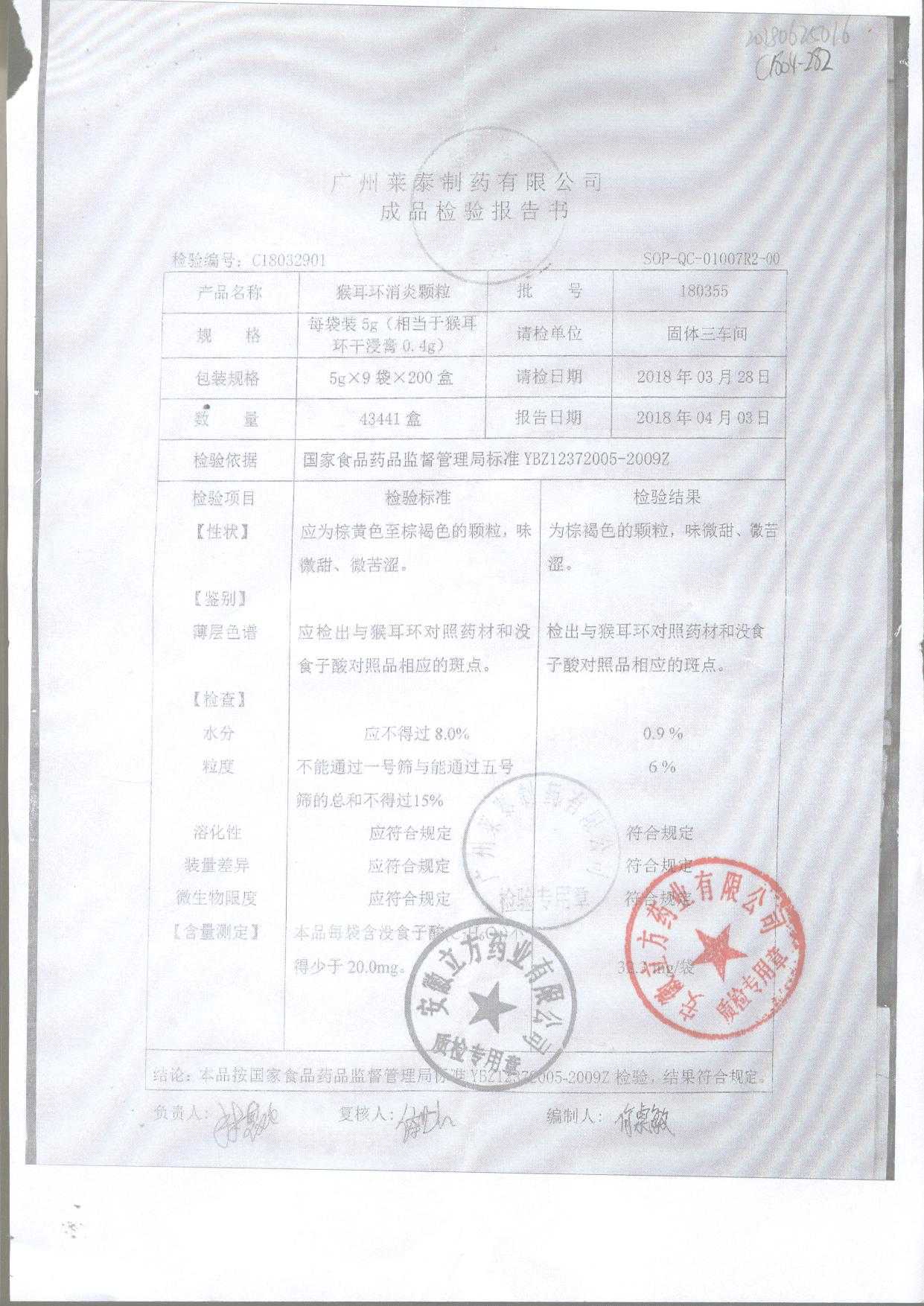| 猴耳環(huán)消炎顆粒 | 5g*9袋 | 180418 | 查看詳情 |