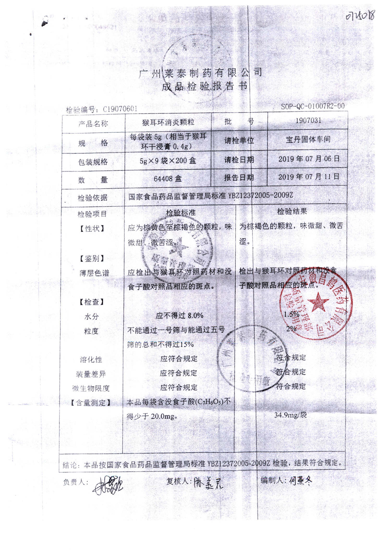 | 猴耳環(huán)消炎顆粒 | 5g*9袋 | 1908141 | 查看詳情 |