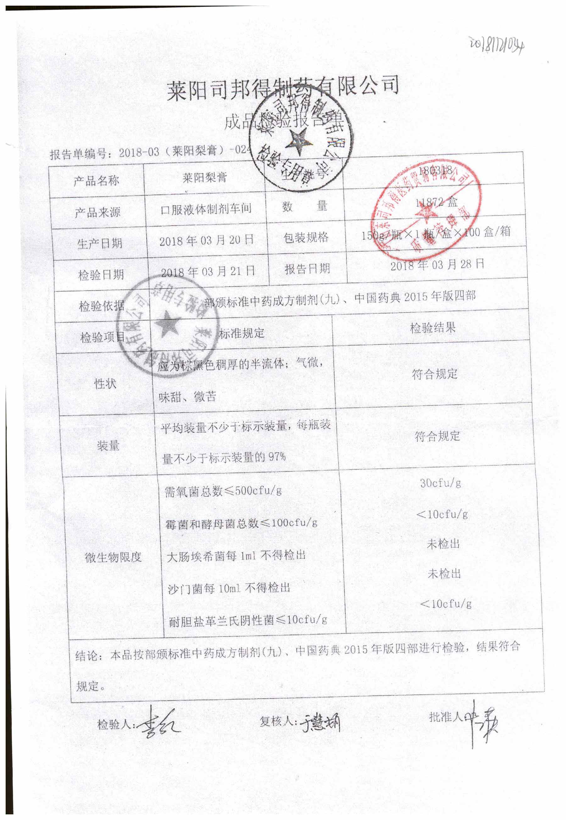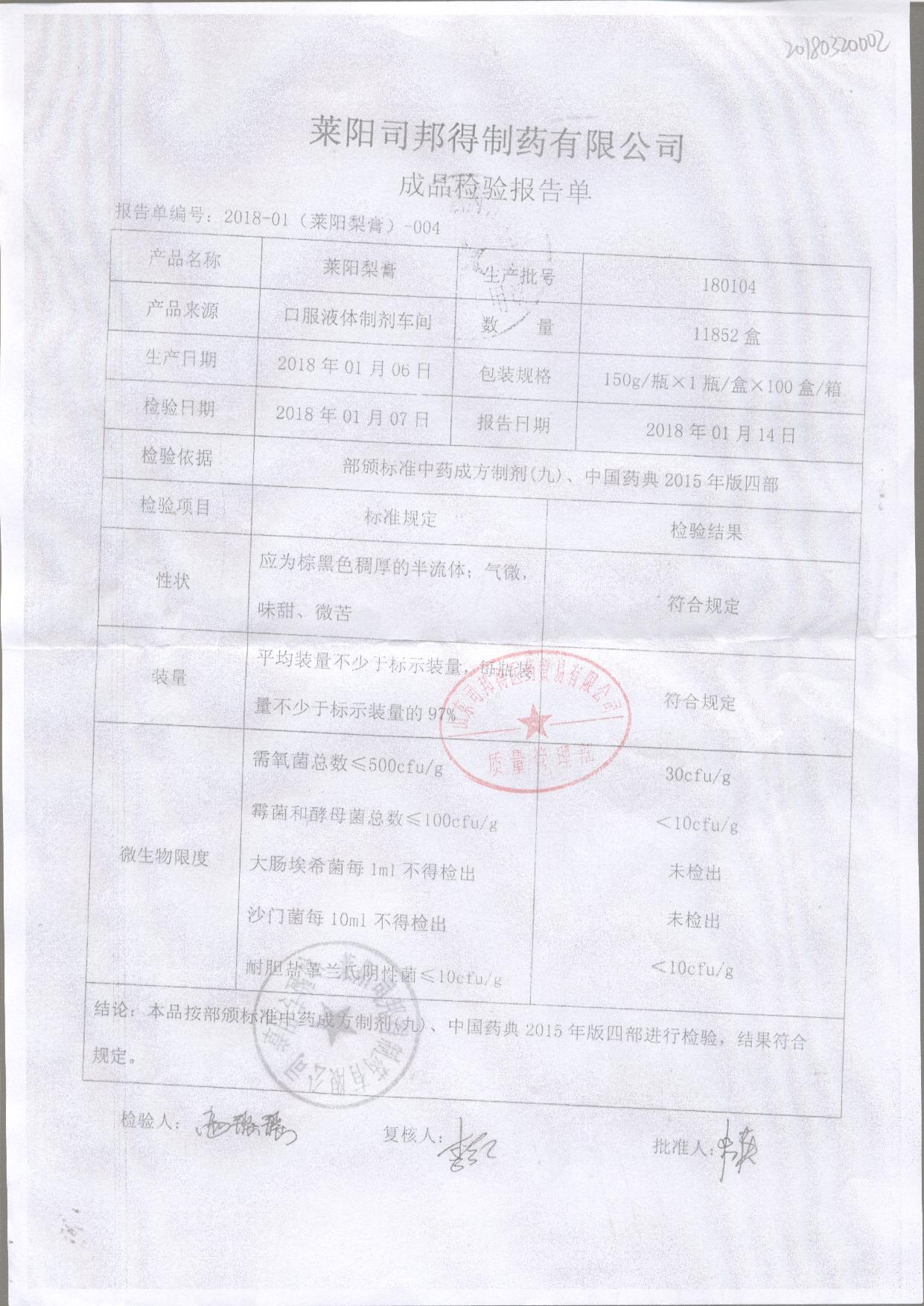| 萊陽梨膏 | 150g/瓶 | 180807 | 查看詳情 |