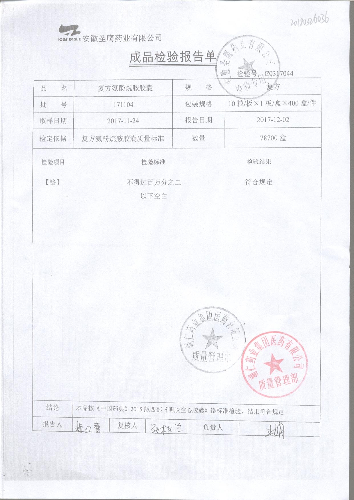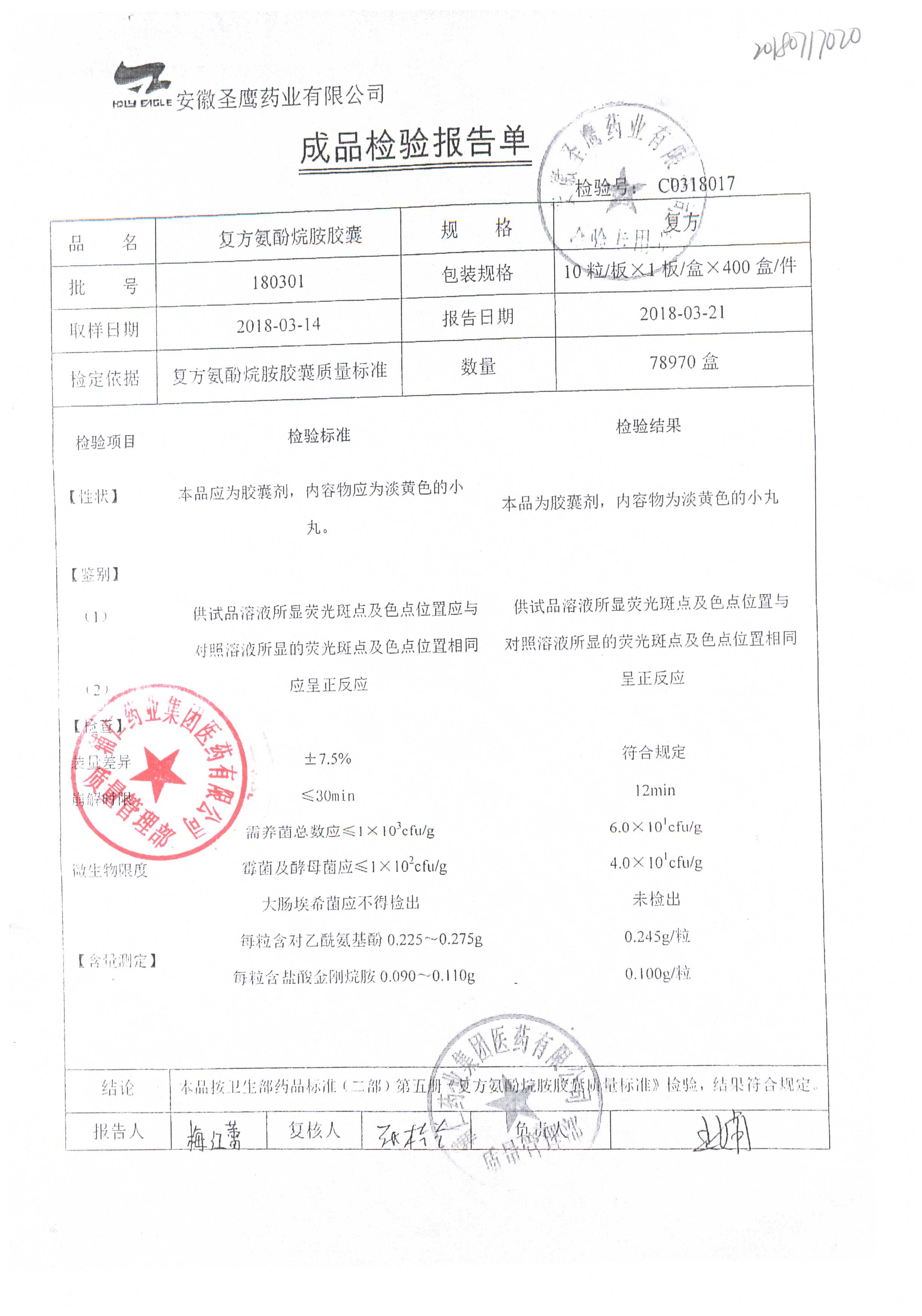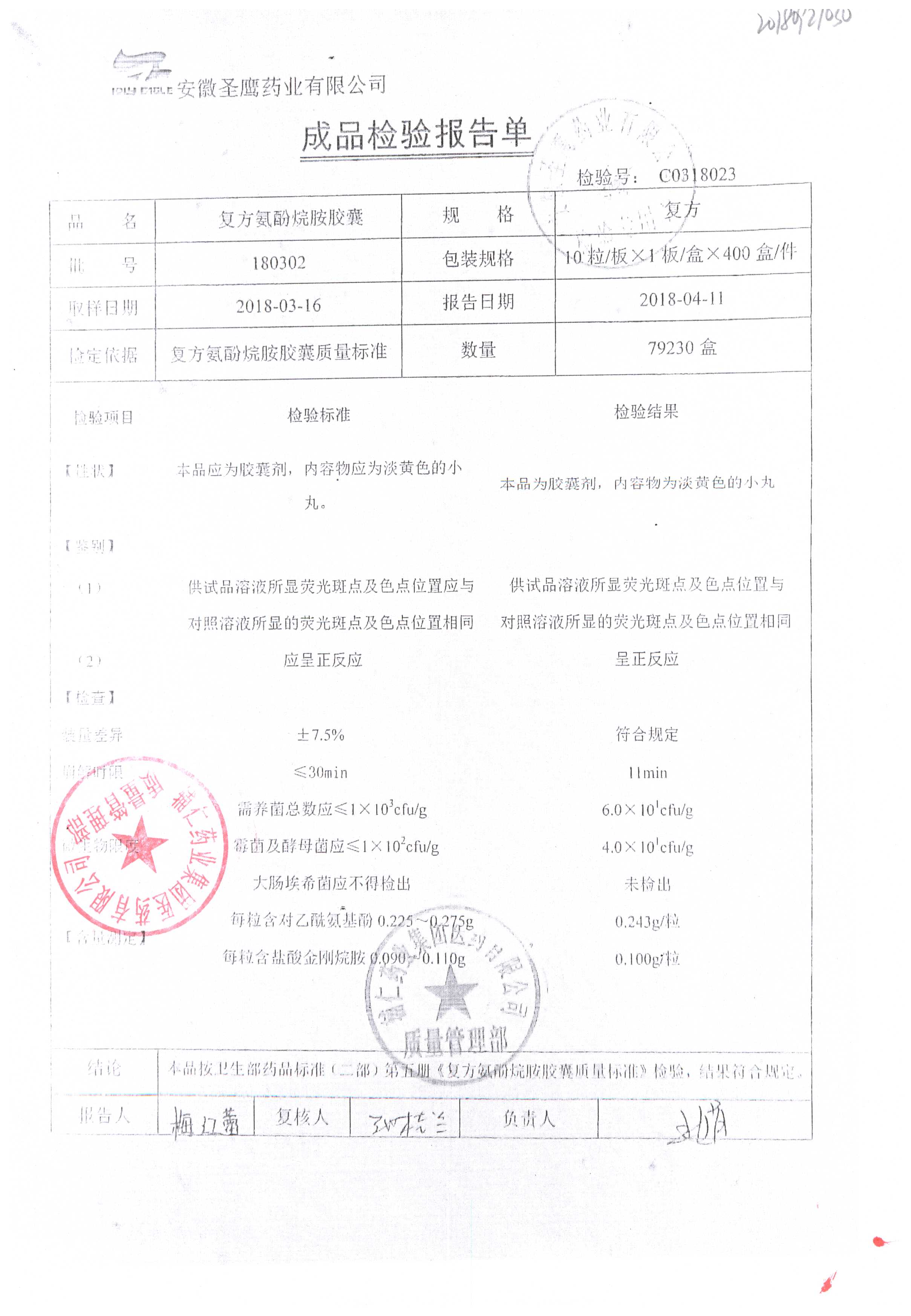 | 復(fù)方氨酚烷胺膠囊 | 10s | 180301(2/2) | 查看詳情 |