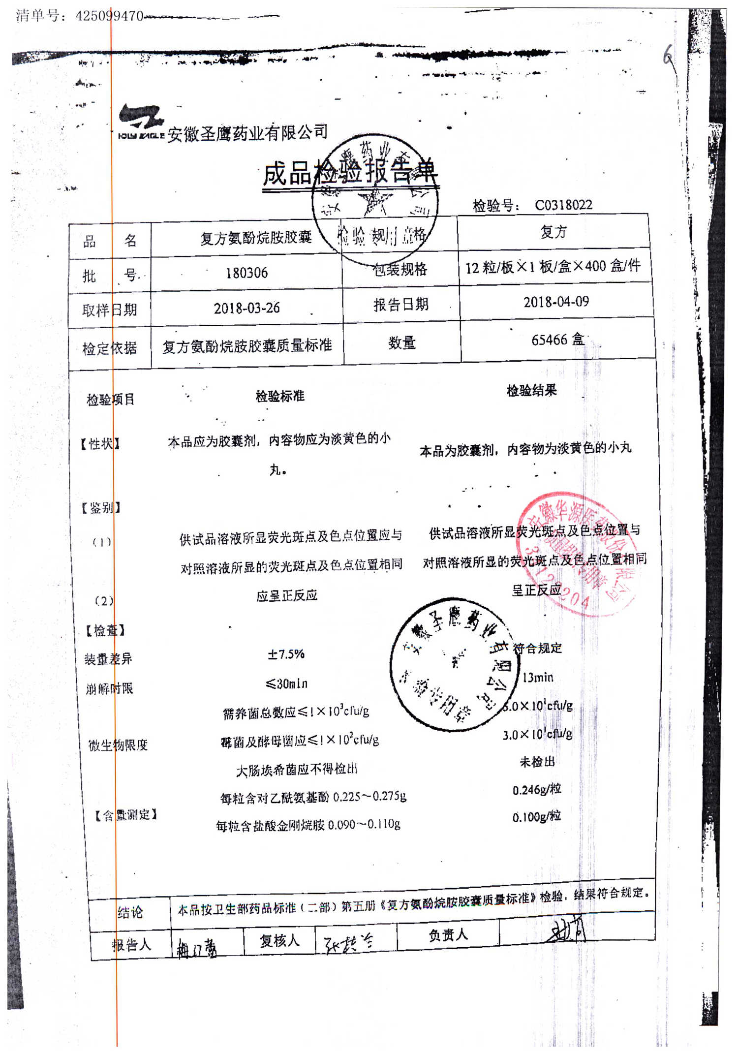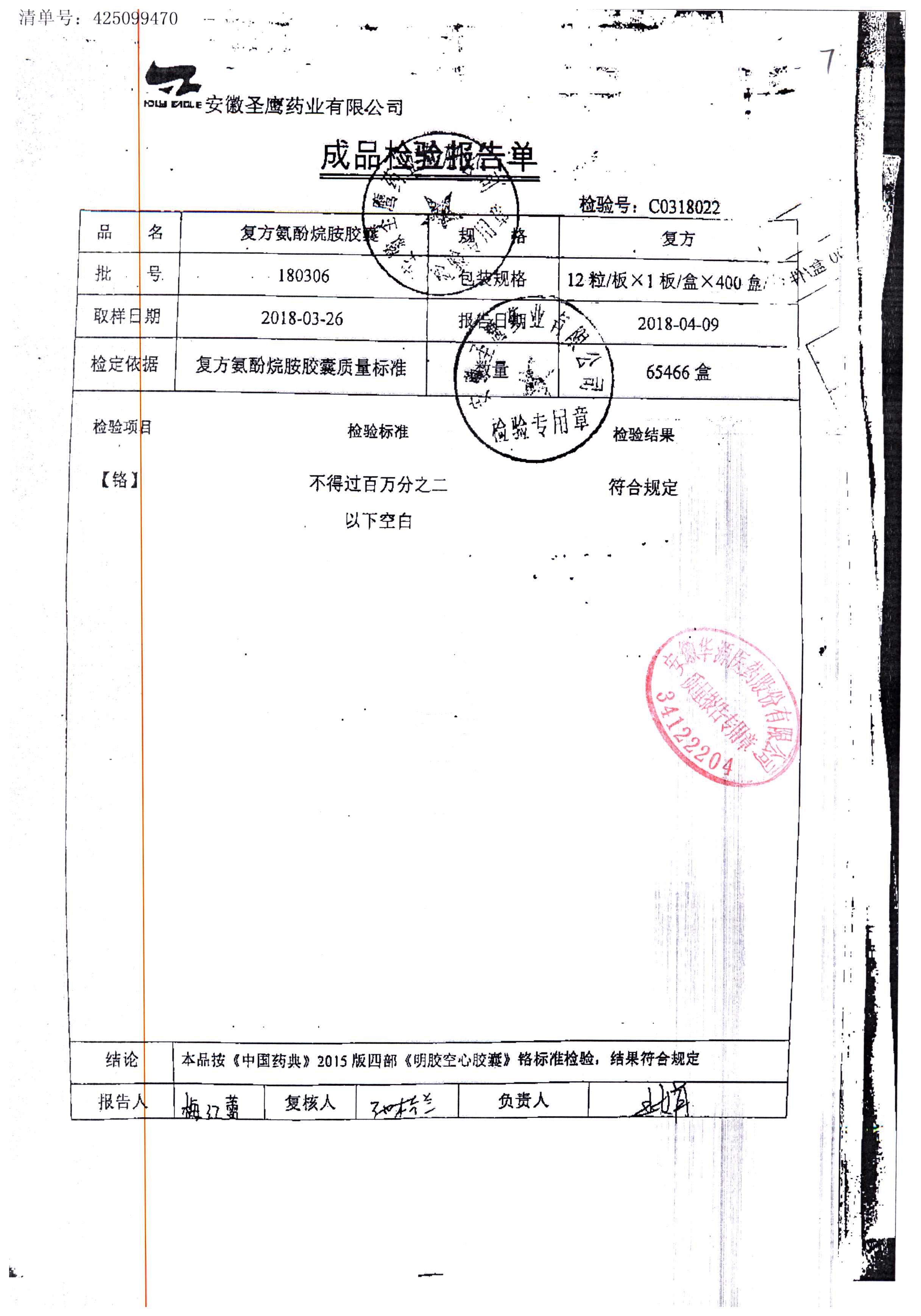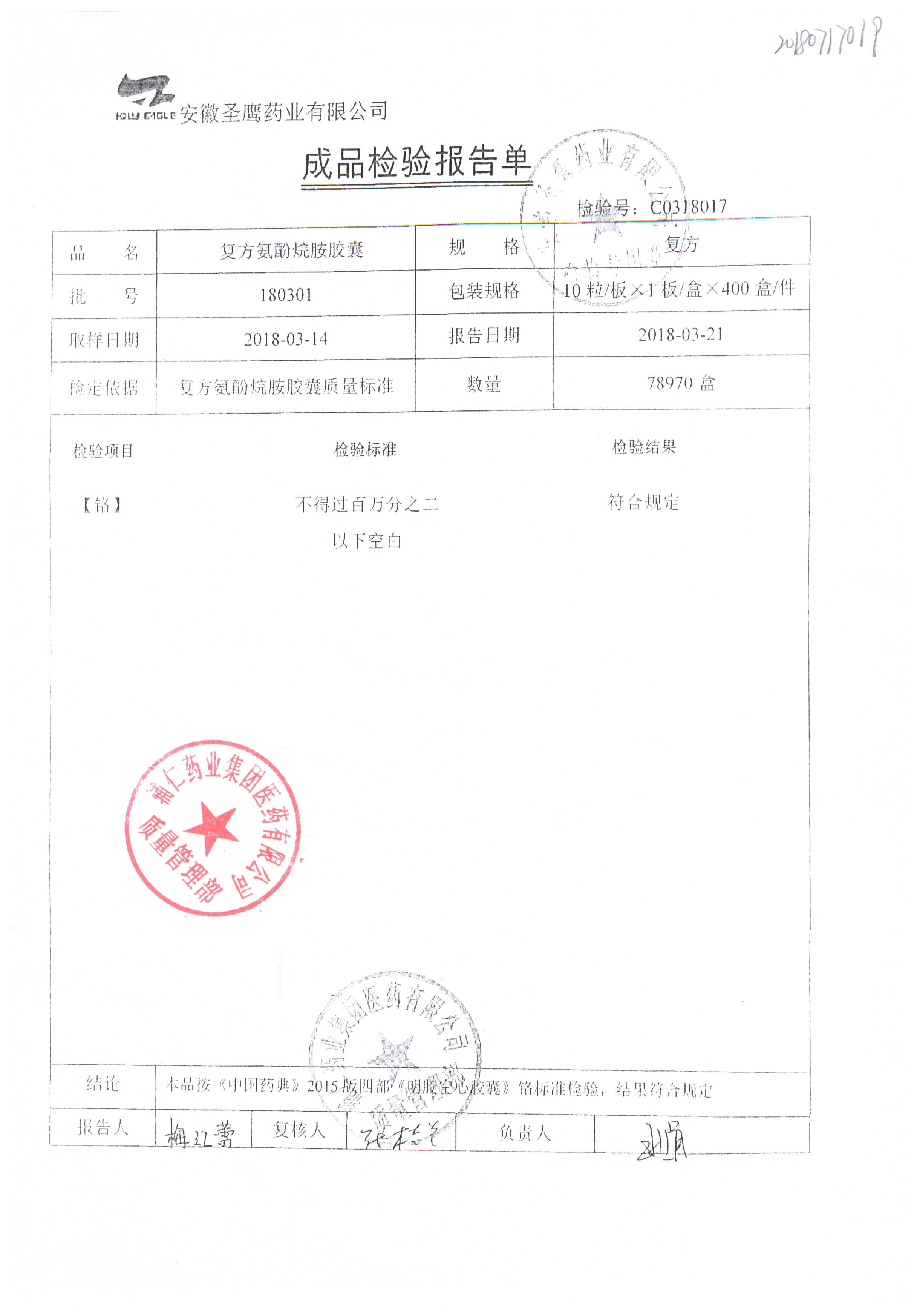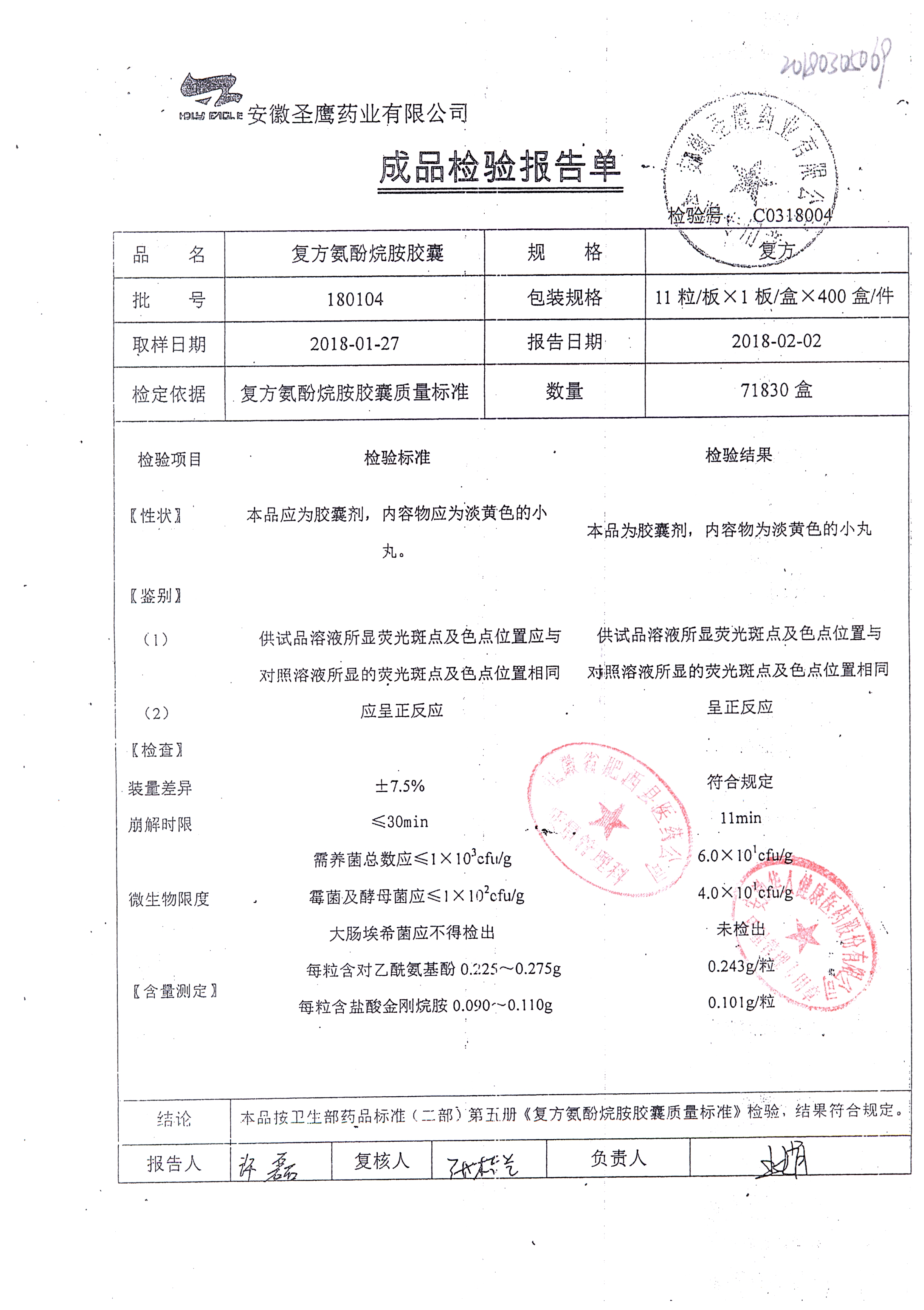 | 復(fù)方氨酚烷胺膠囊 | 10s | 180301(2/2) | 查看詳情 |