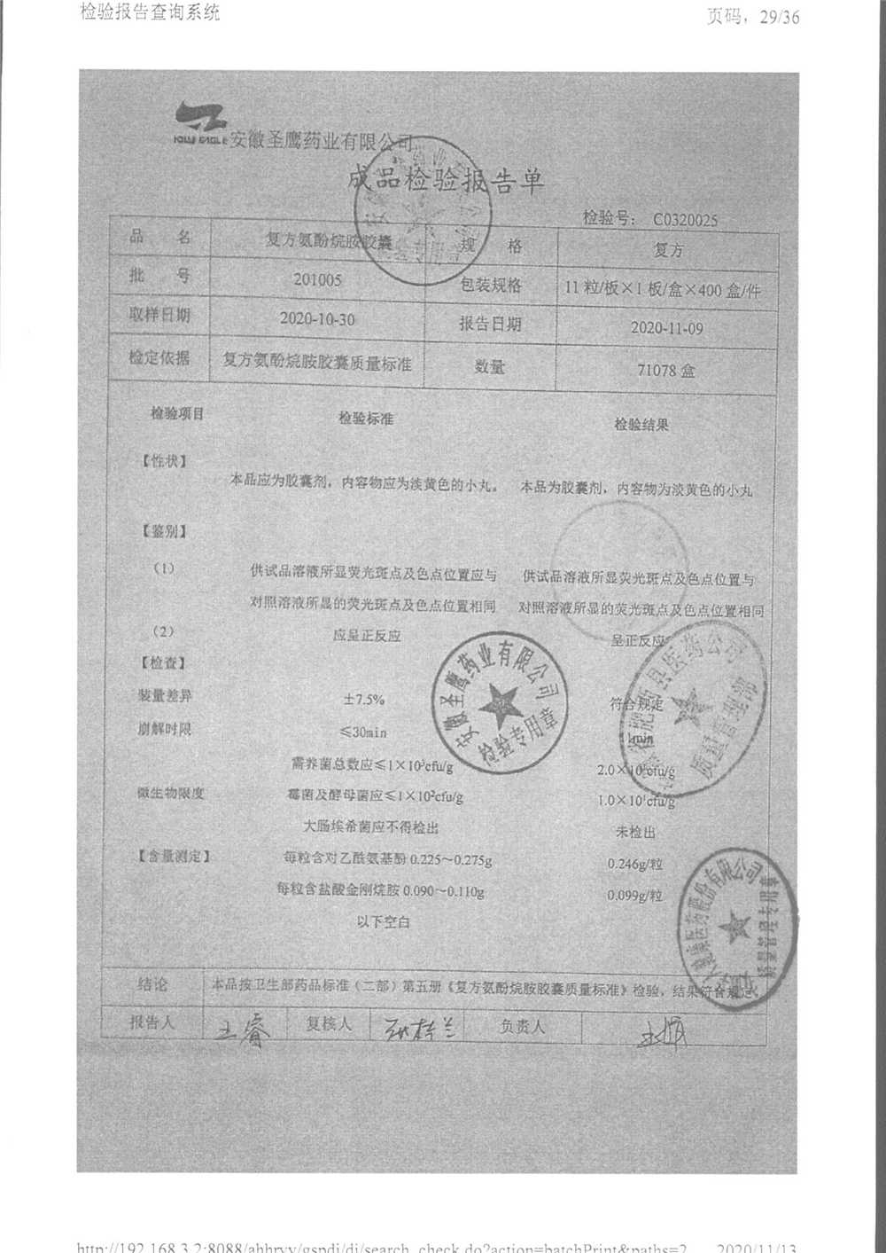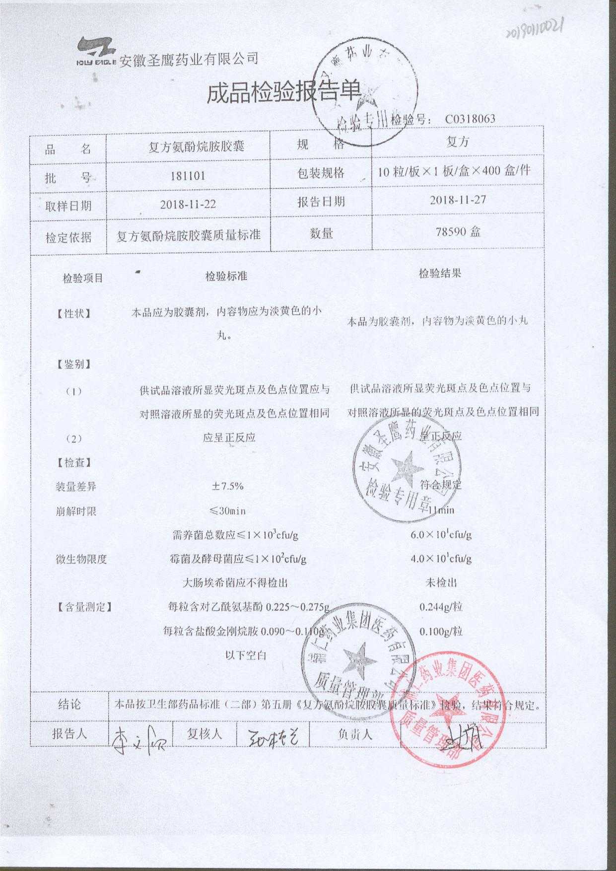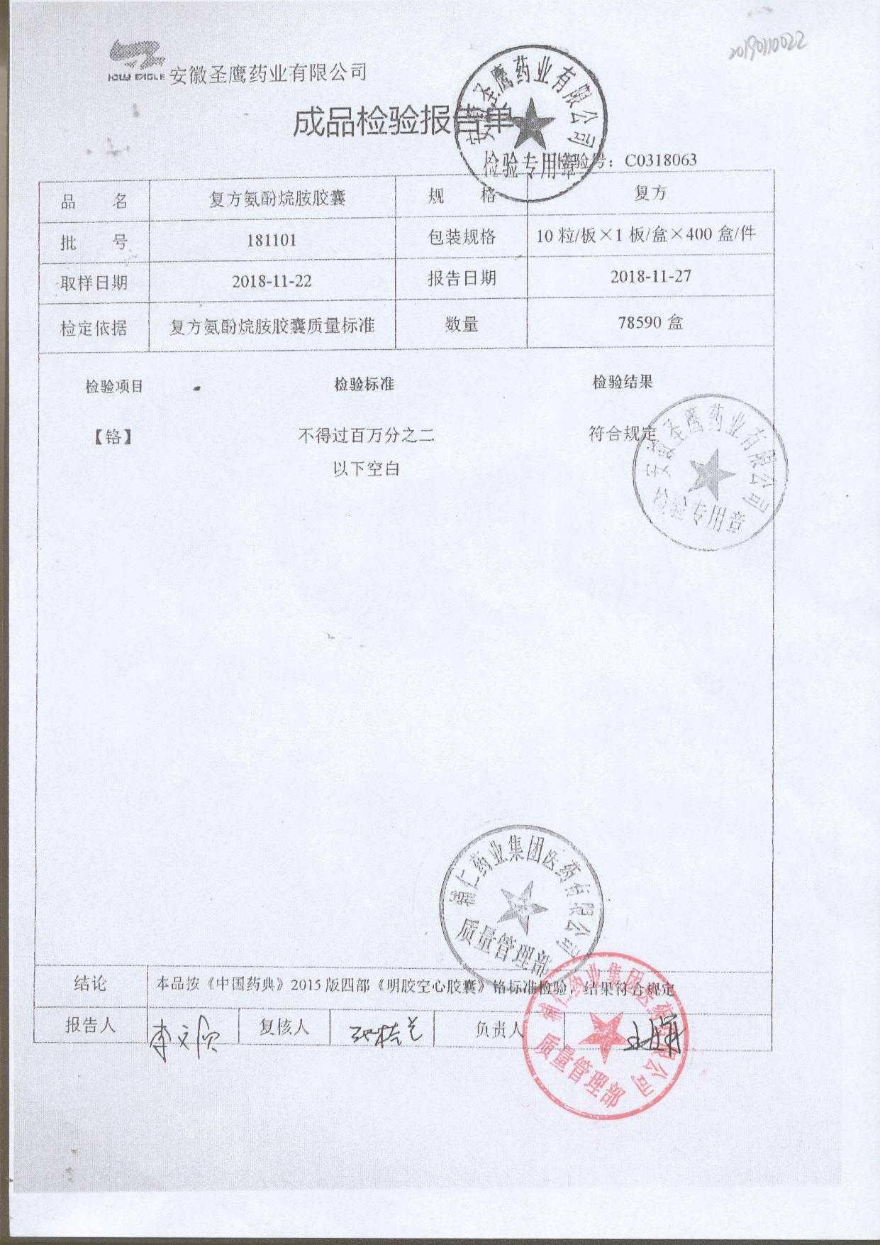 | 復(fù)方氨酚烷胺膠囊 | 10s | 181101(2/2) | 查看詳情 |