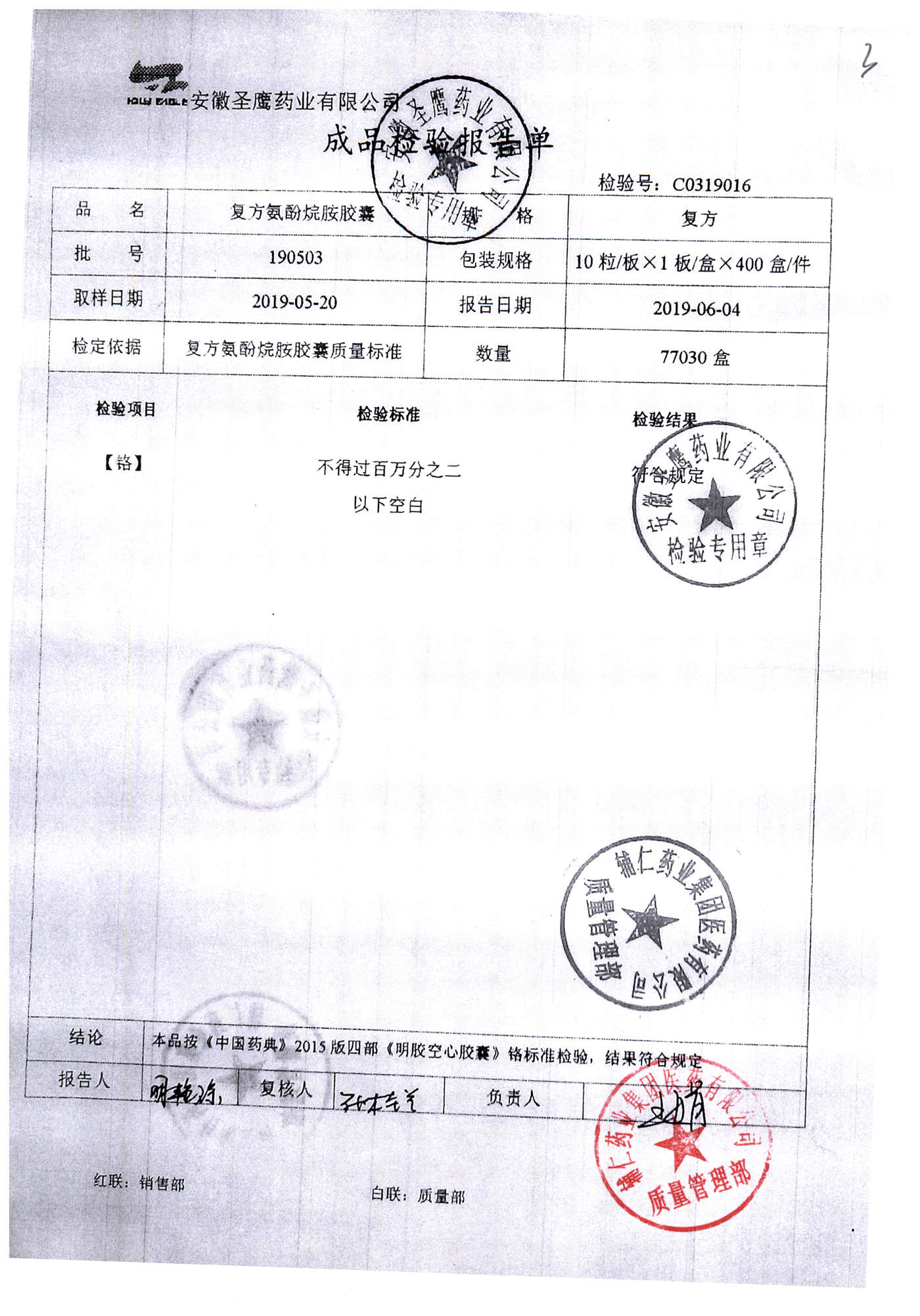 | 復(fù)方氨酚烷胺膠囊 | 10s | 190503(2/2) | 查看詳情 |