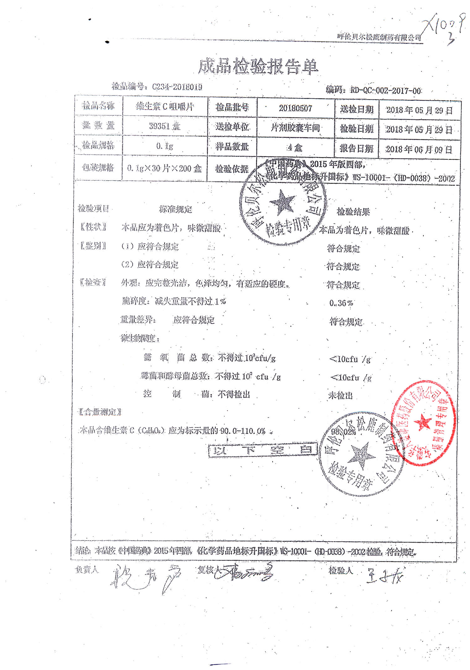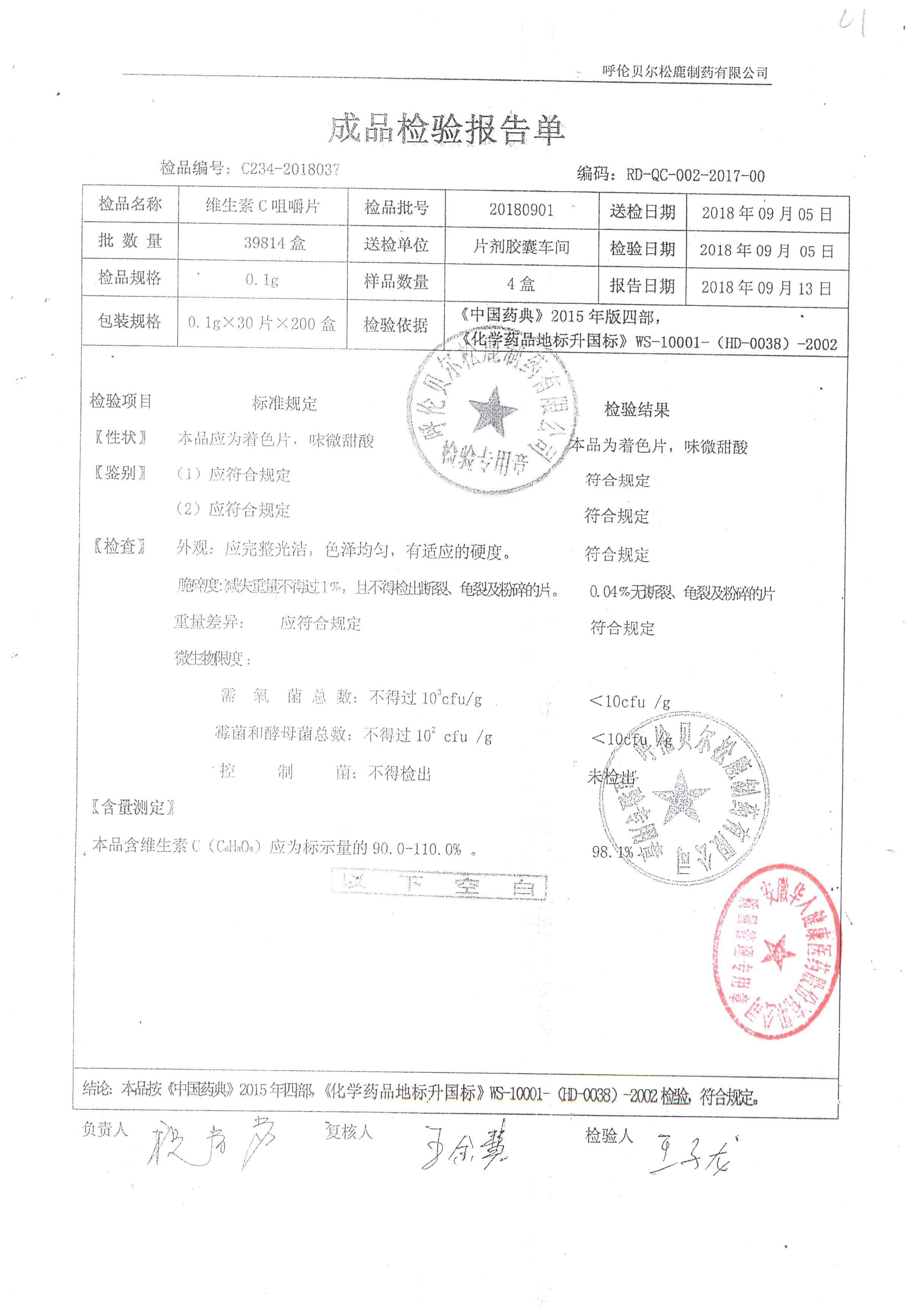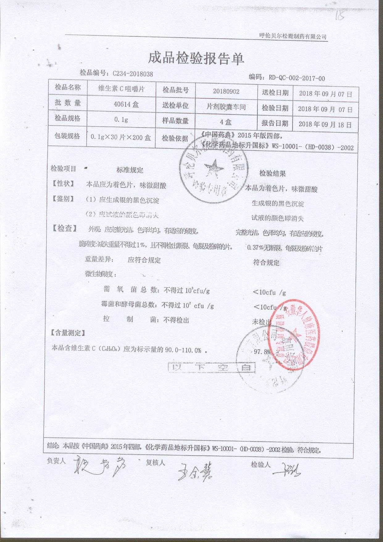 | 維生素C咀嚼片 | 0.1g*30s | 20180902 | 查看詳情 |