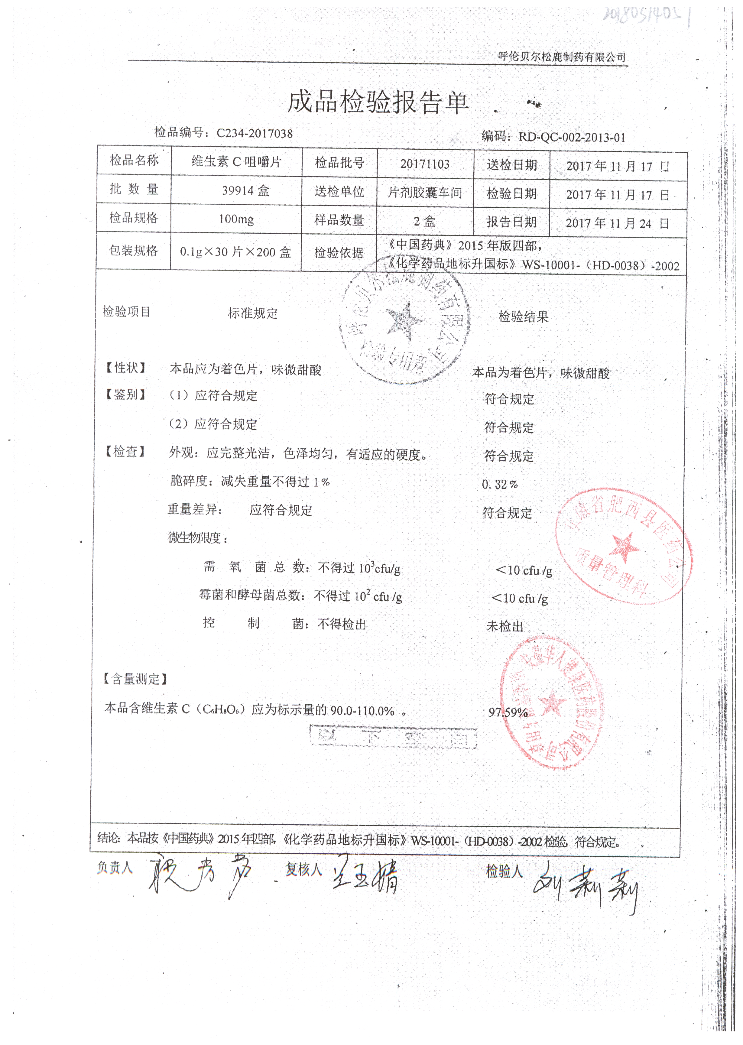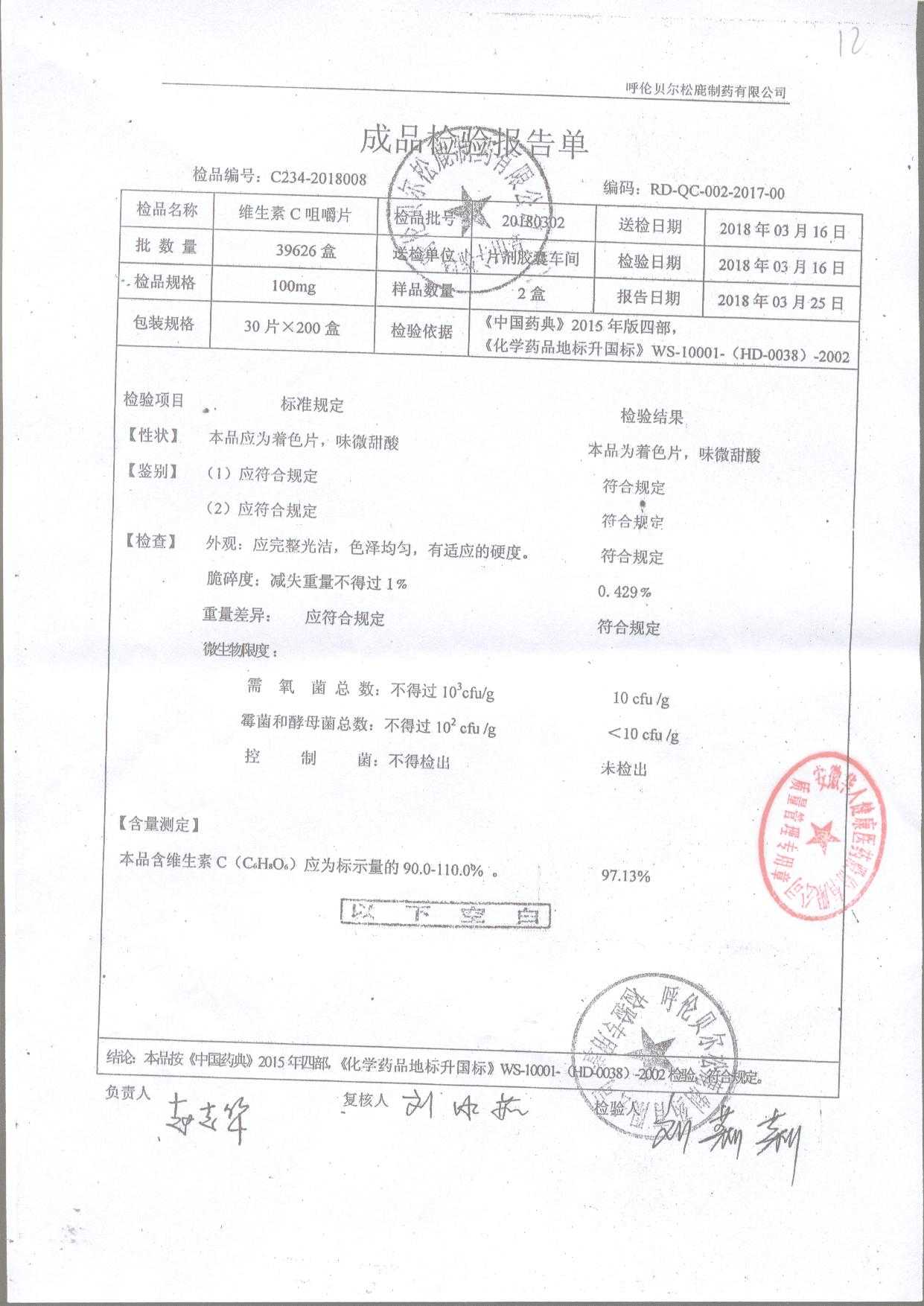 | 維生素C咀嚼片 | 0.1g*30s | 20180505 | 查看詳情 |