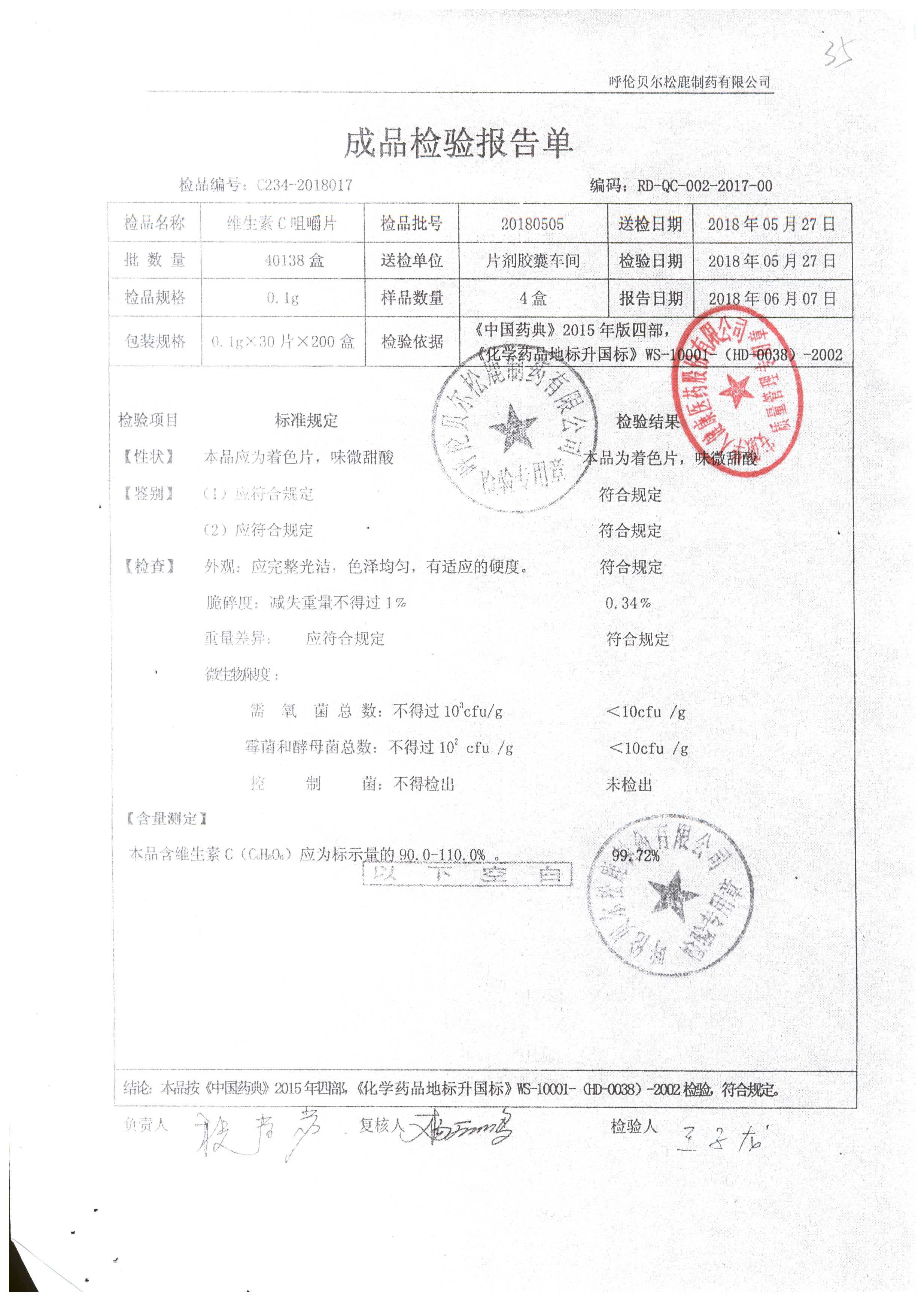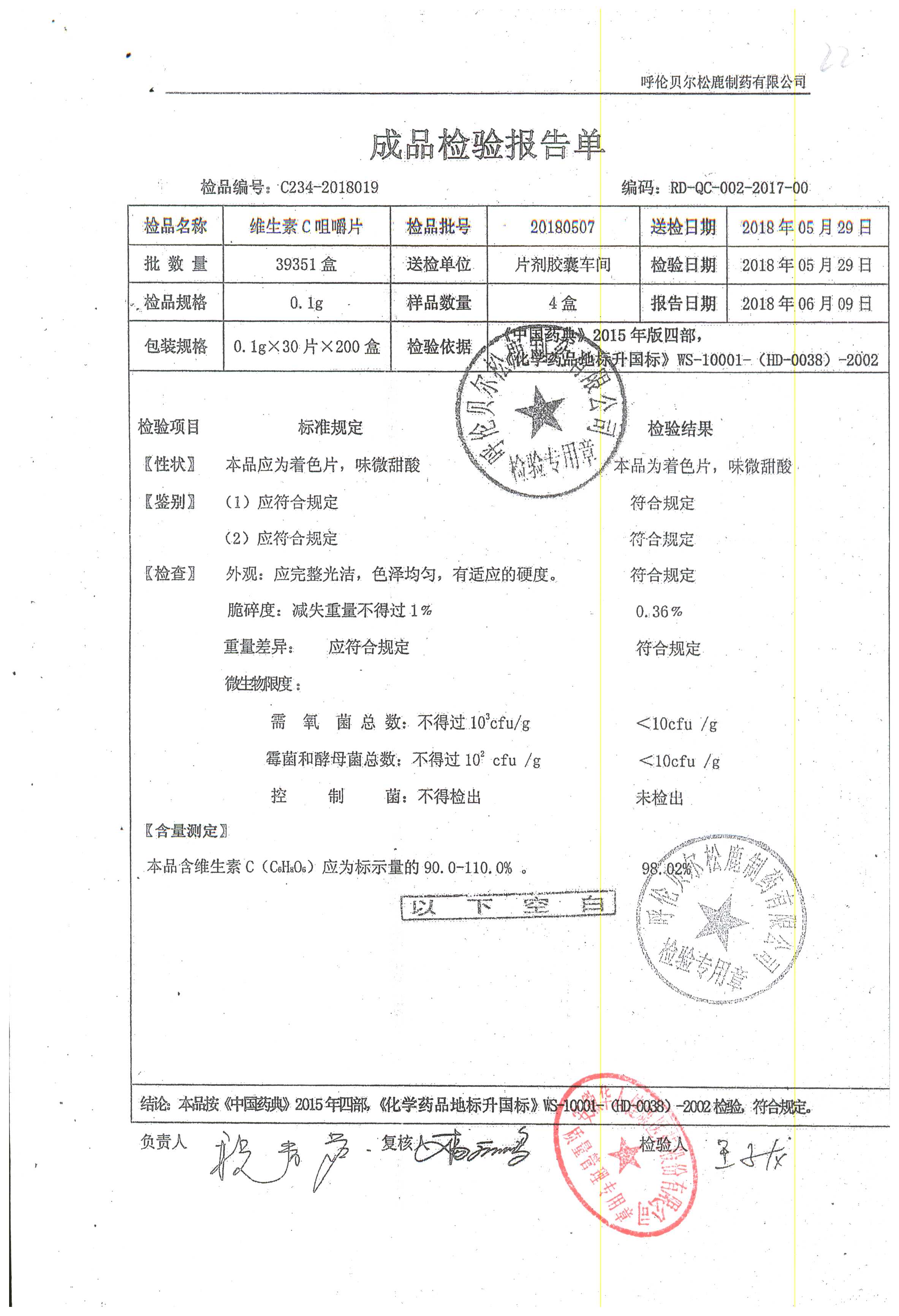 | 維生素C咀嚼片 | 0.1g*30s | 20180507 | 查看詳情 |