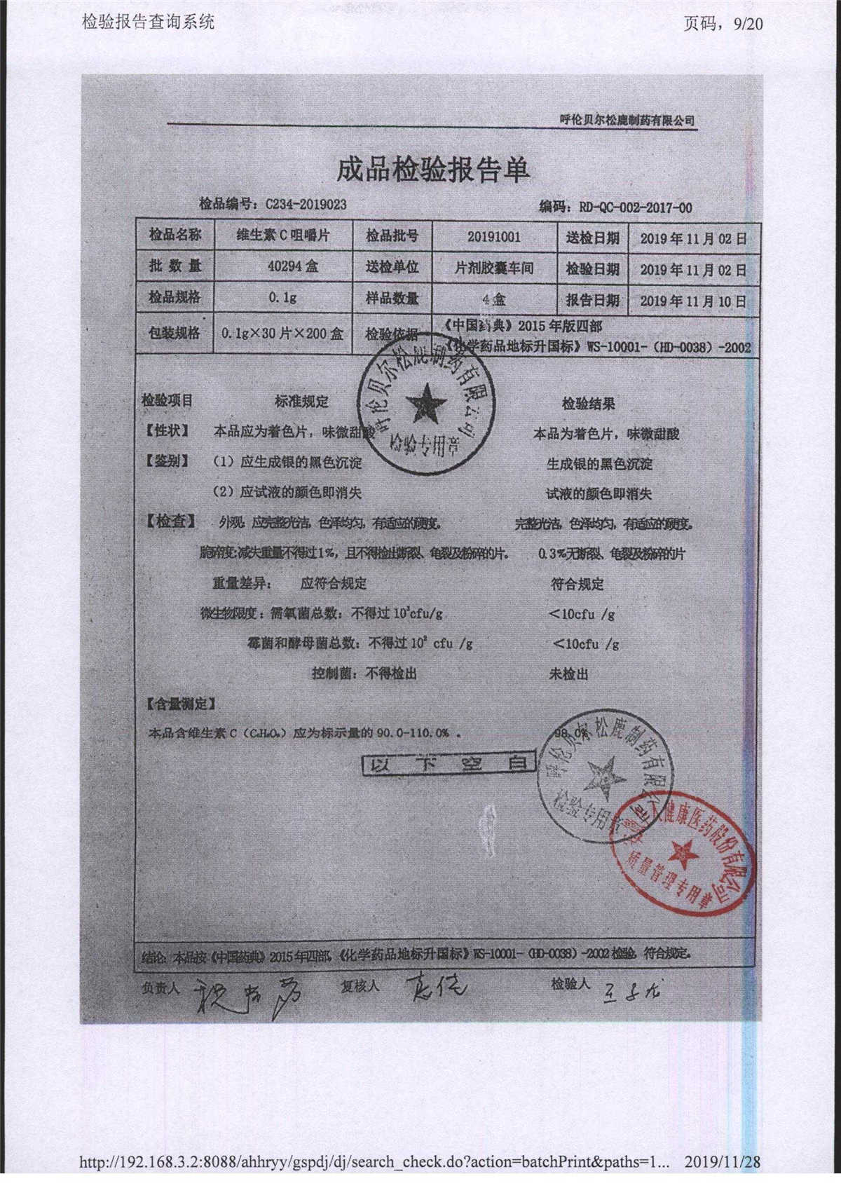 | 維生素C咀嚼片 | 0.1g*30s | 20181110 | 查看詳情 |