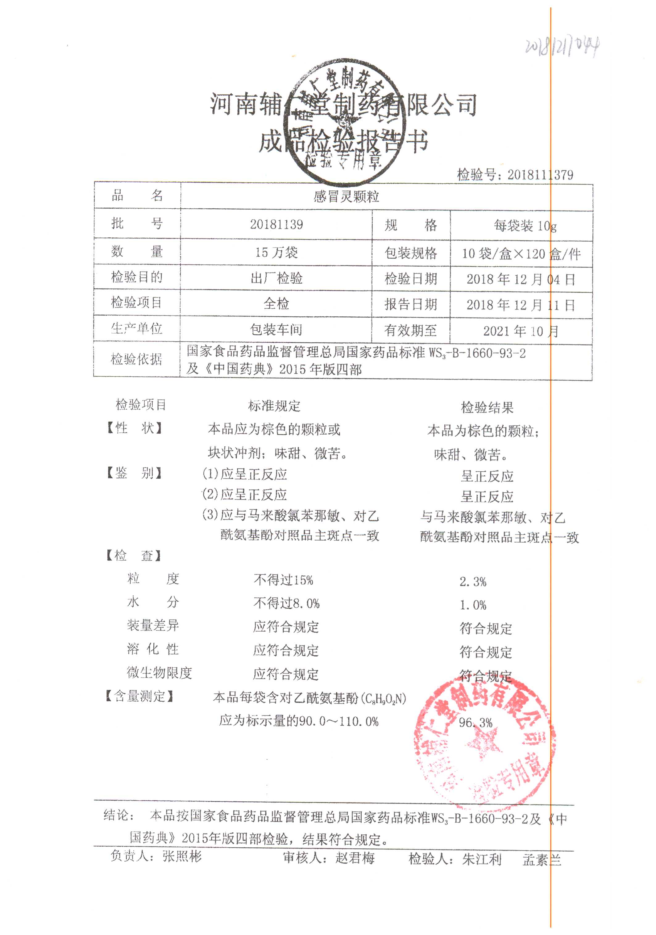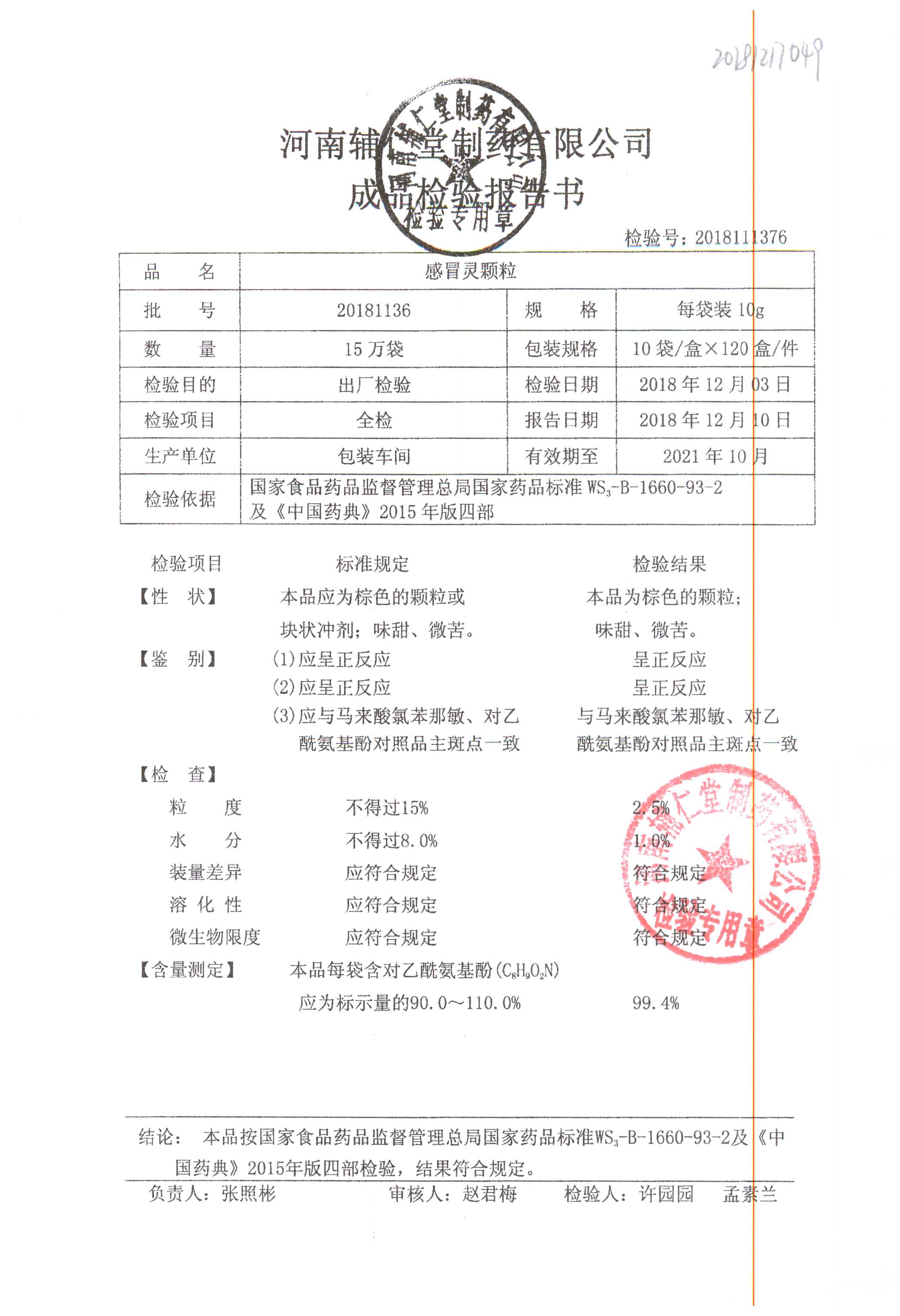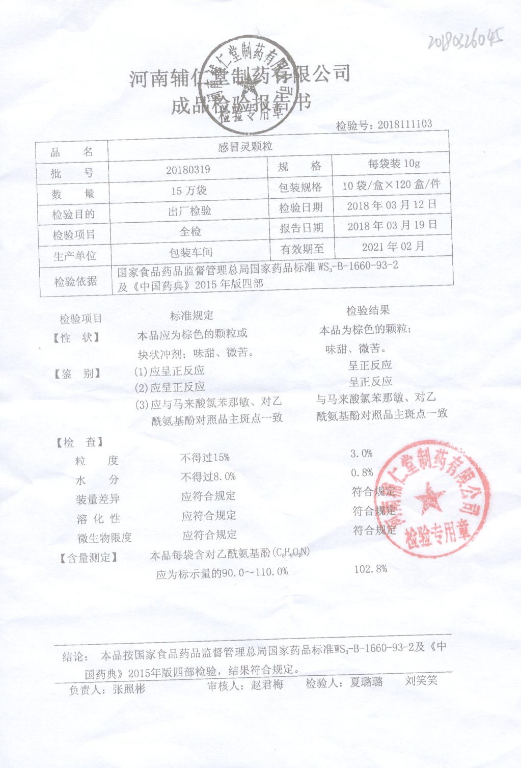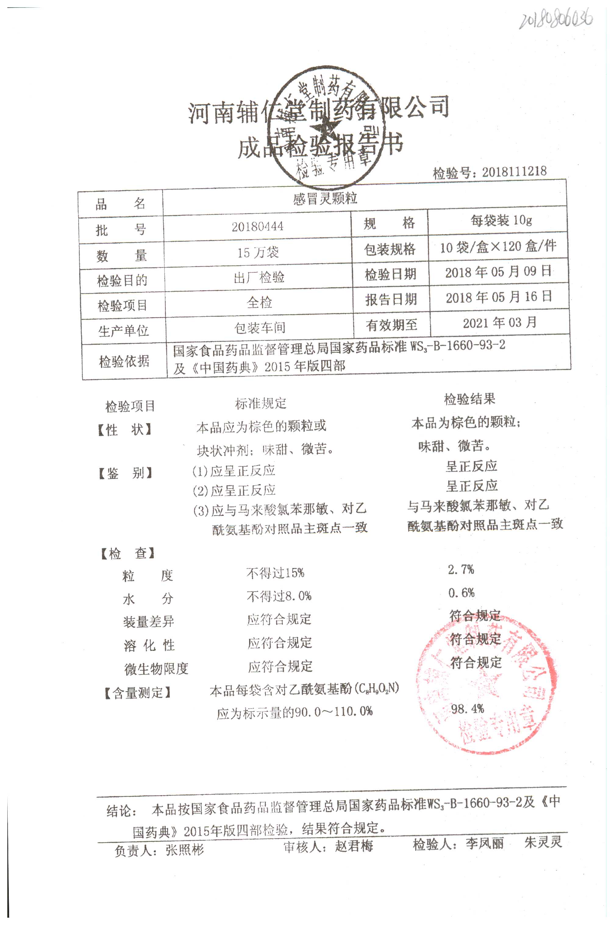 | 感冒靈顆粒 | 10g*10袋 | 20201018 | 查看詳情 |