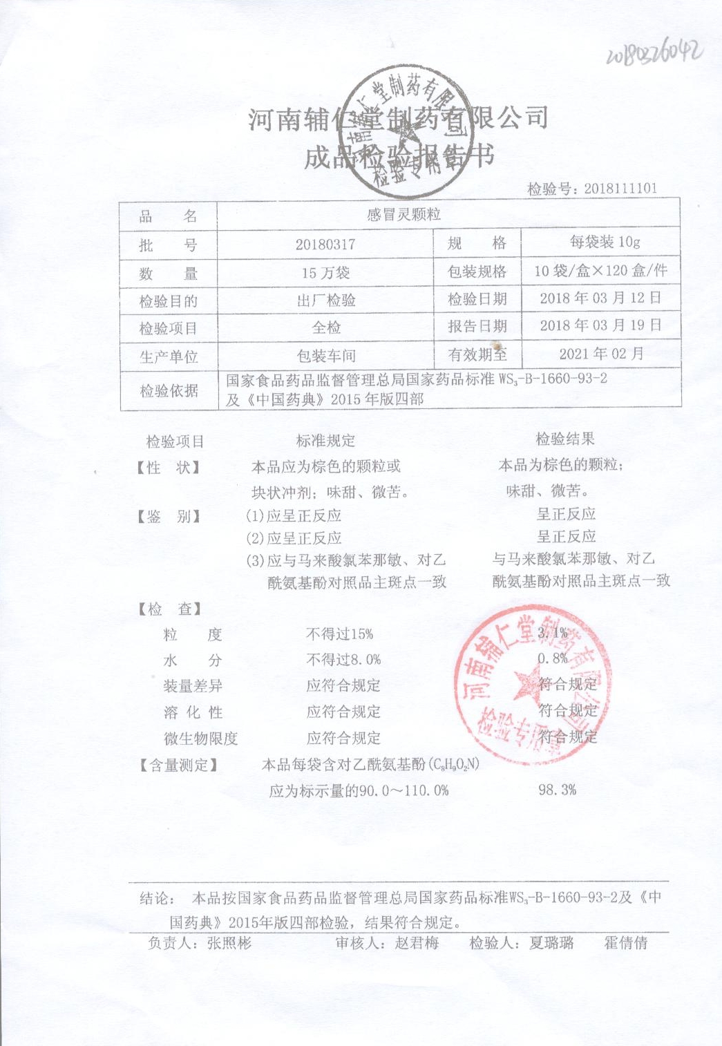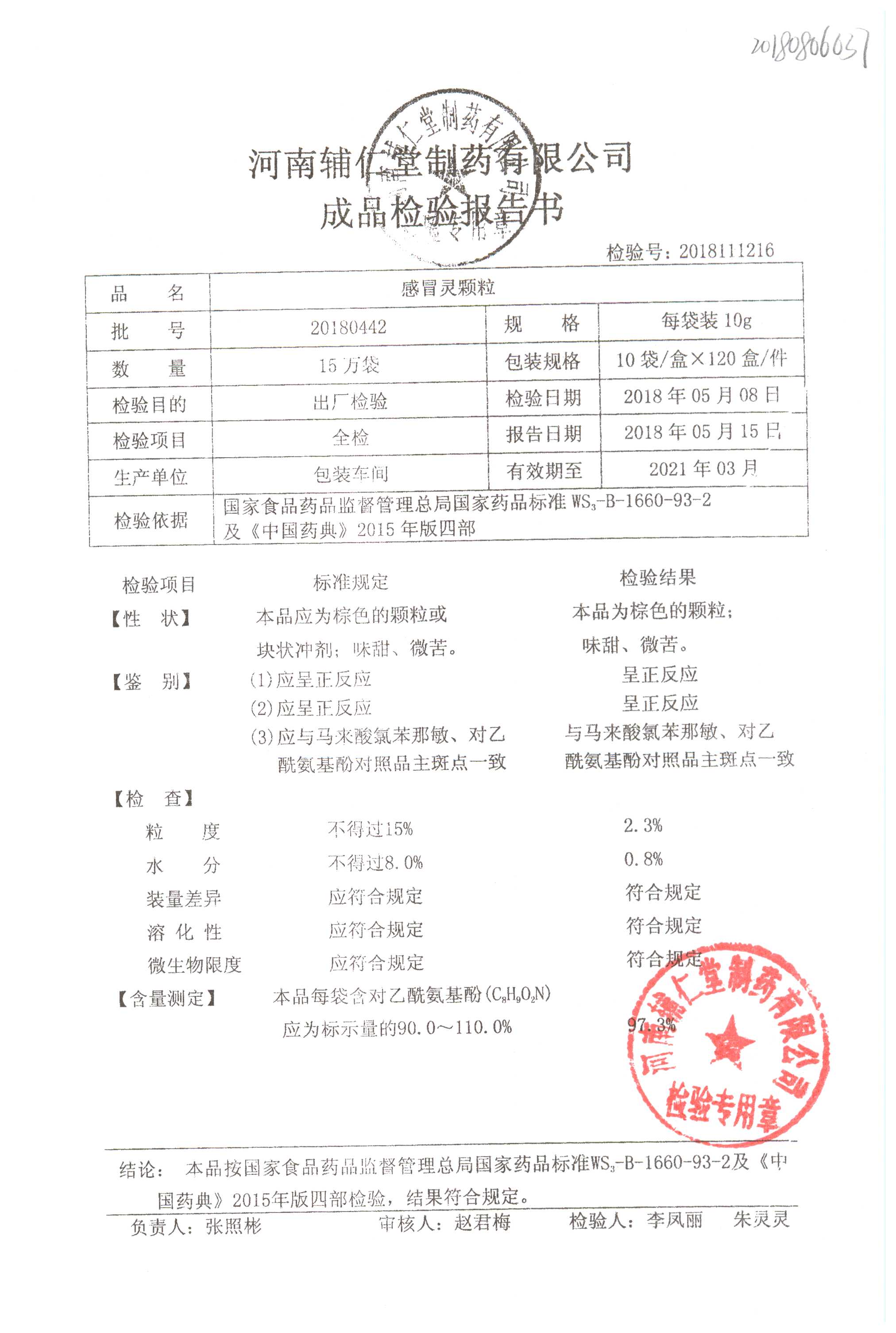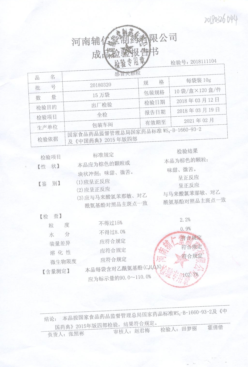 | 感冒靈顆粒 | 10g*10袋 | 20180318 | 查看詳情 |