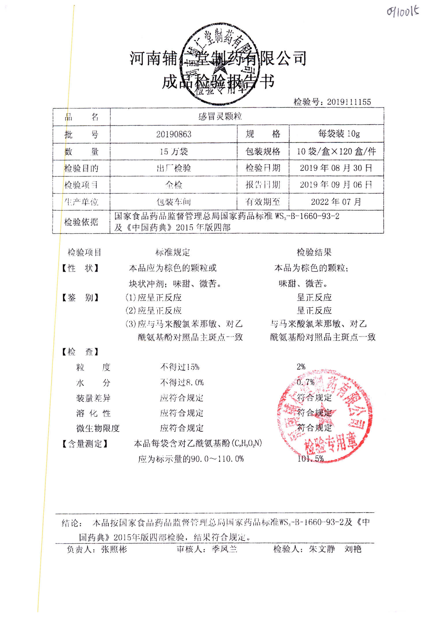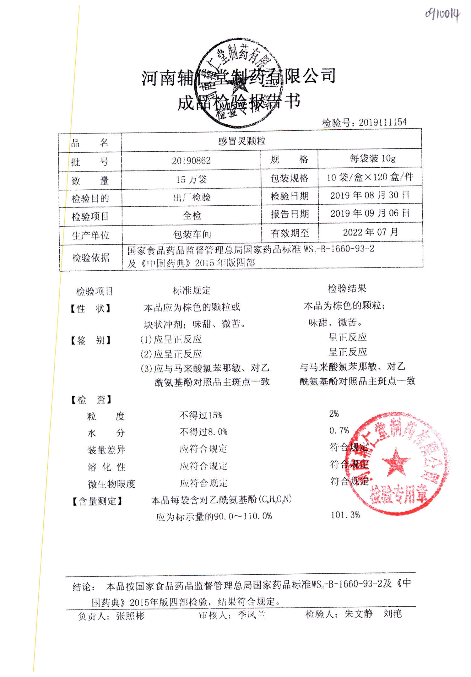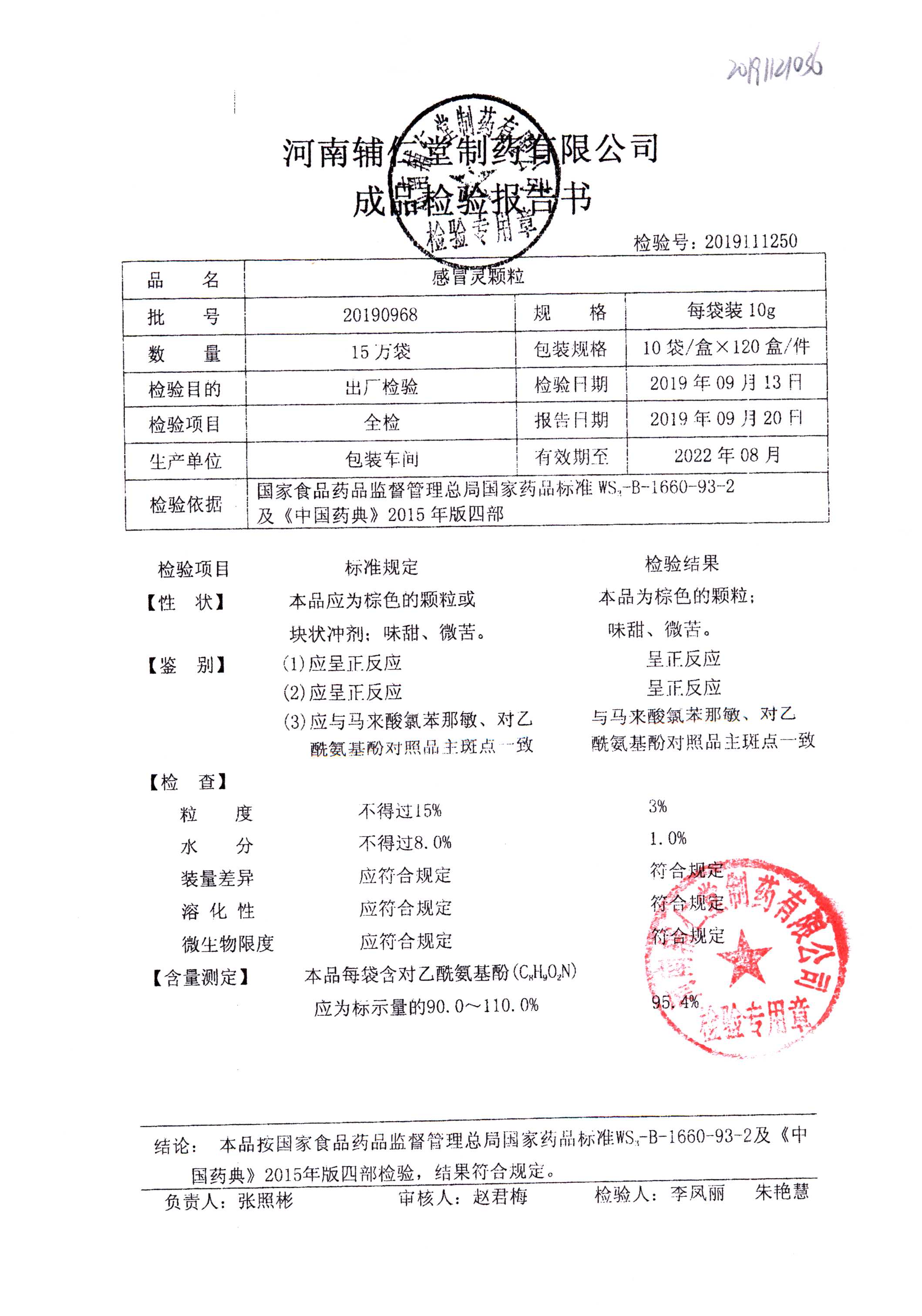 | 感冒靈顆粒 | 10g*10袋 | 20201019 | 查看詳情 |