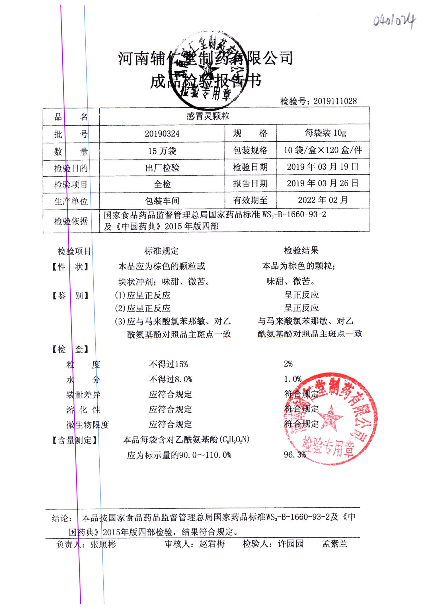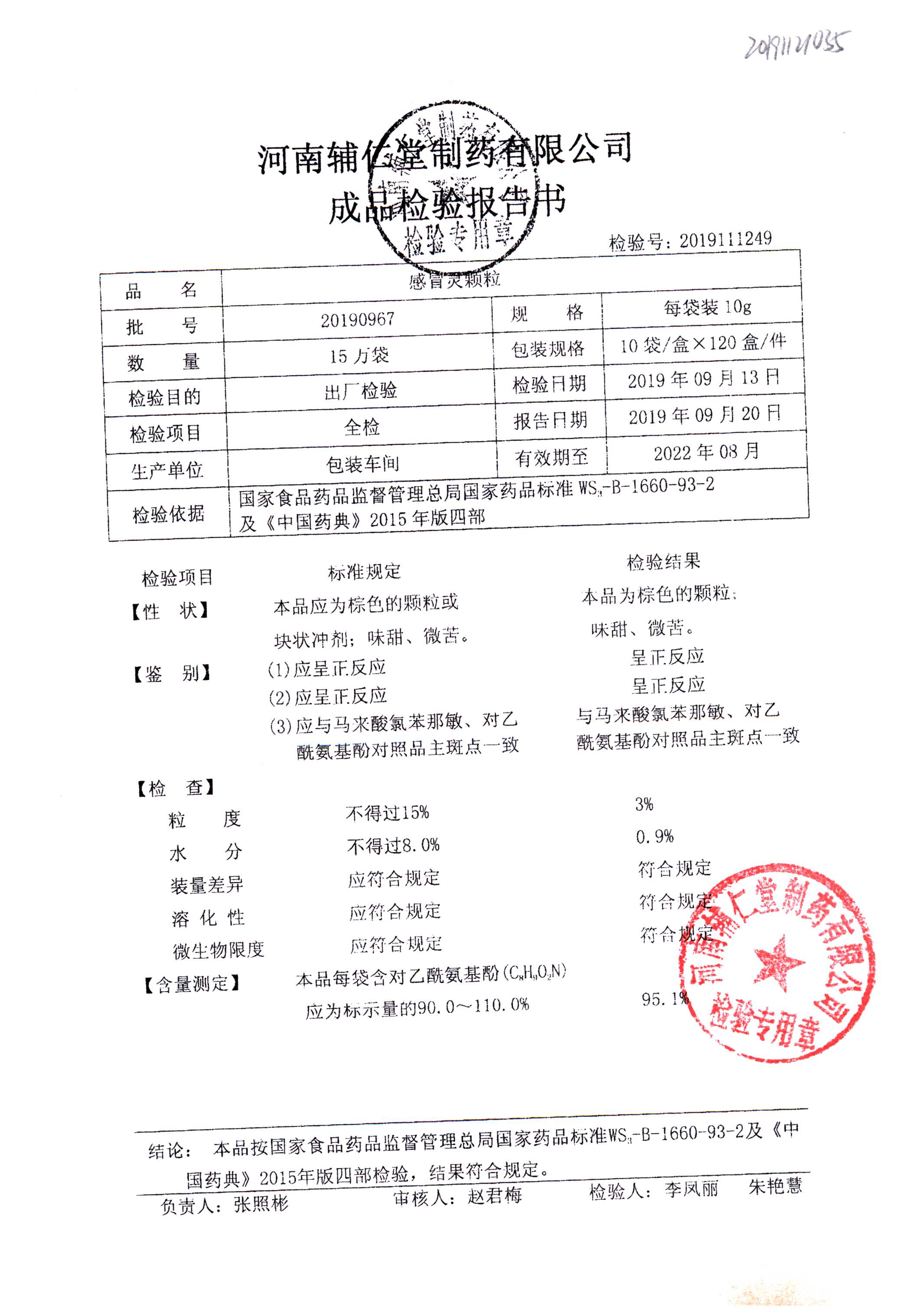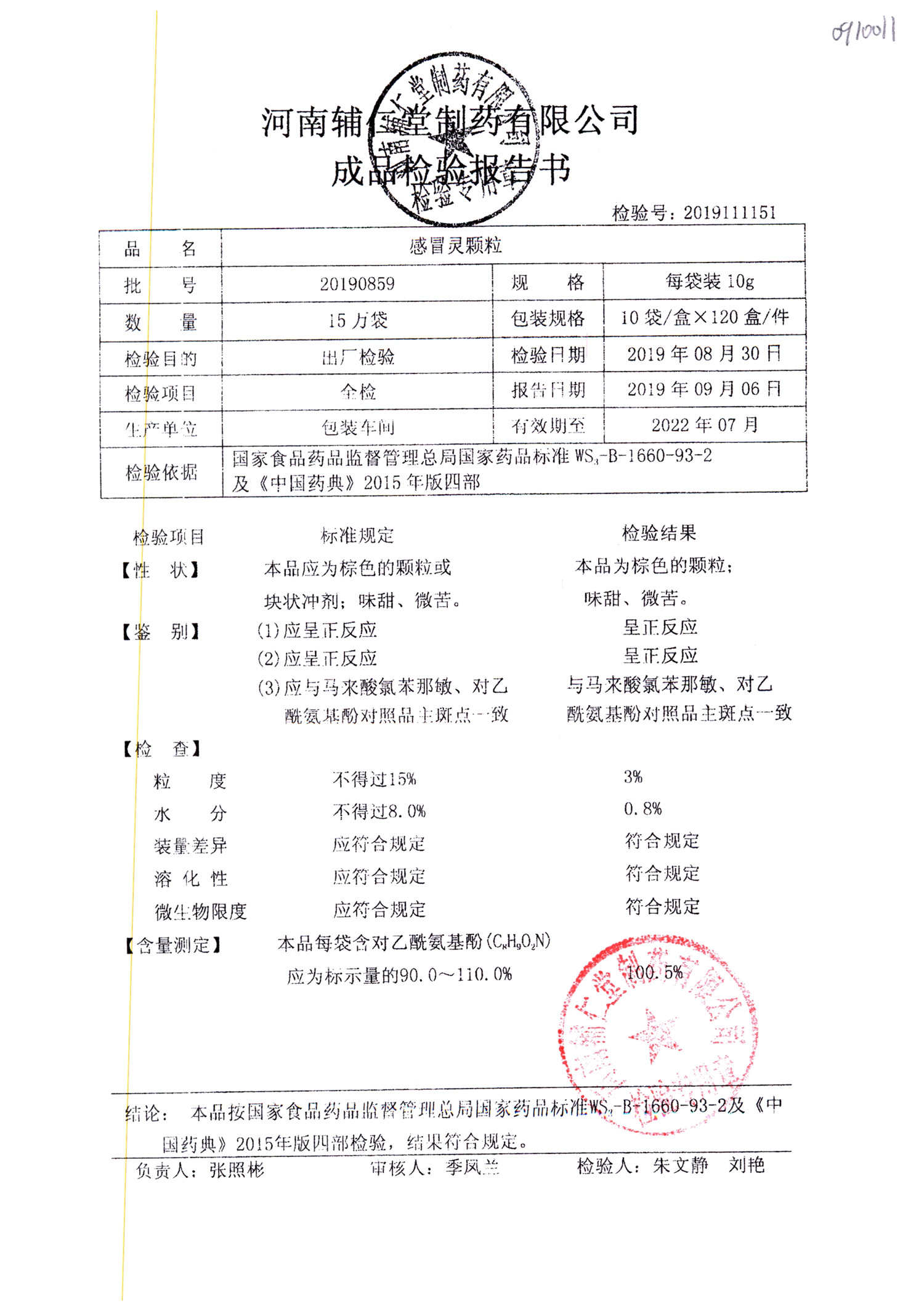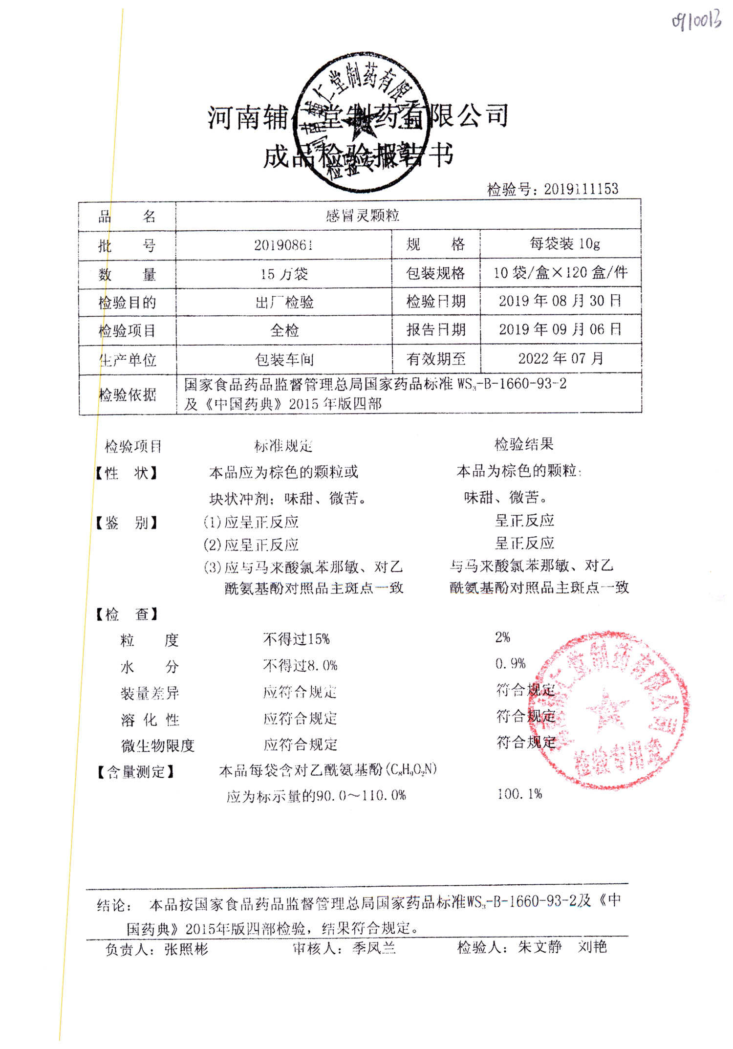 | 感冒靈顆粒 | 10g*10袋 | 20201019 | 查看詳情 |