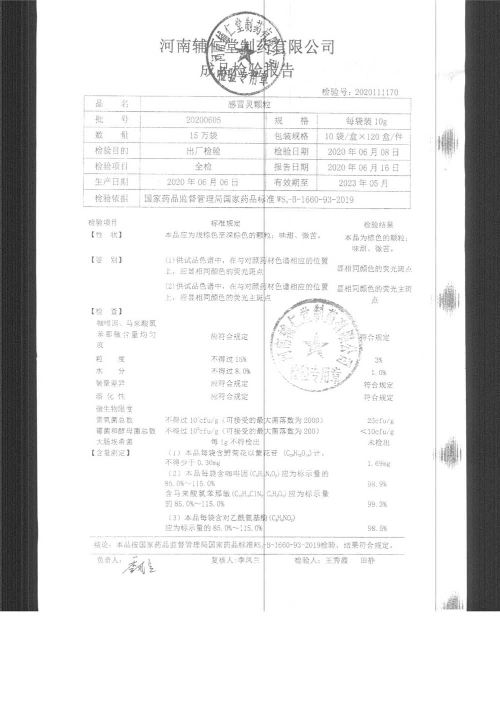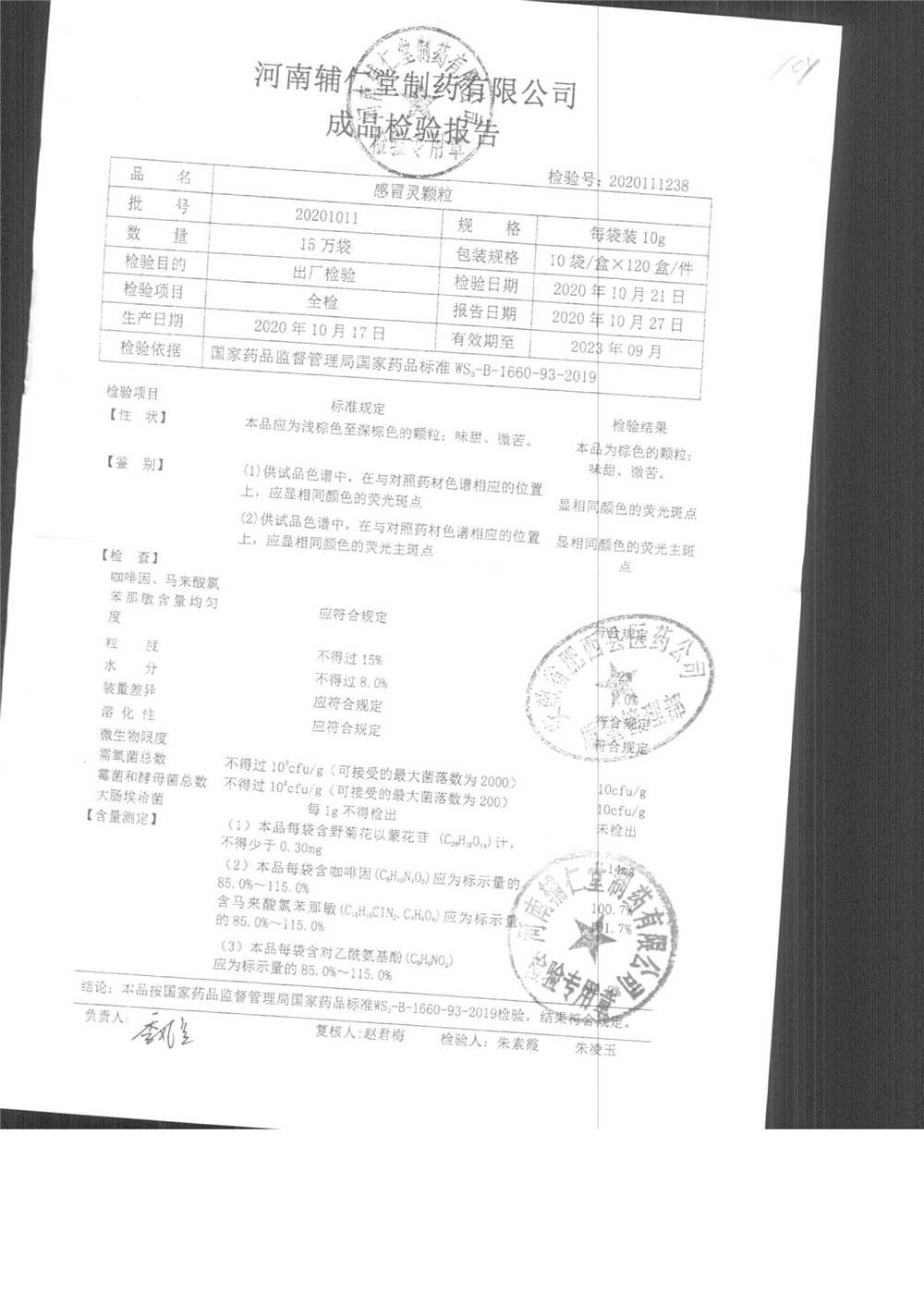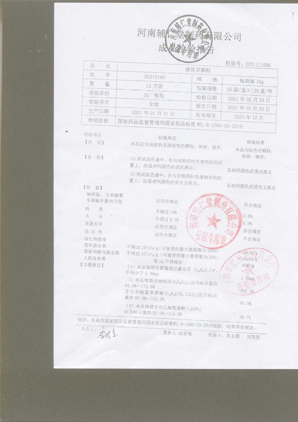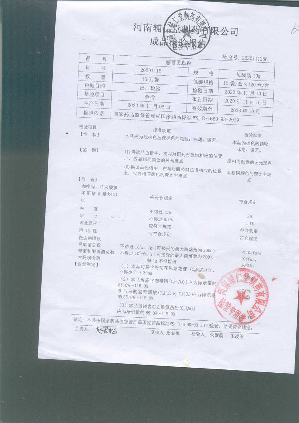 | 感冒靈顆粒 | 10g*10袋 | 20201020 | 查看詳情 |