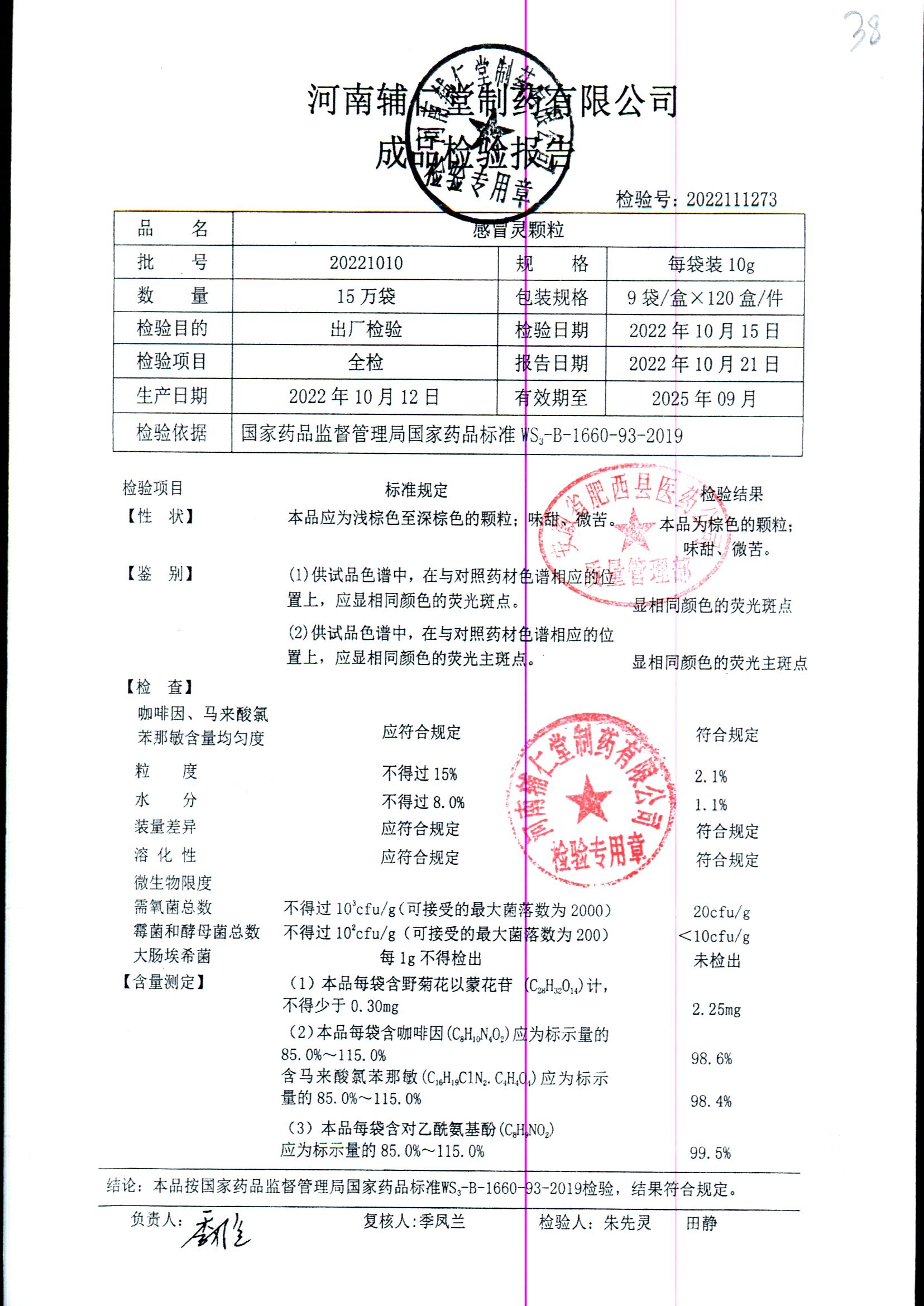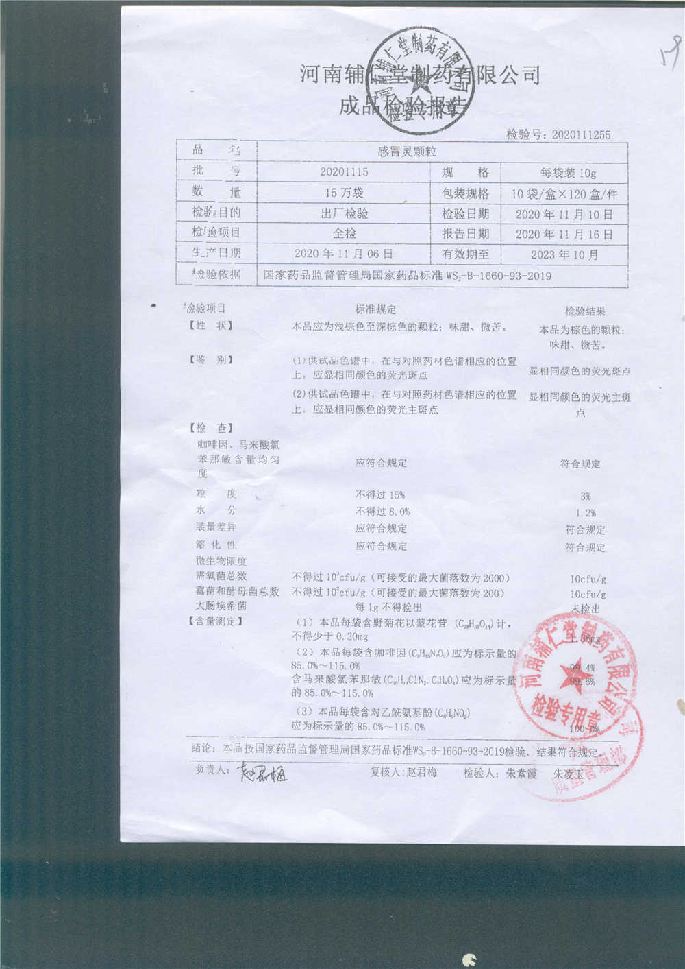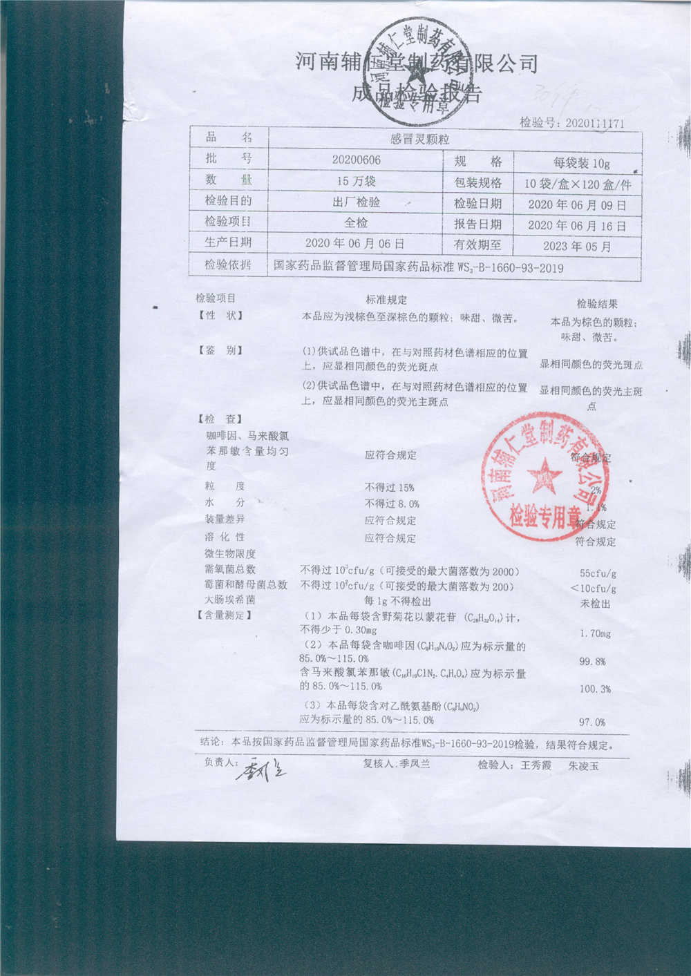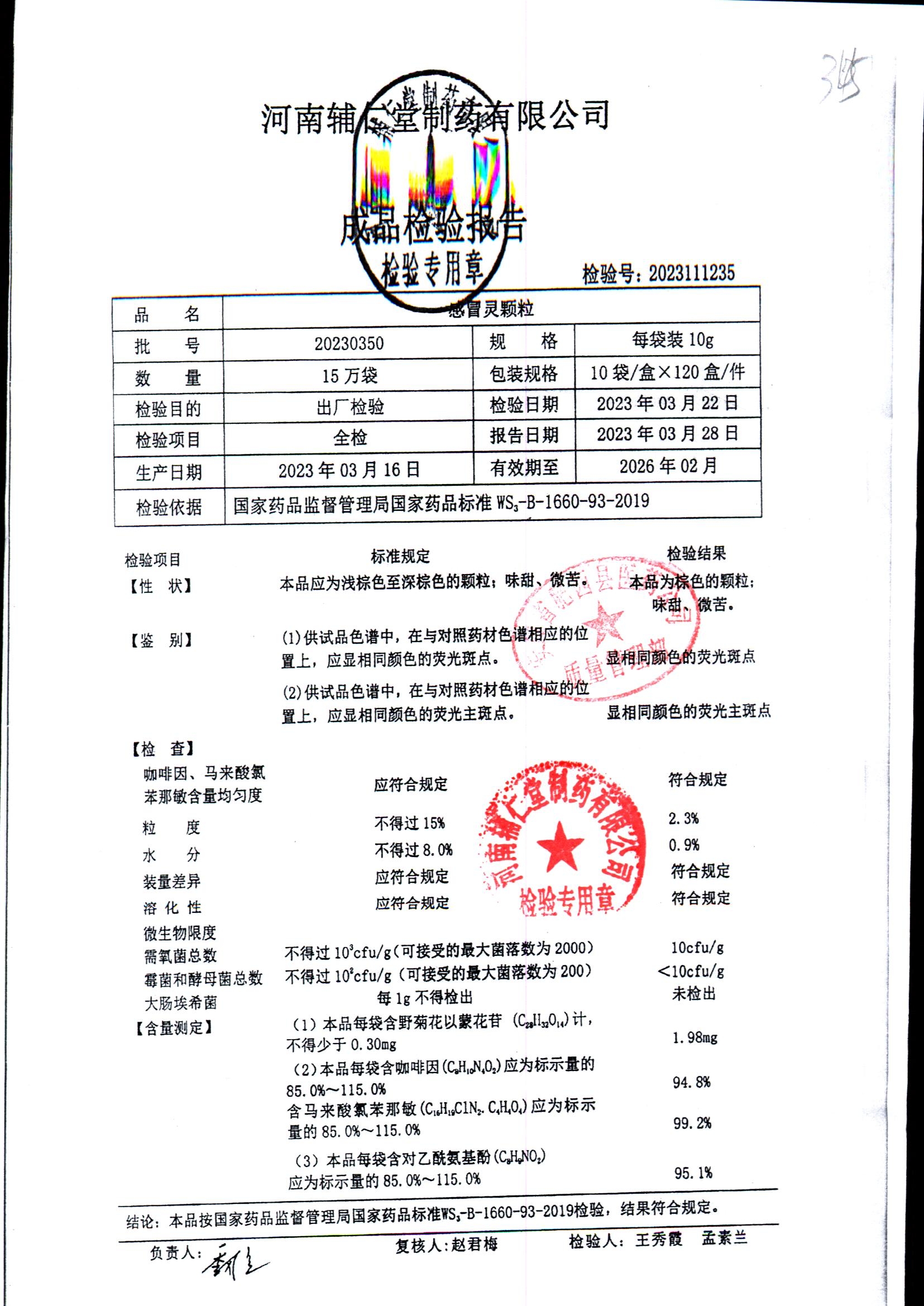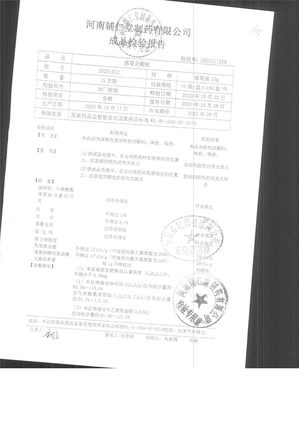 | 感冒靈顆粒 | 10g*10袋 | 20201020 | 查看詳情 |