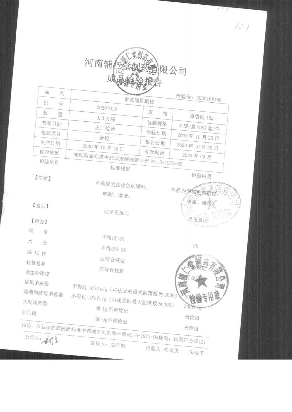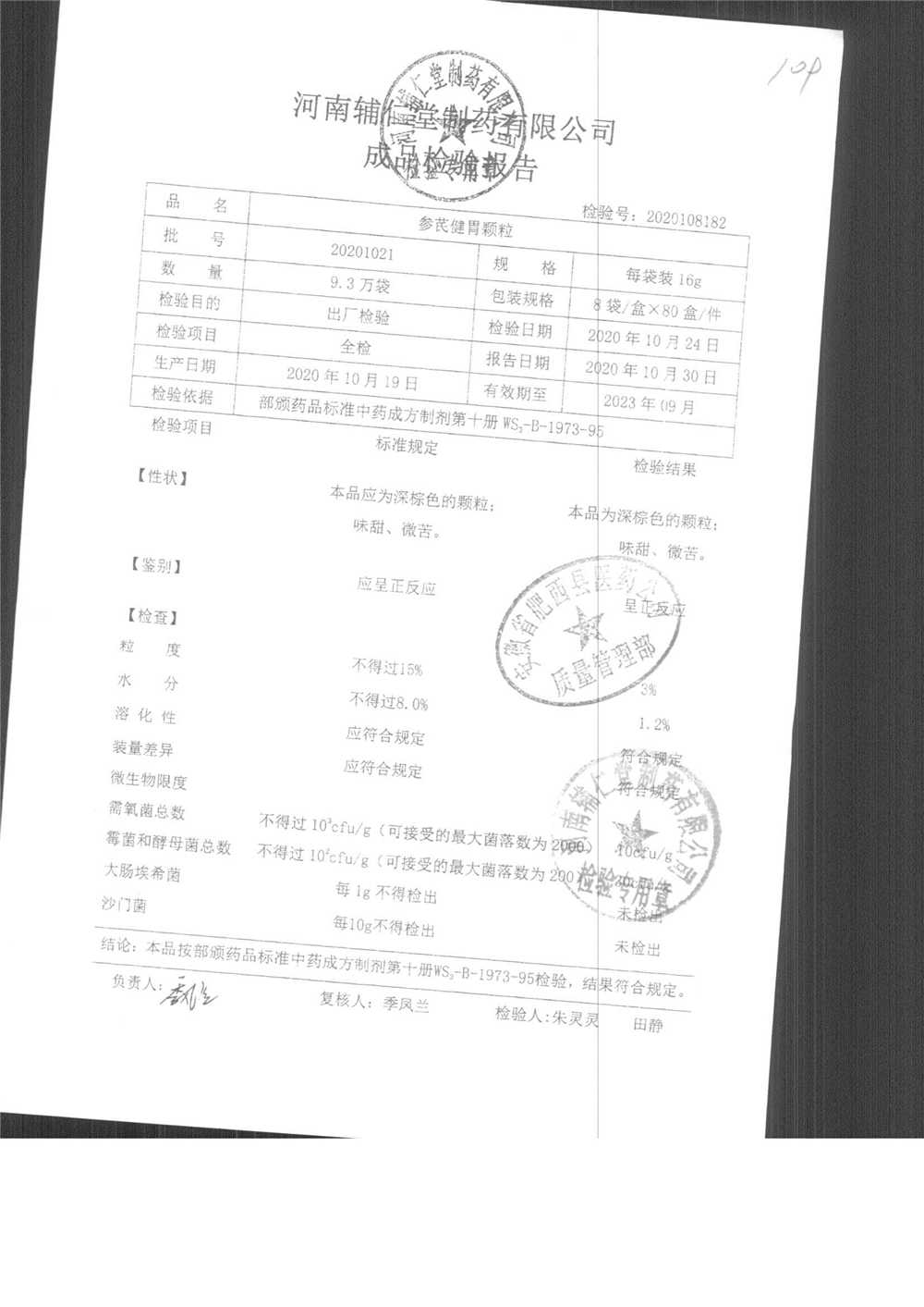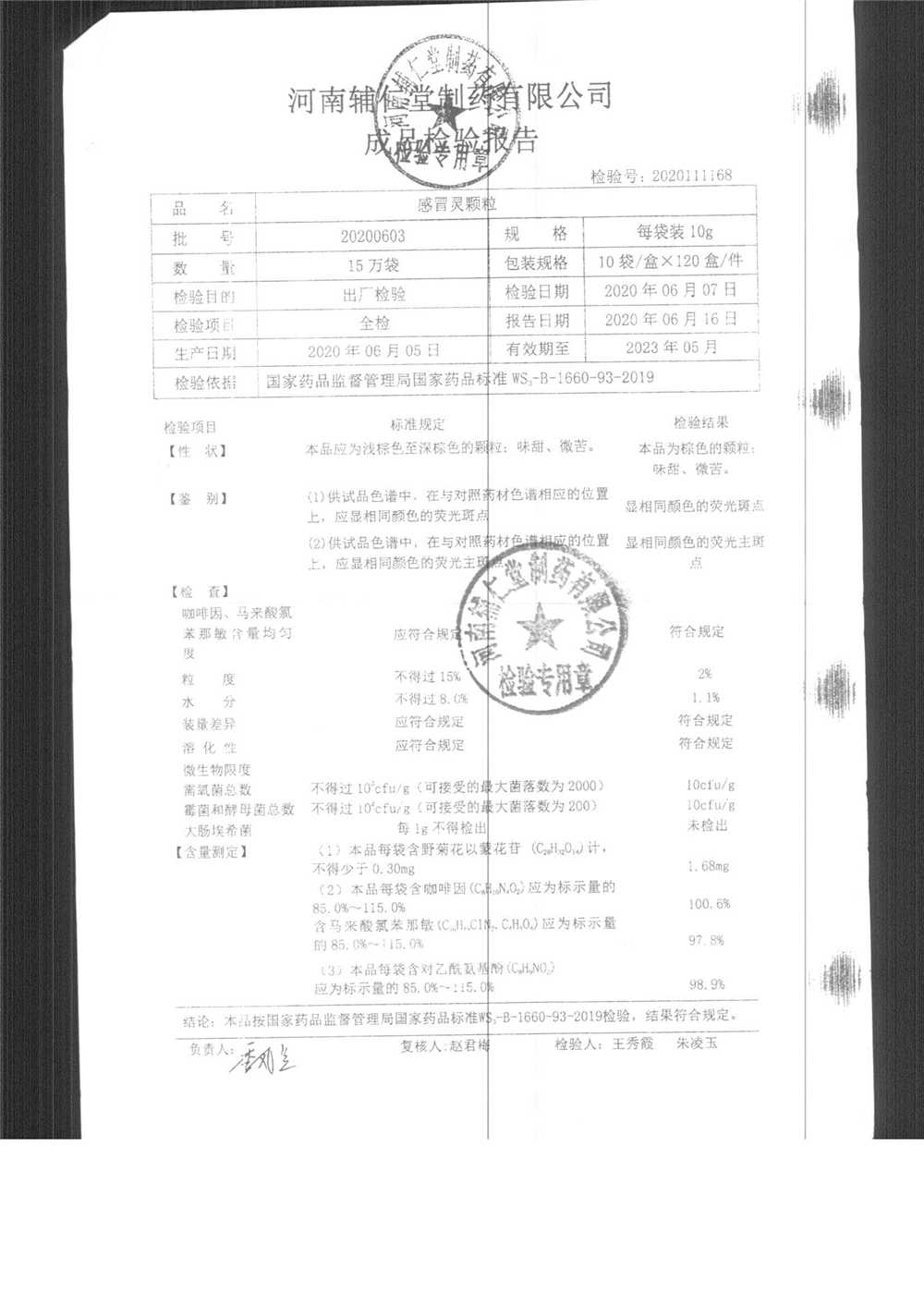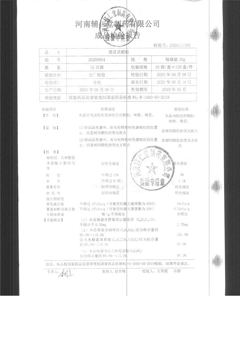 | 感冒靈顆粒 | 10g*10袋 | 20201020 | 查看詳情 |