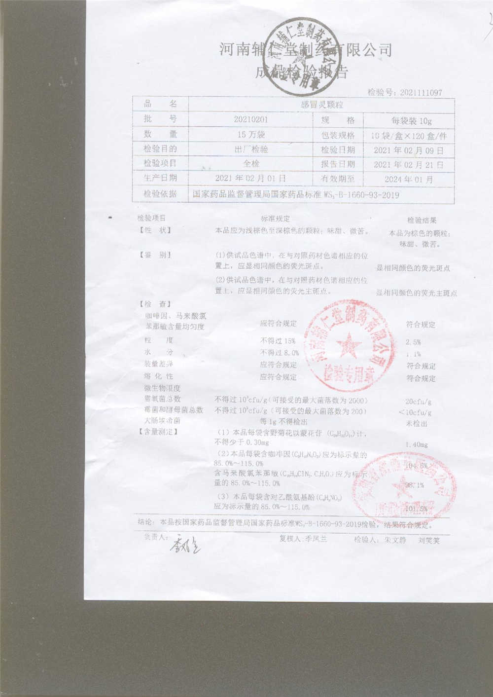 | 感冒靈顆粒 | 10g*10袋 | 20210201 | 查看詳情 |