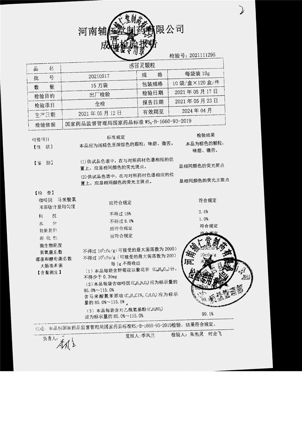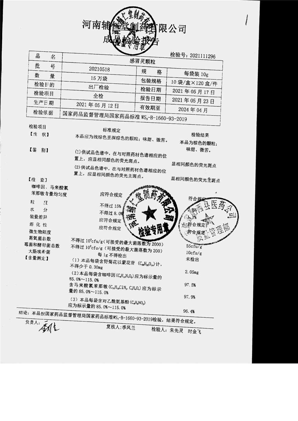 | 感冒靈顆粒 | 10g*10袋 | 20210517 | 查看詳情 |