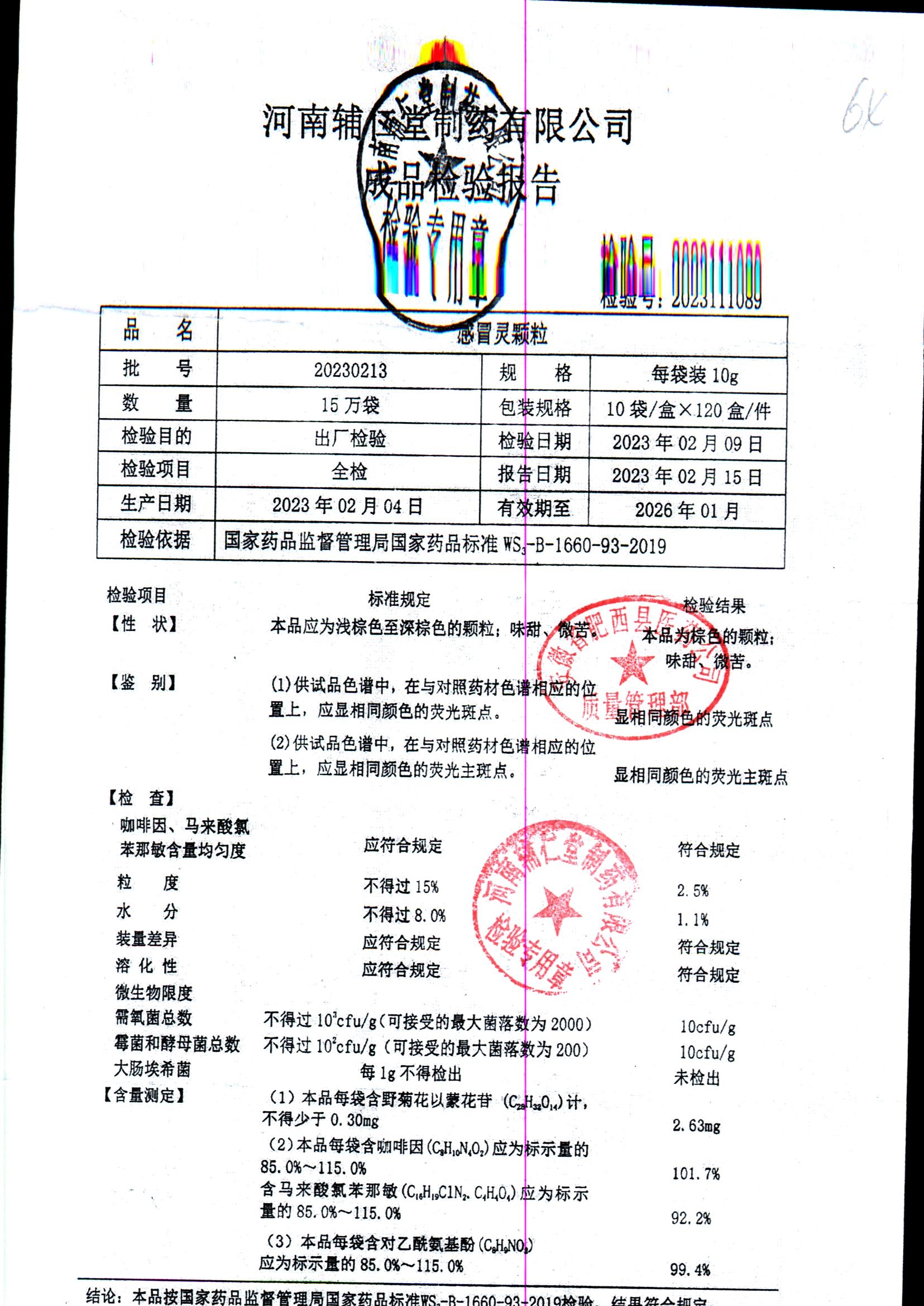 | 感冒靈顆粒 | 10g*10袋 | 20230213 | 查看詳情 |