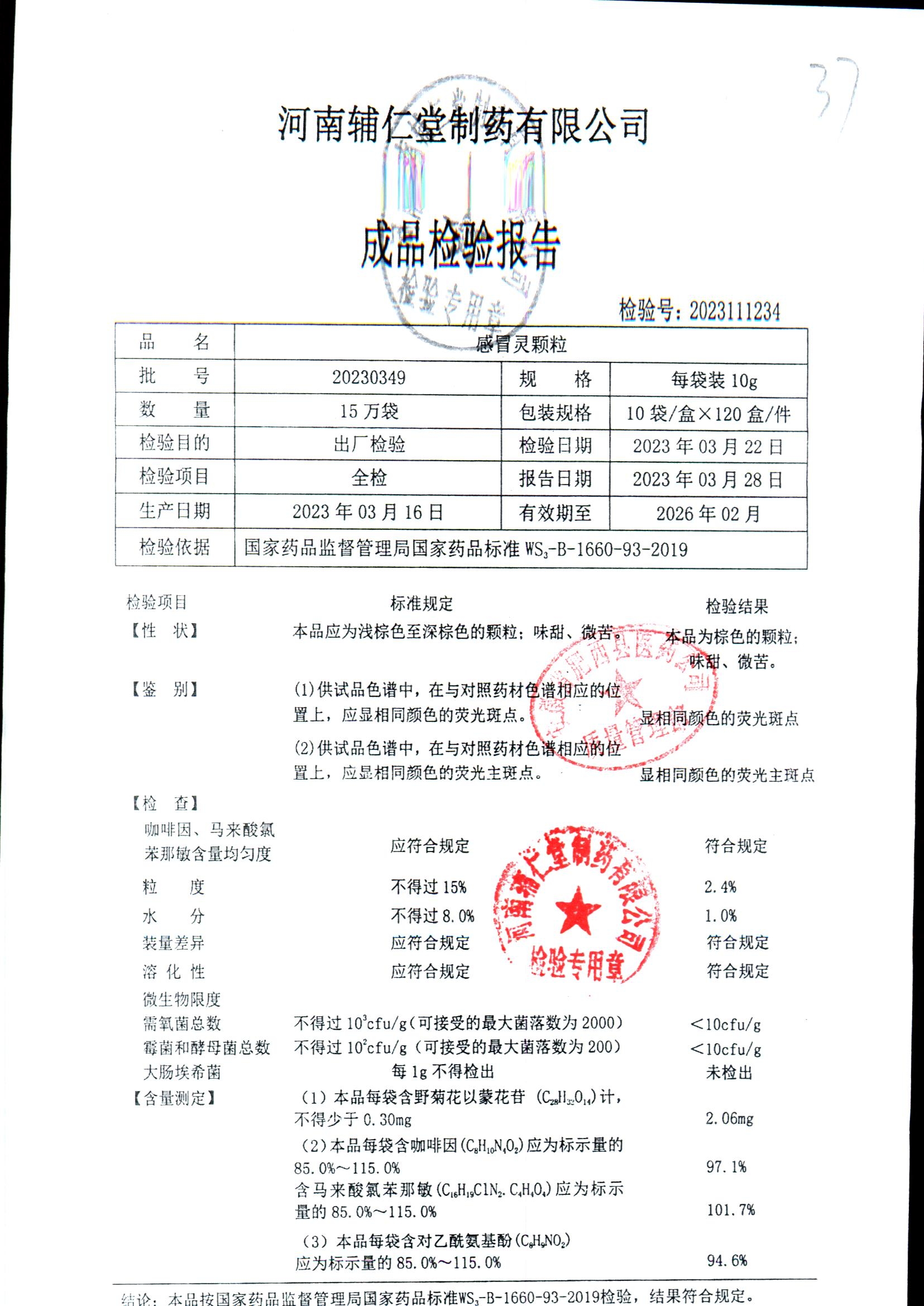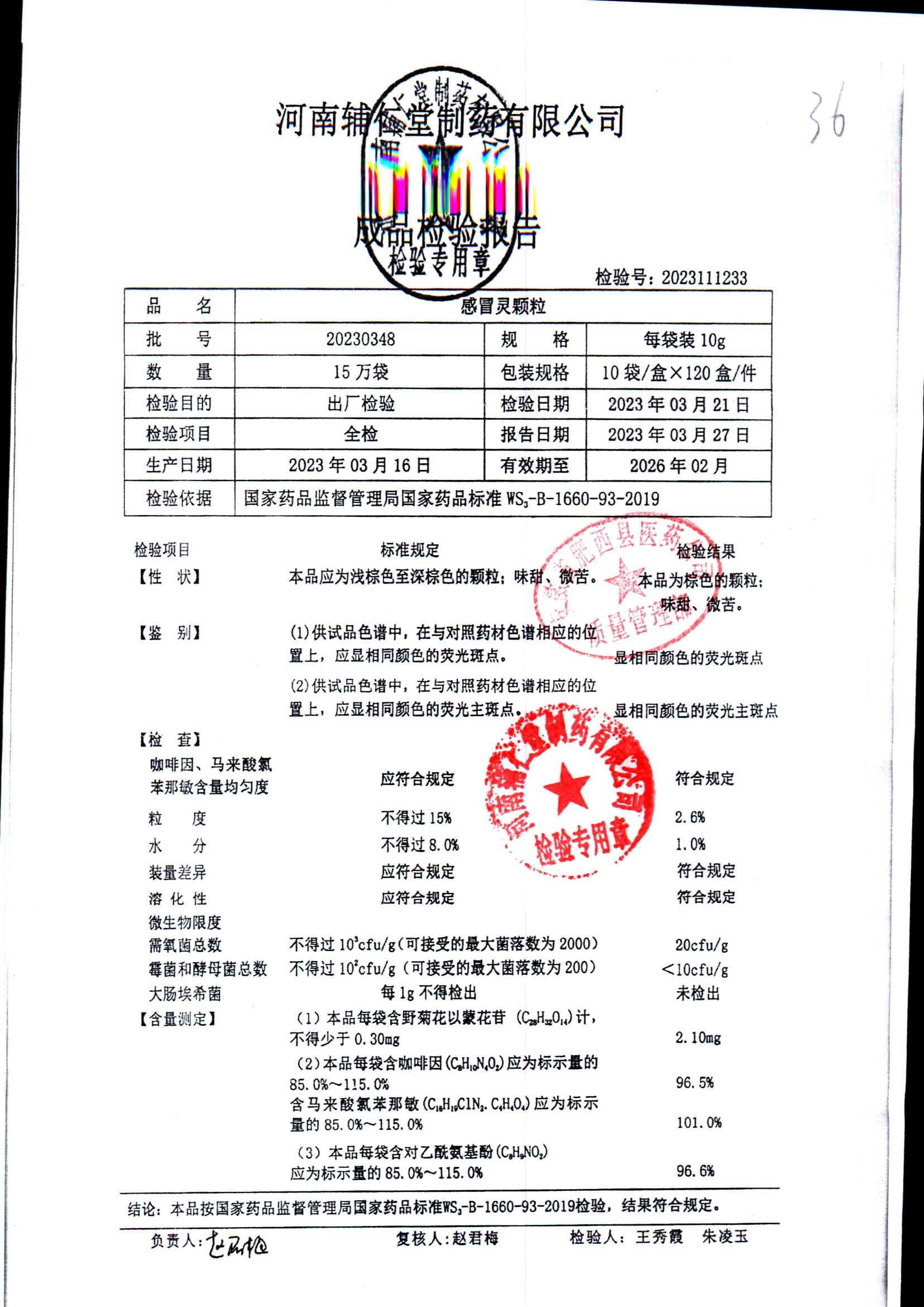 | 感冒靈顆粒 | 10g*10袋 | 20230348 | 查看詳情 |