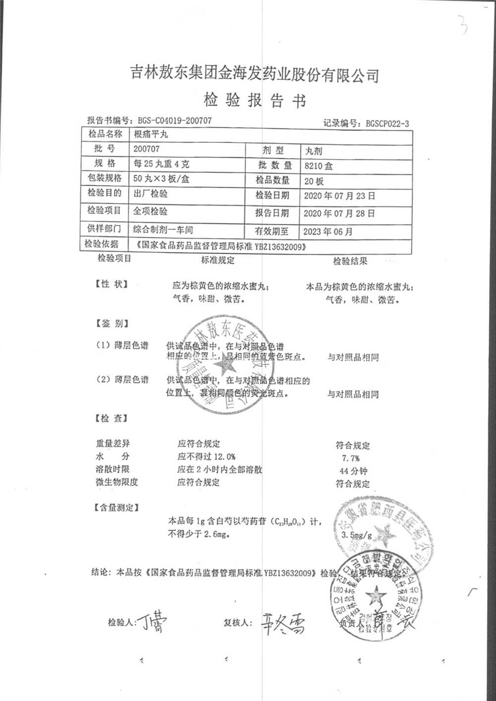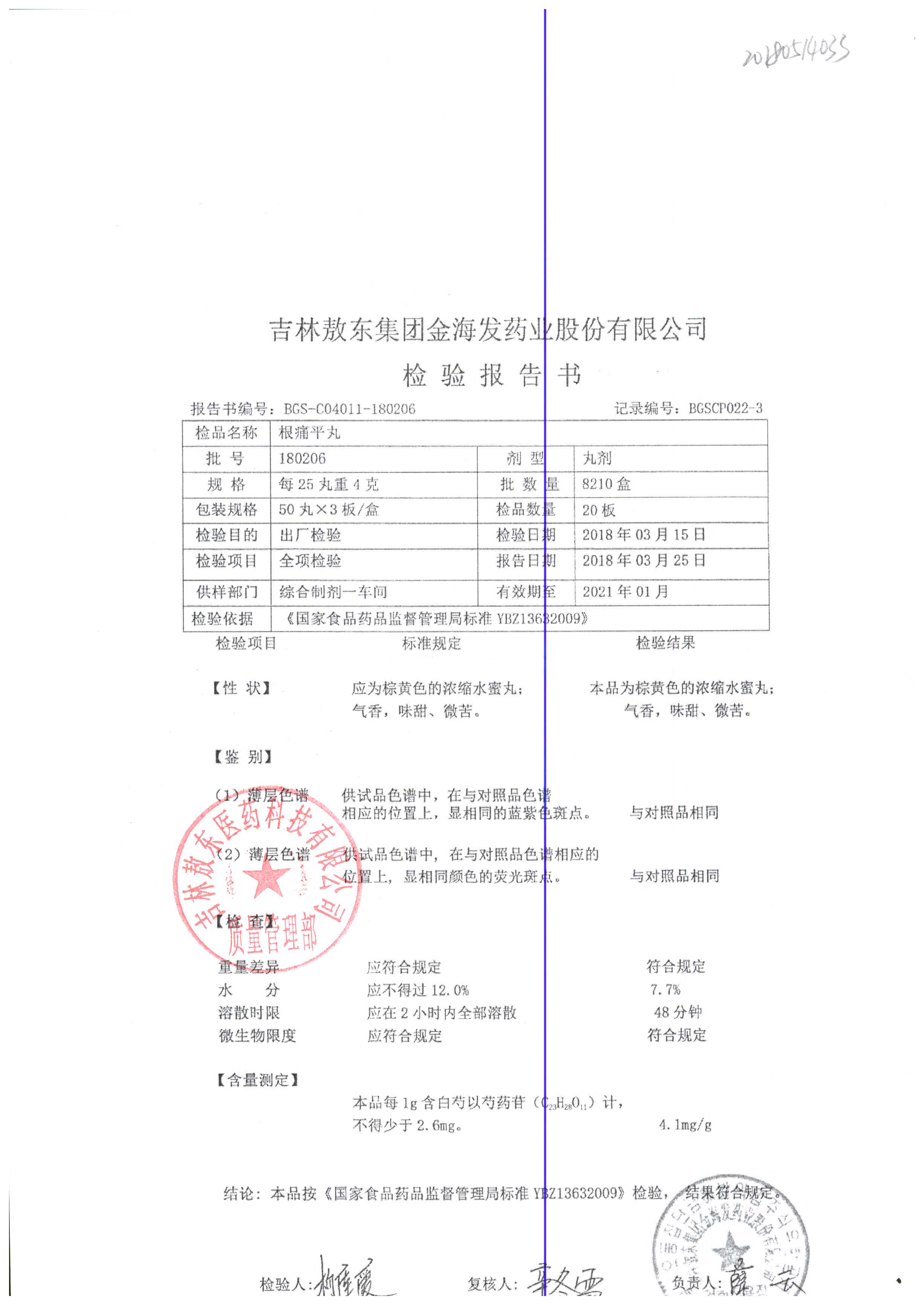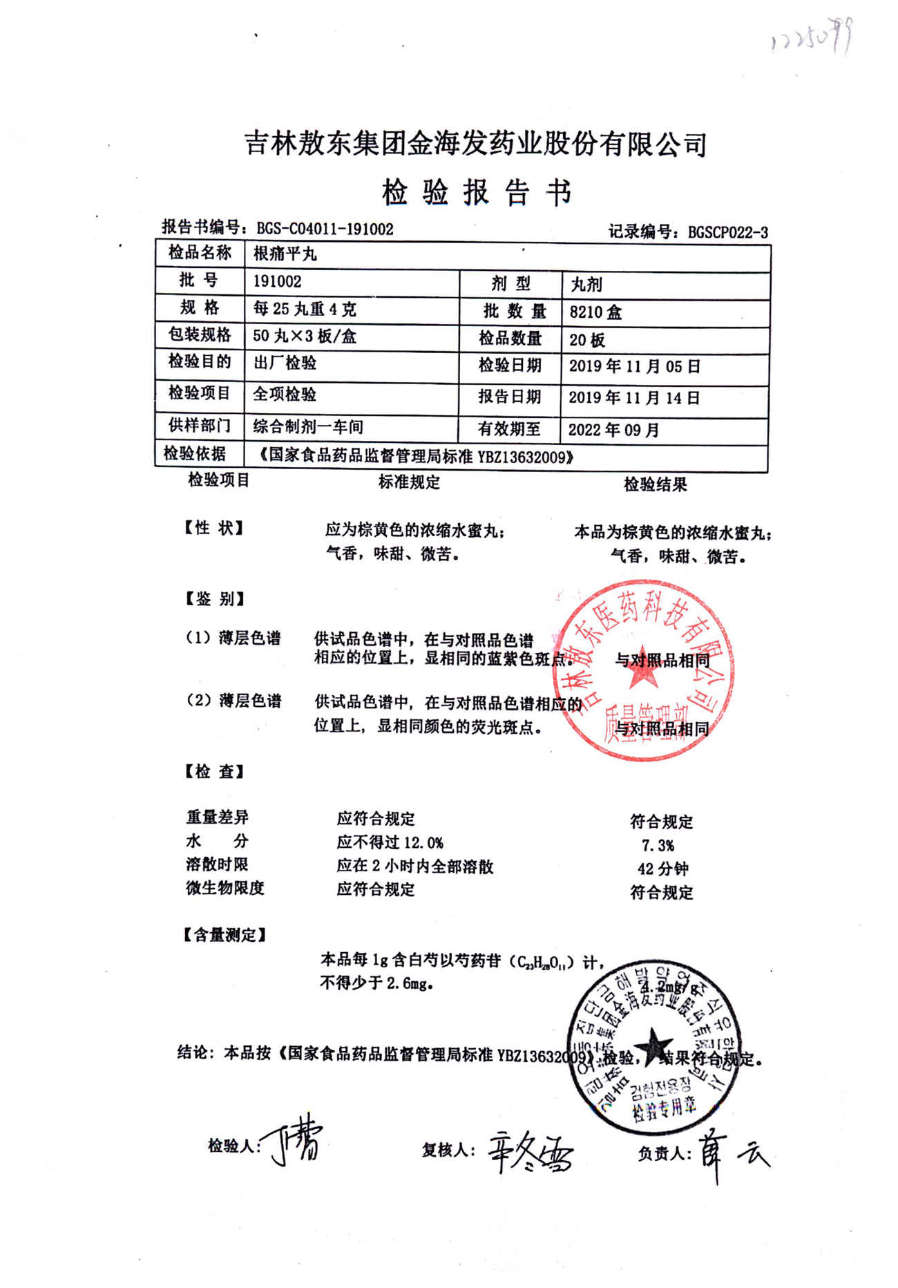 | 根痛平丸 | 50s*3板 | 201007 | 查看詳情 |