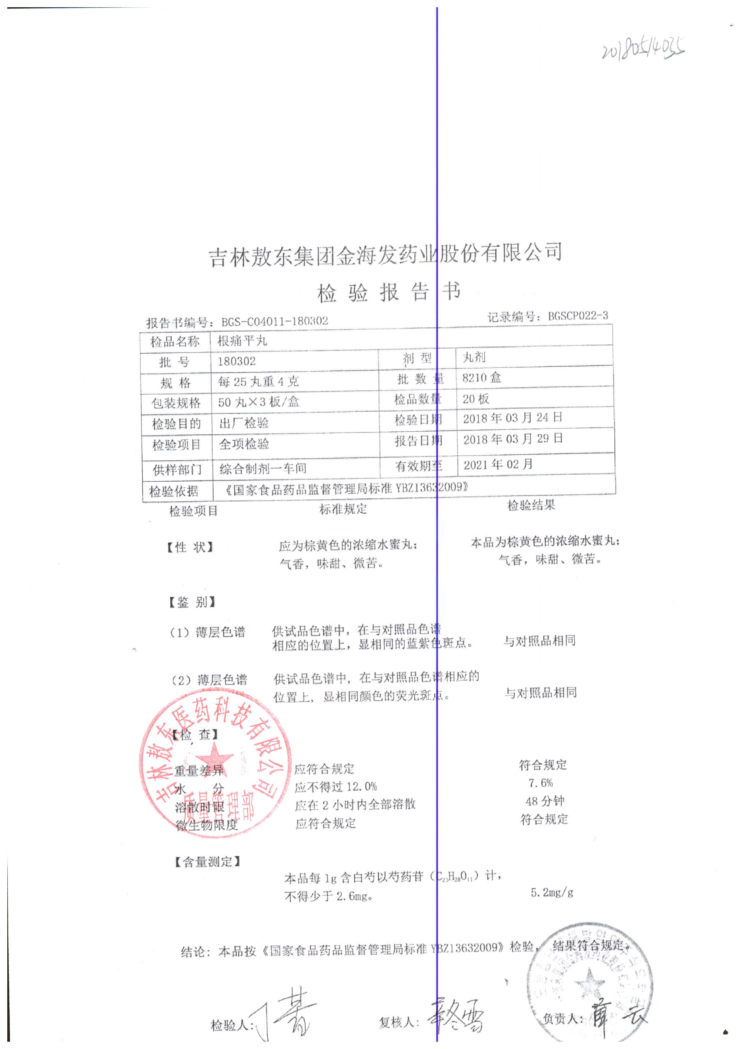 | 名稱 | 規(guī)格 | 批號(hào) | 藥檢報(bào)告 |