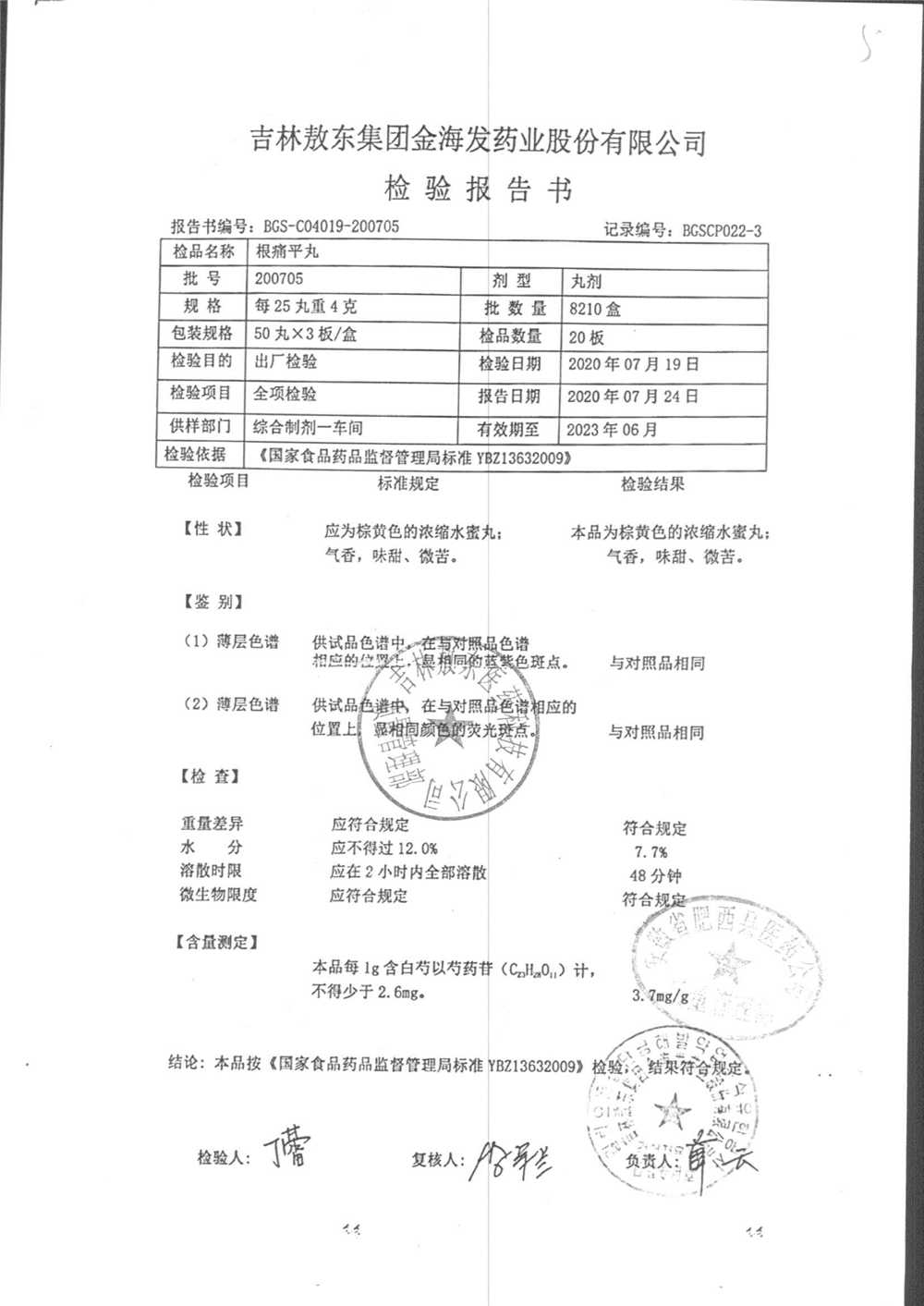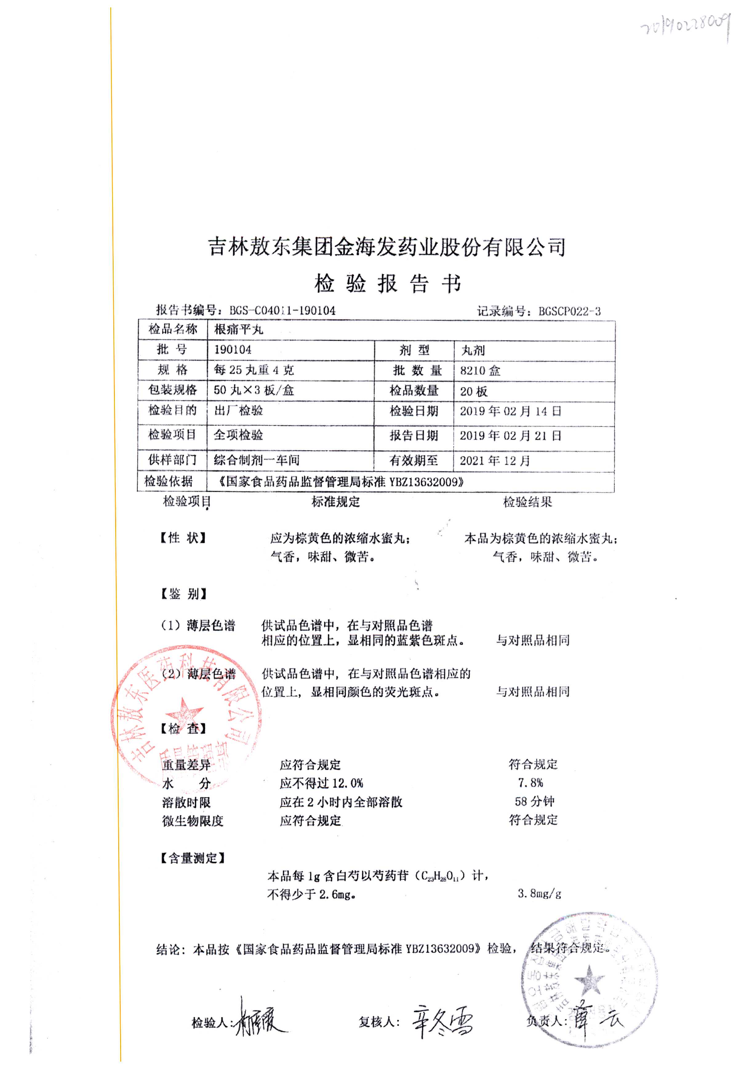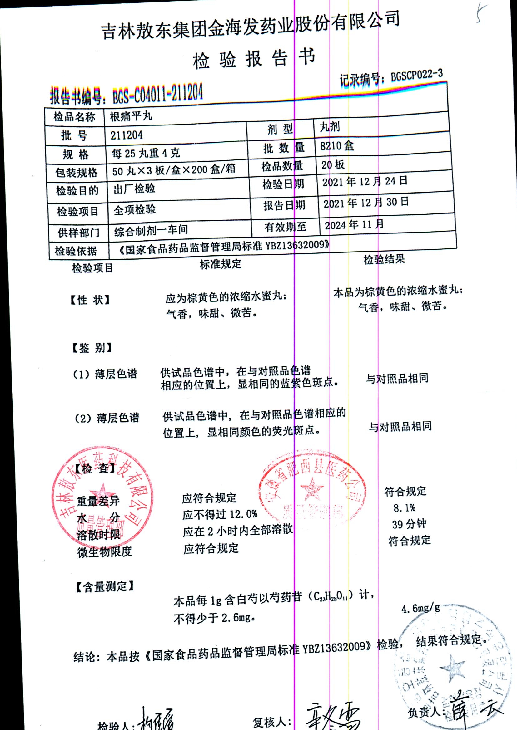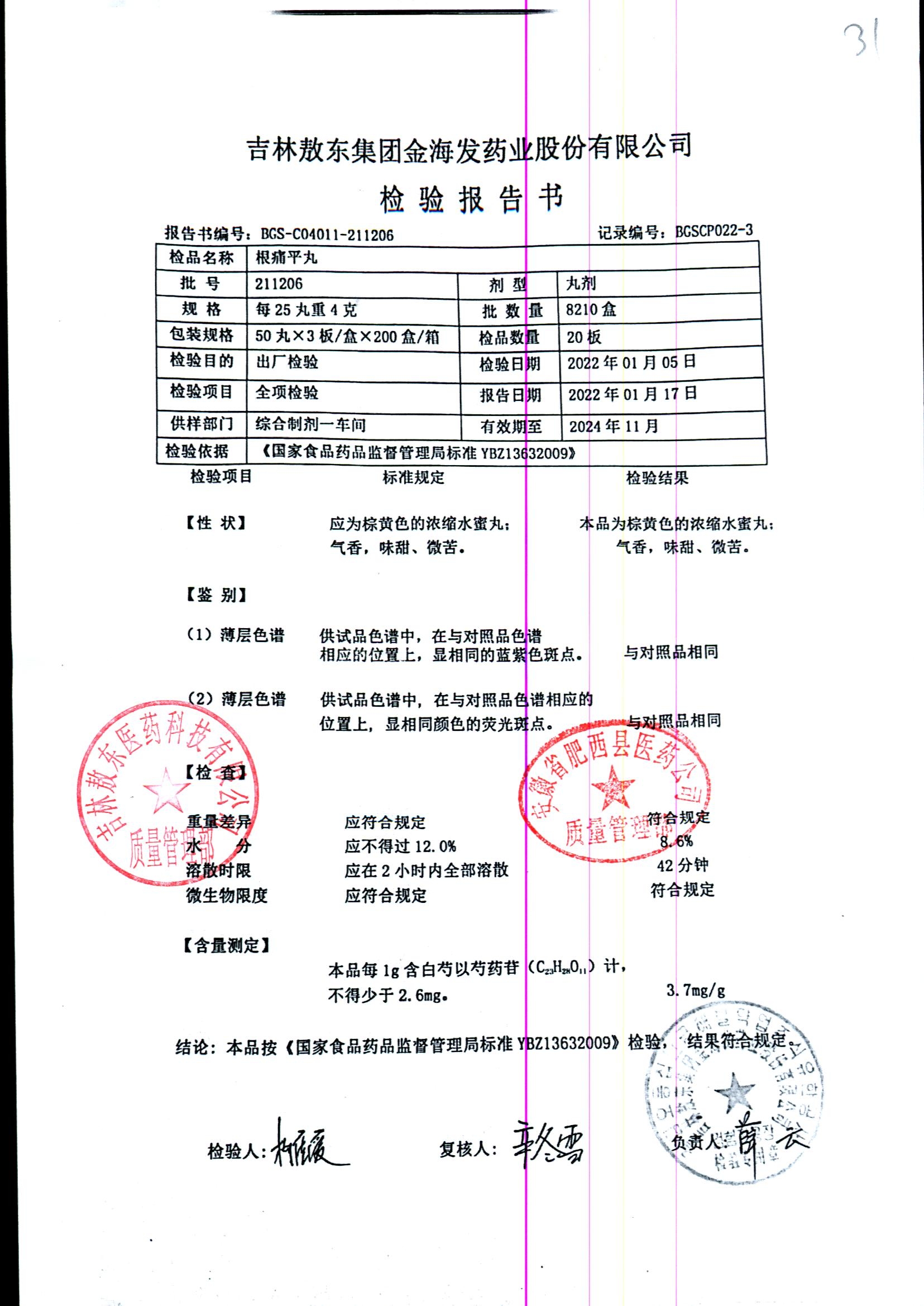 | 根痛平丸 | 50s*3板 | 210704 | 查看詳情 |