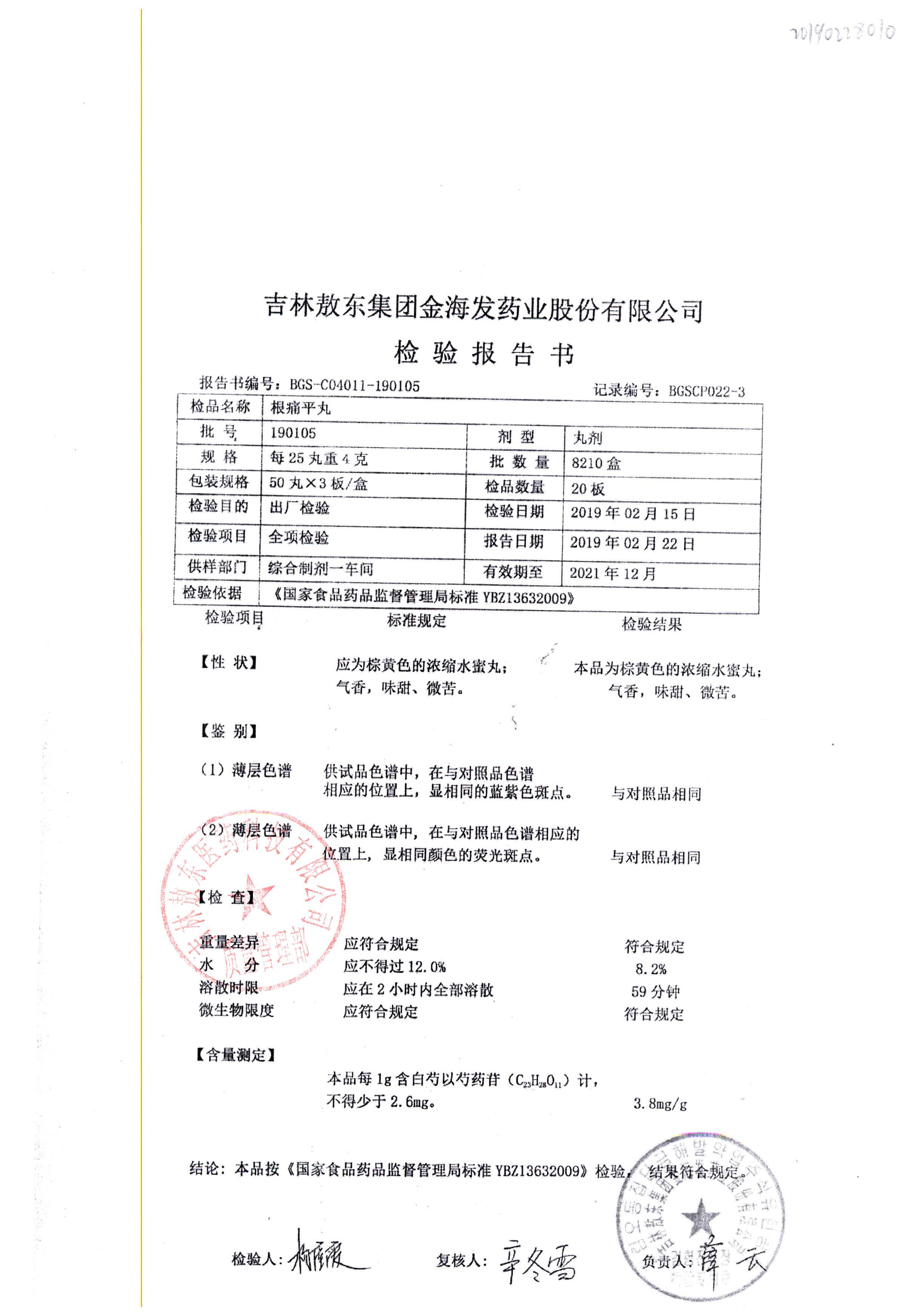 | 根痛平丸 | 50s*3板 | 190801 | 查看詳情 |