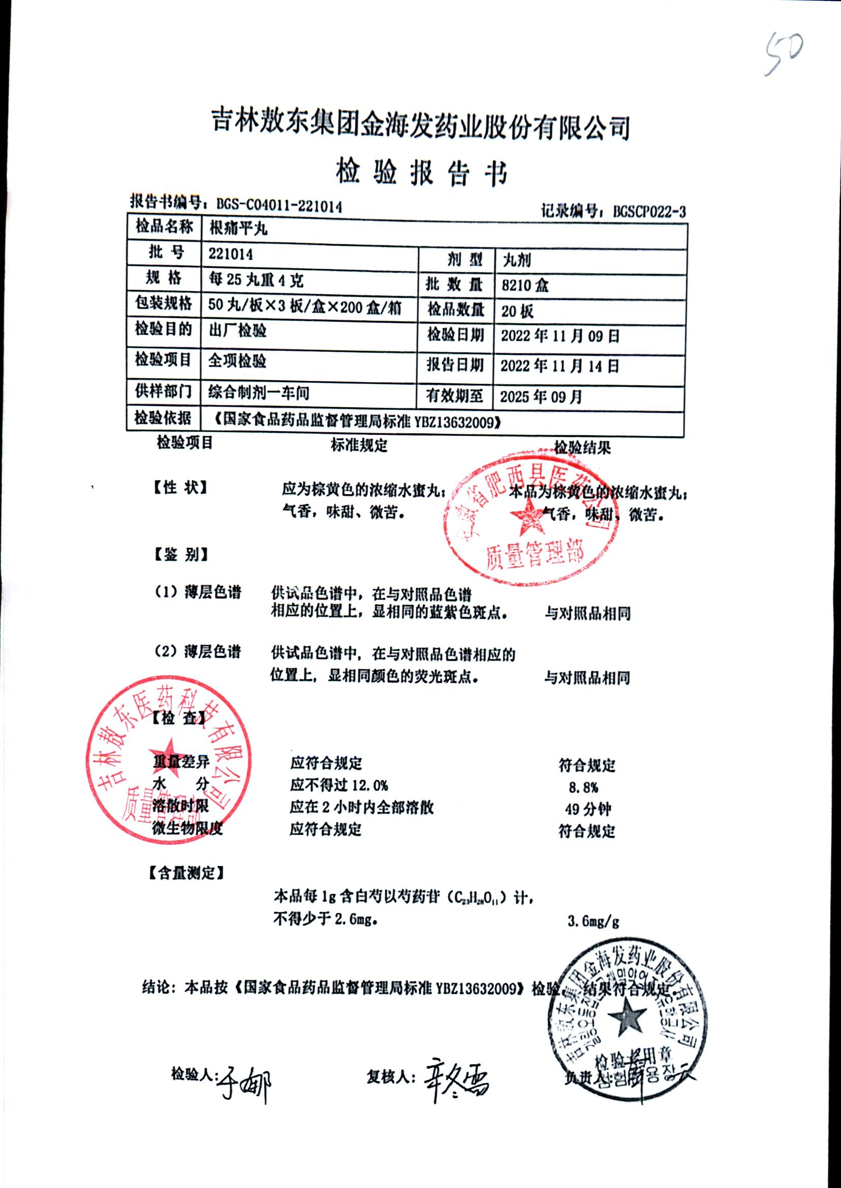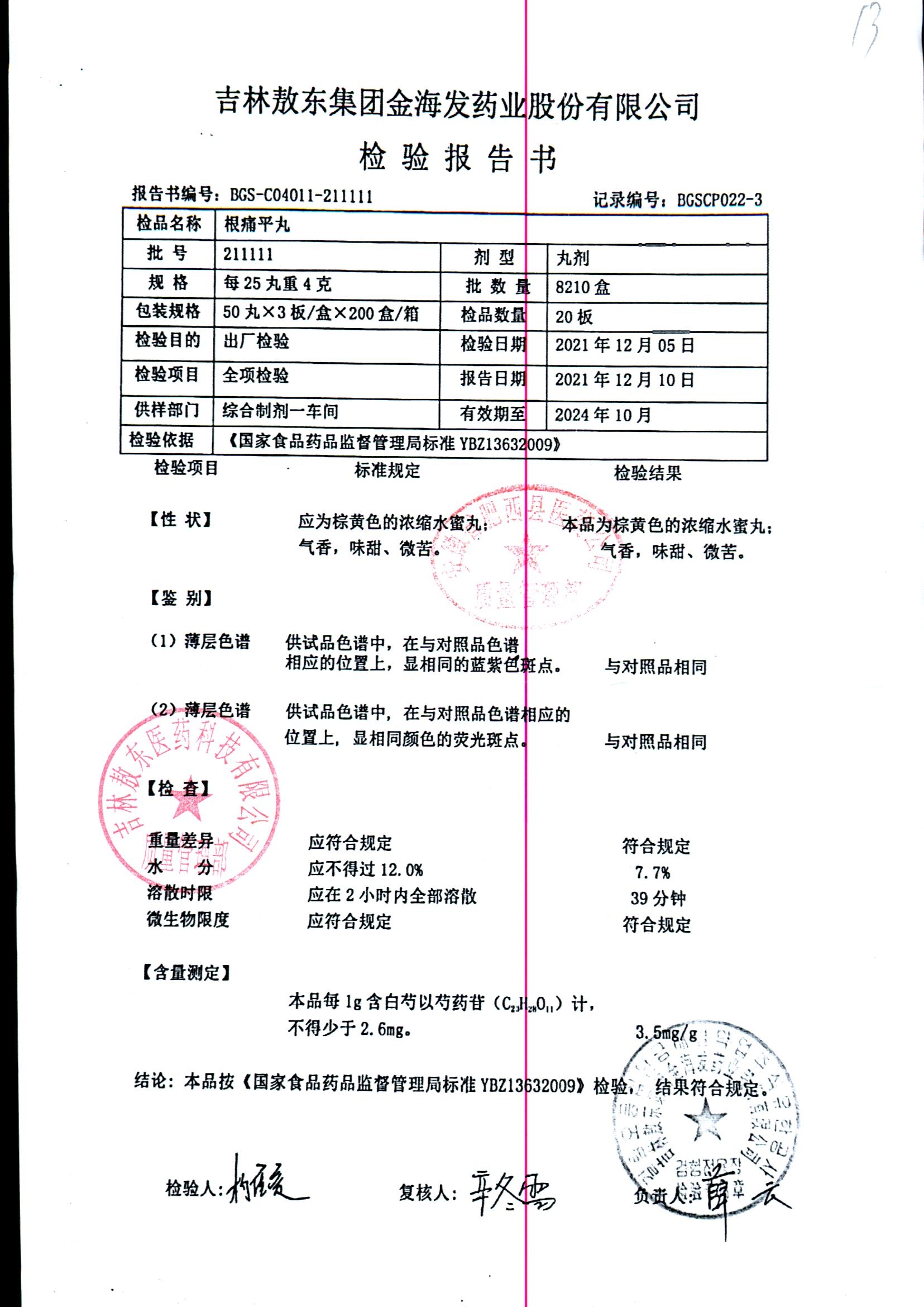 | 根痛平丸 | 50s*3板 | 210911 | 查看詳情 |