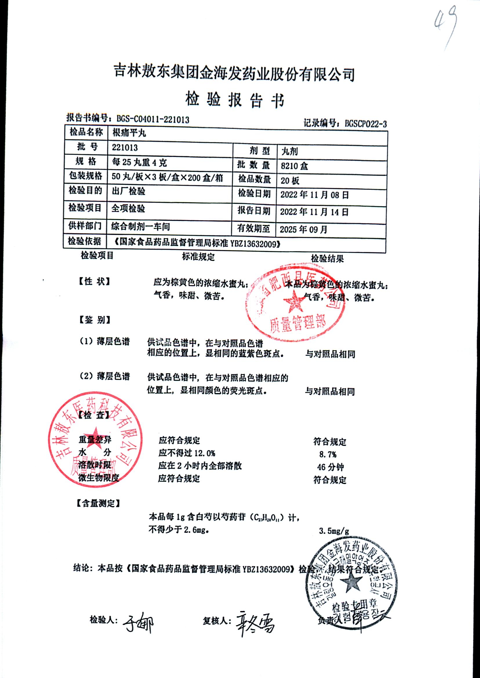 | 根痛平丸 | 50s*3板 | 221013 | 查看詳情 |