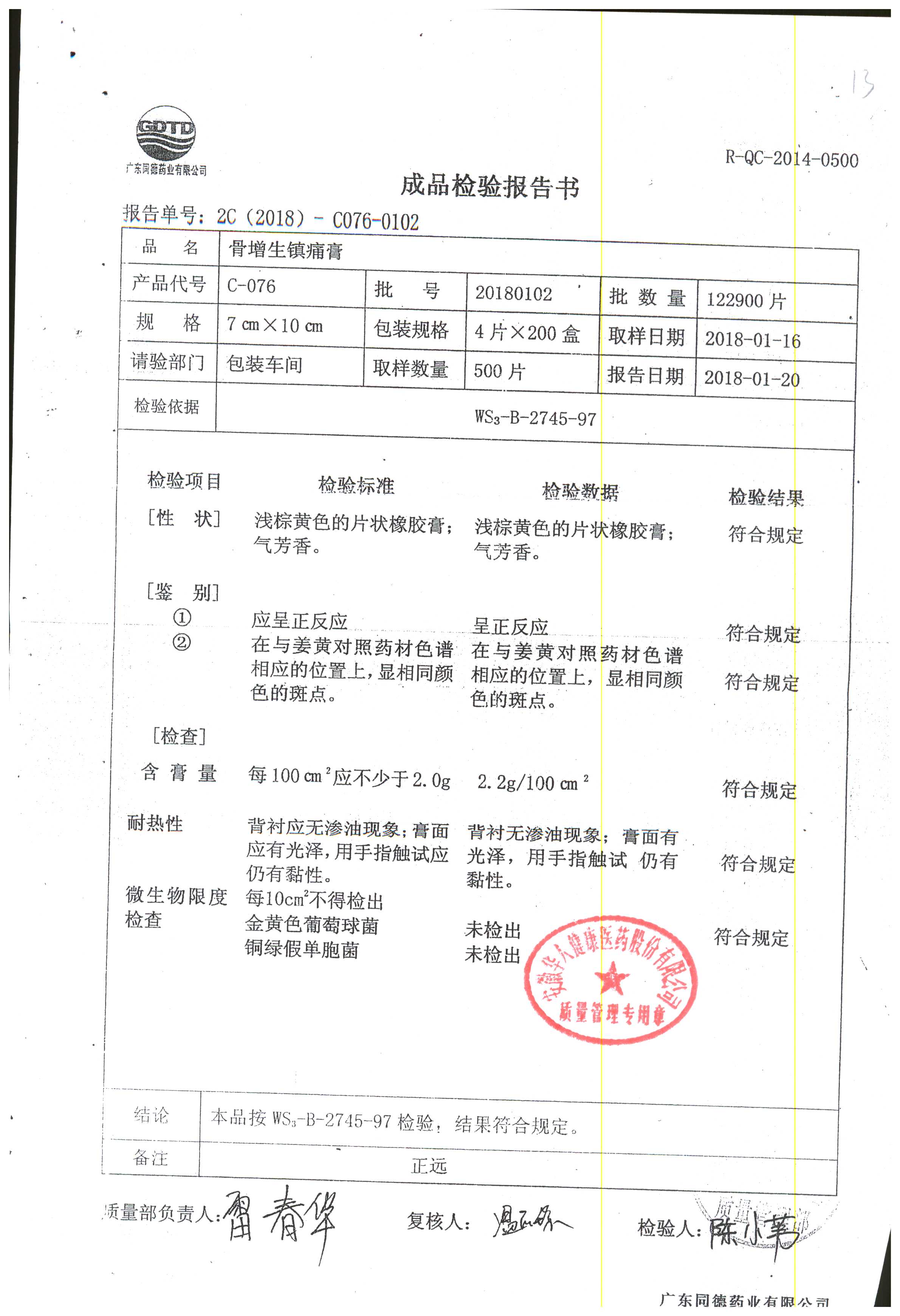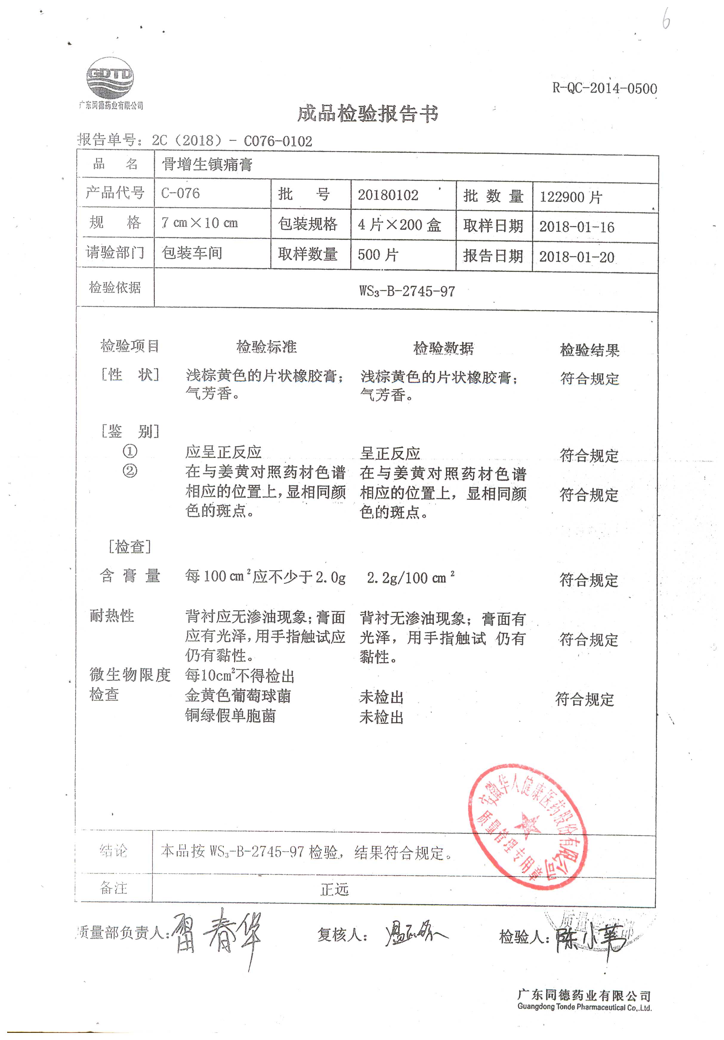 | 骨增生鎮(zhèn)痛膏 | 7cm*10cm | 20180102 | 查看詳情 |