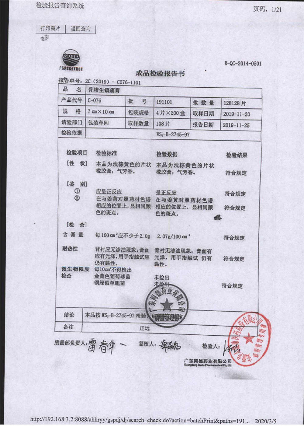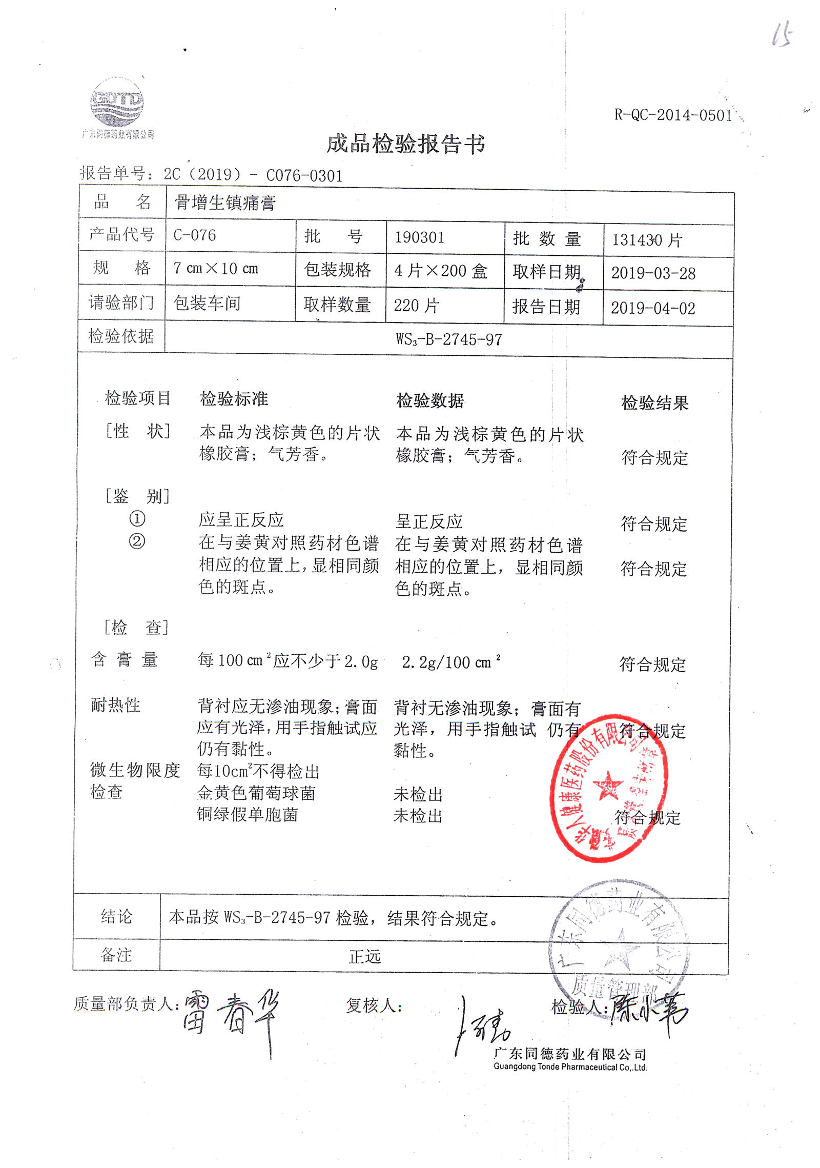 | 骨增生鎮(zhèn)痛膏 | 7cm*10cm | 190301 | 查看詳情 |