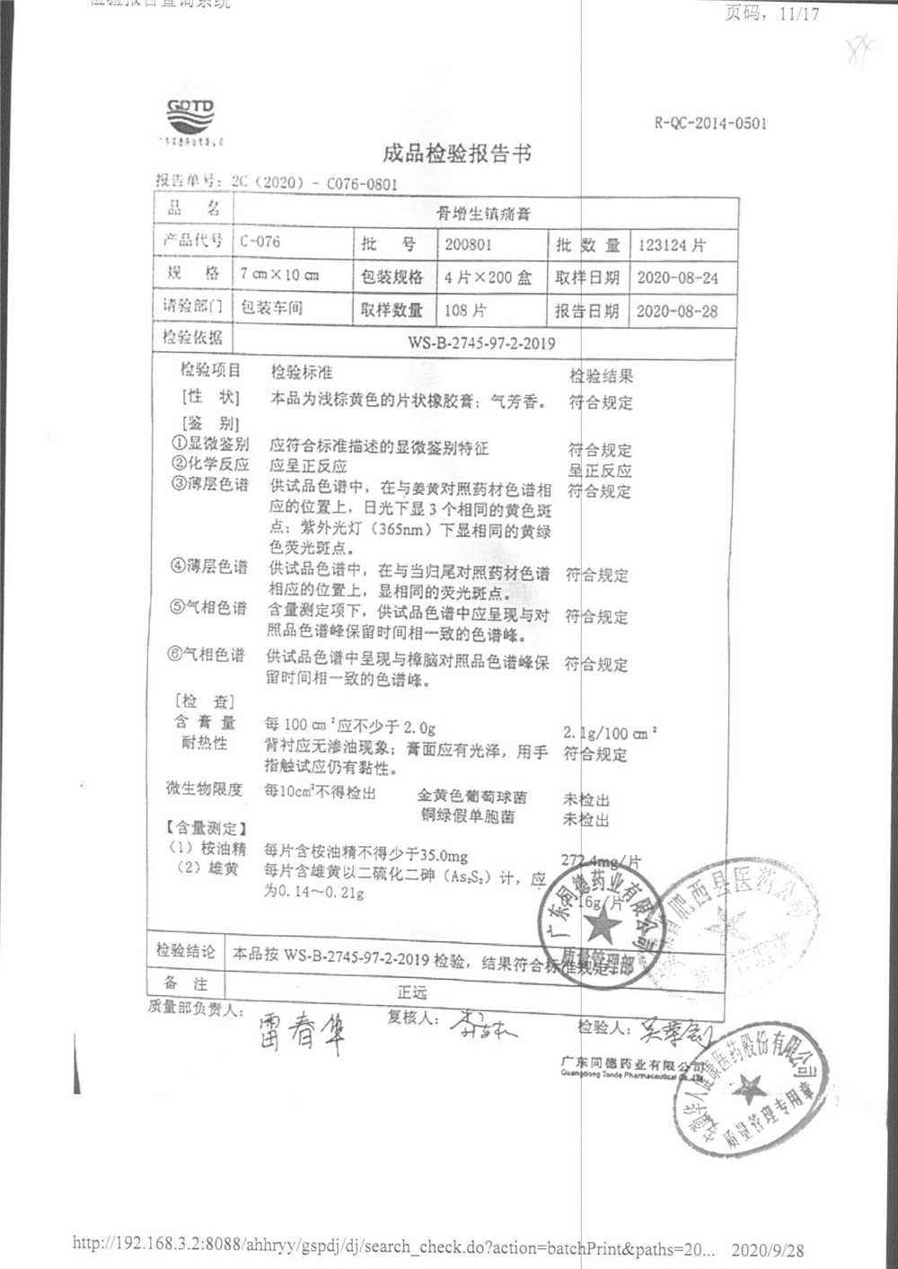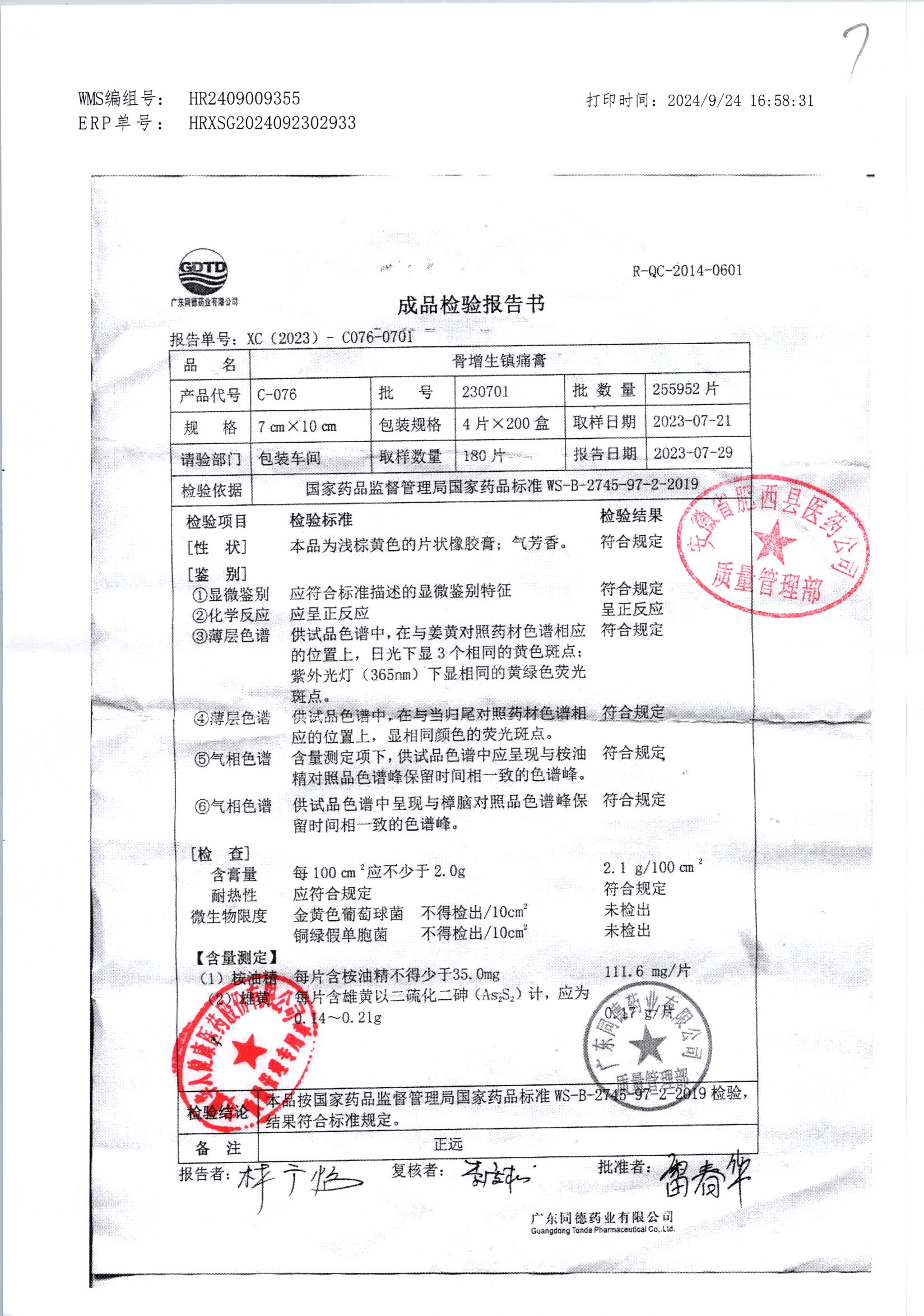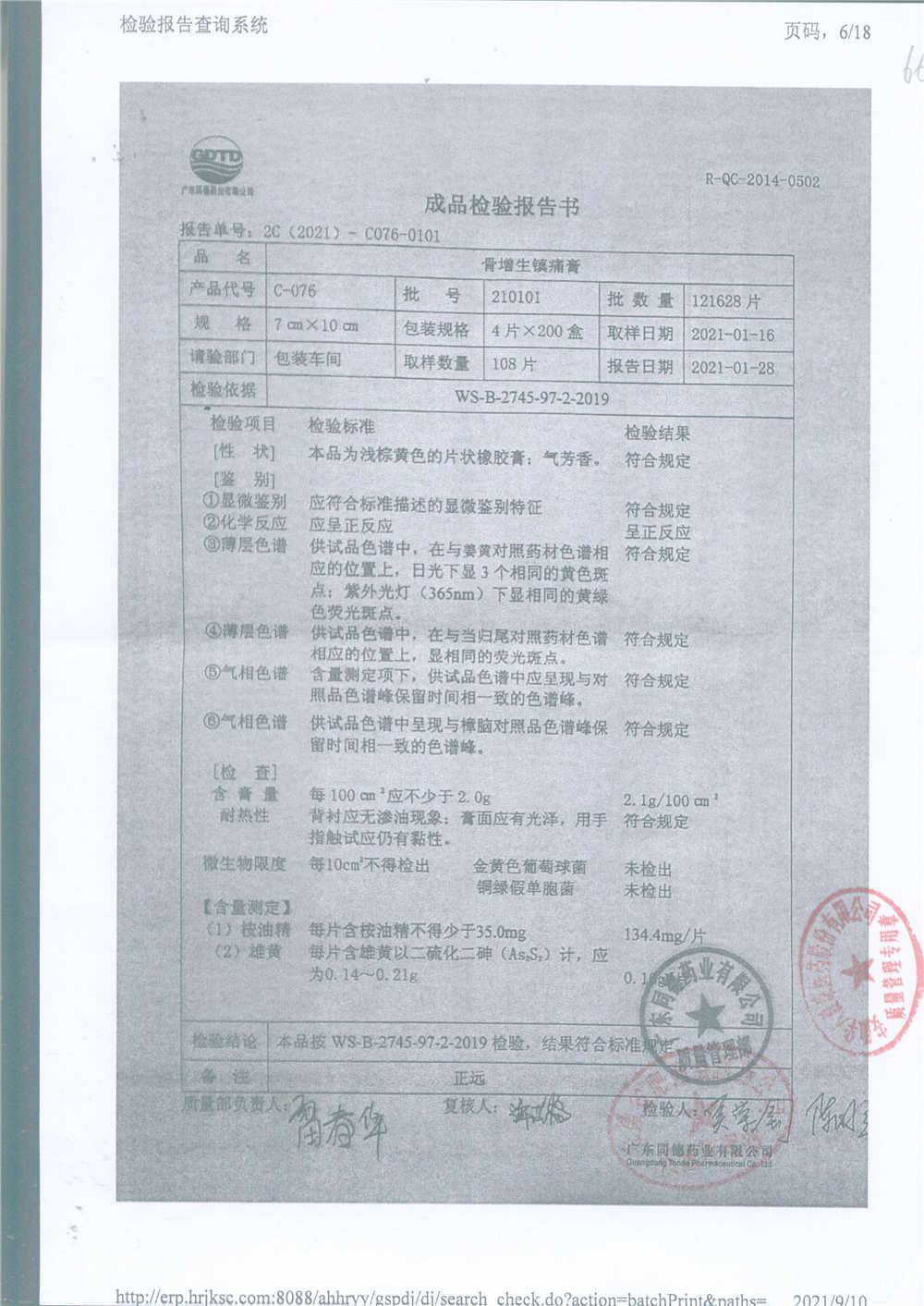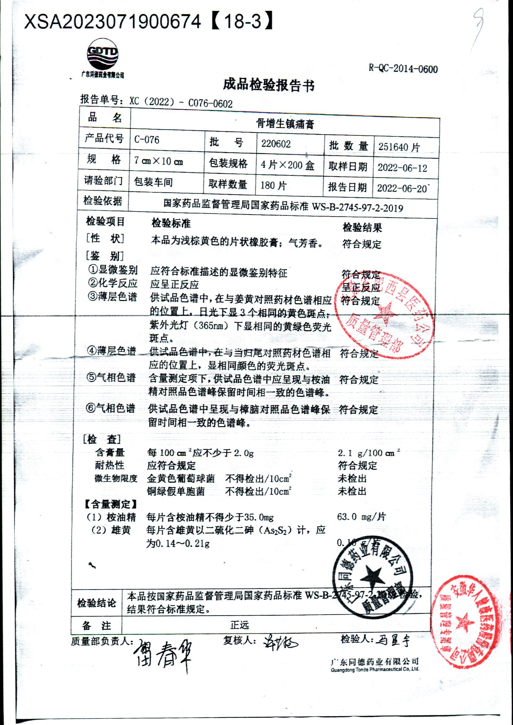 | 骨增生鎮(zhèn)痛膏 | 7cm*10cm | 20180901 | 查看詳情 |