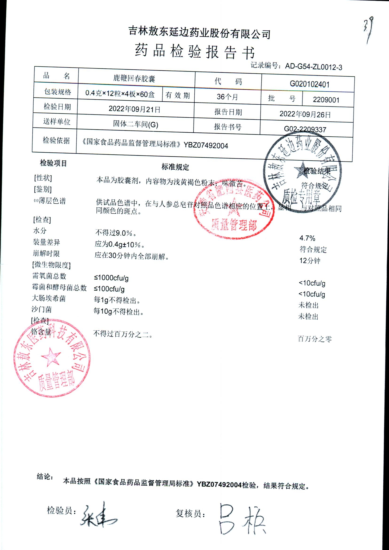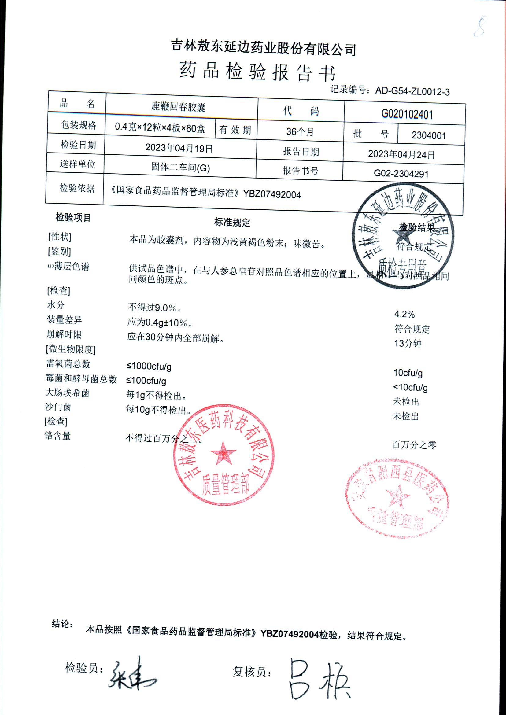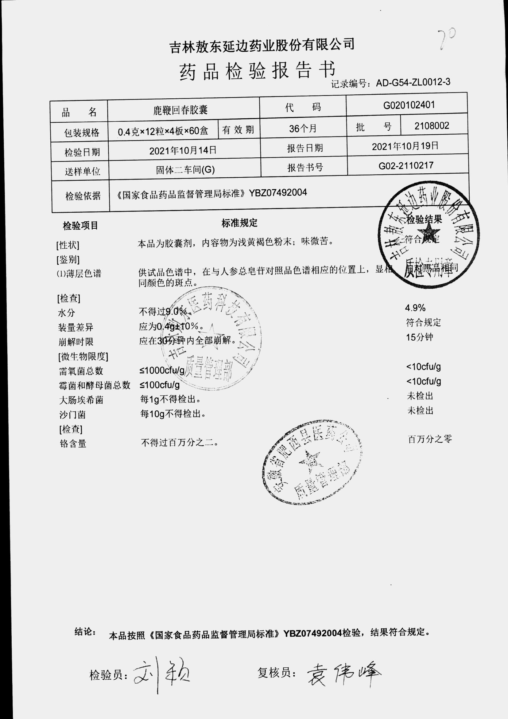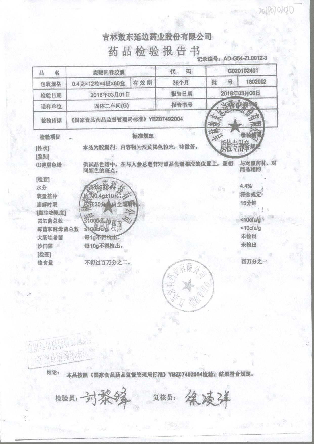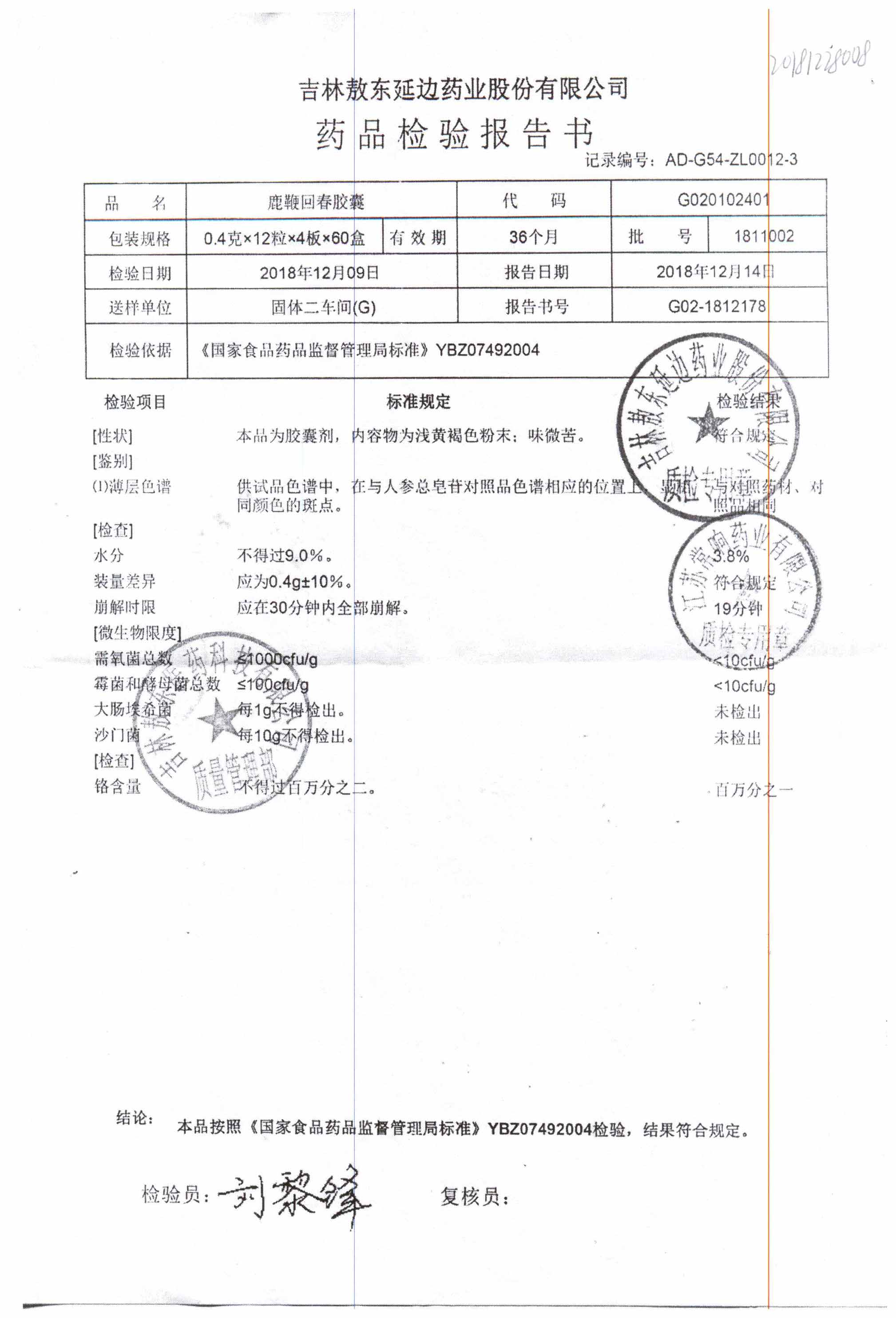 | 鹿鞭回春膠囊 | 0.4g*48s | 2005003 | 查看詳情 |