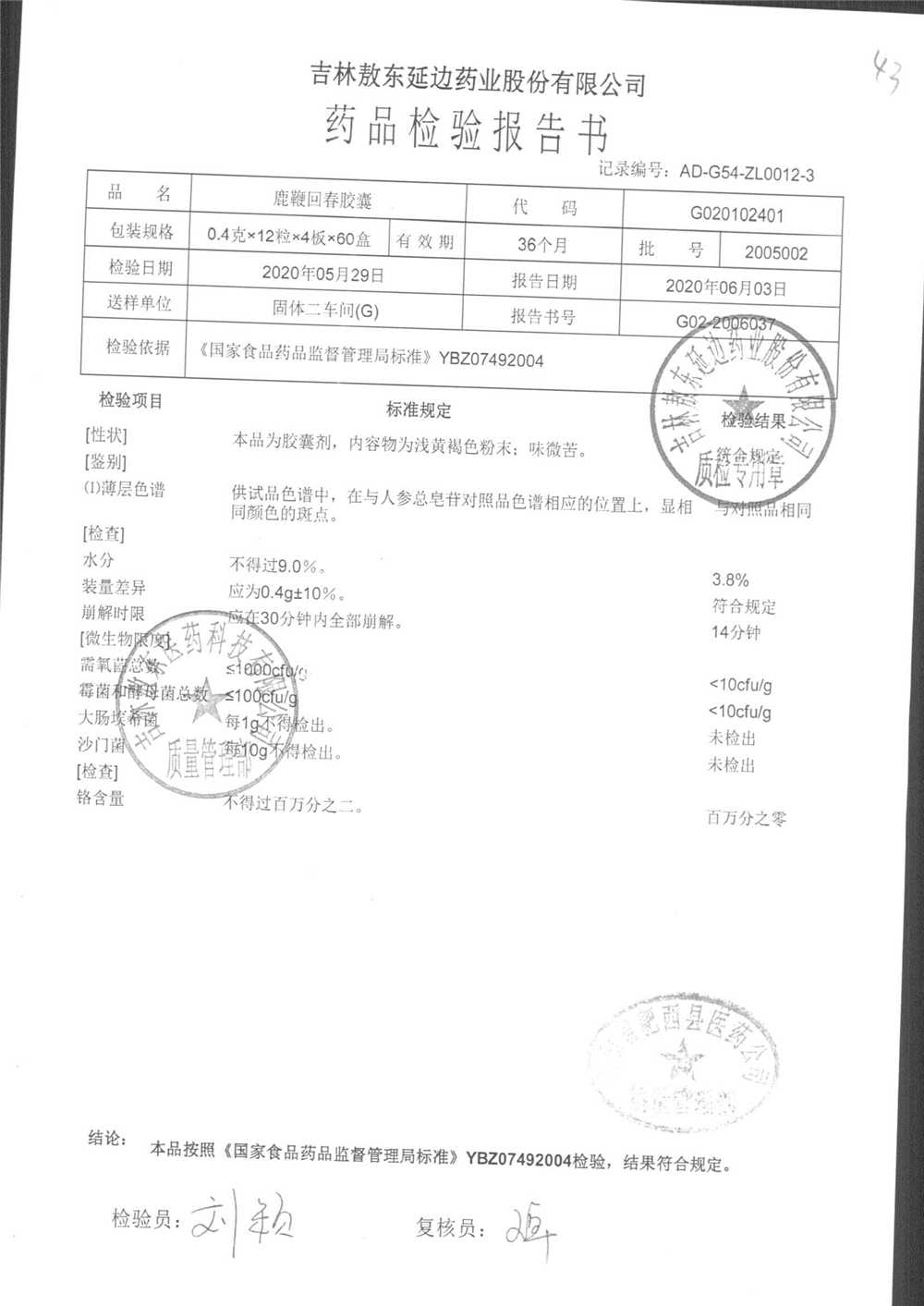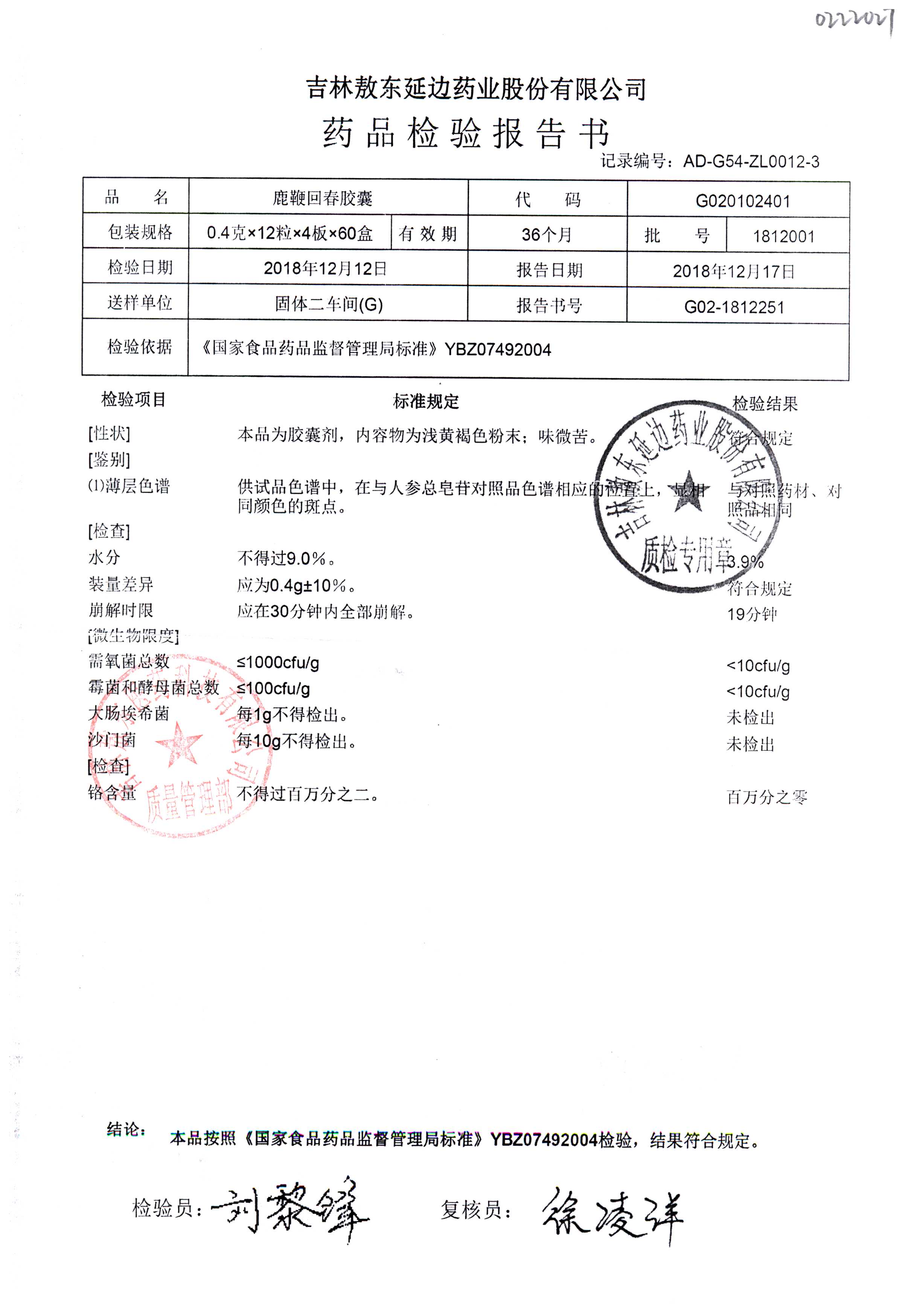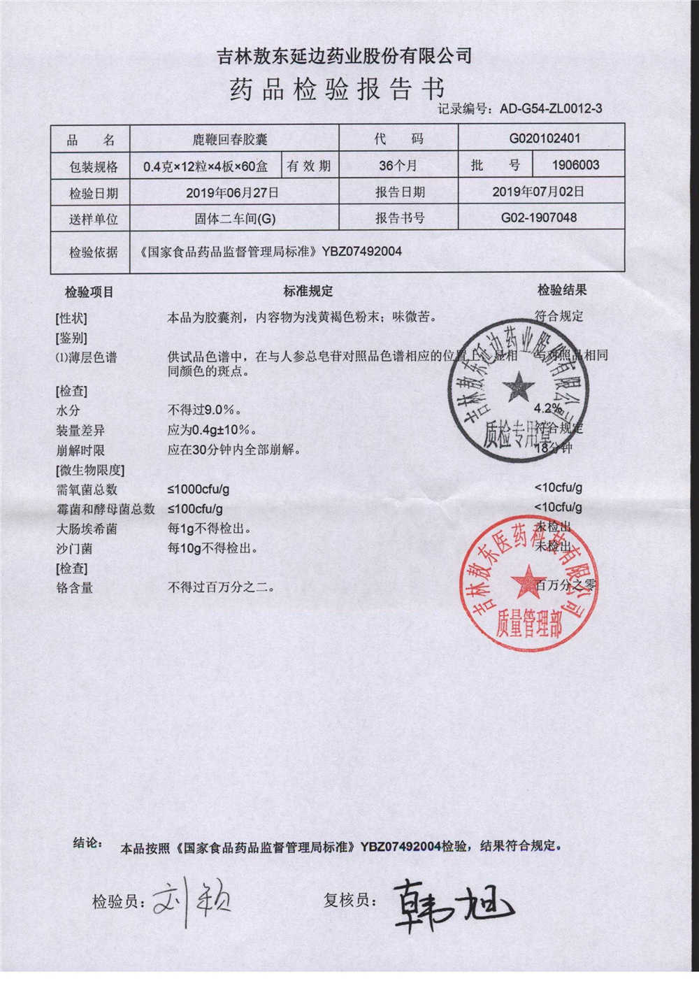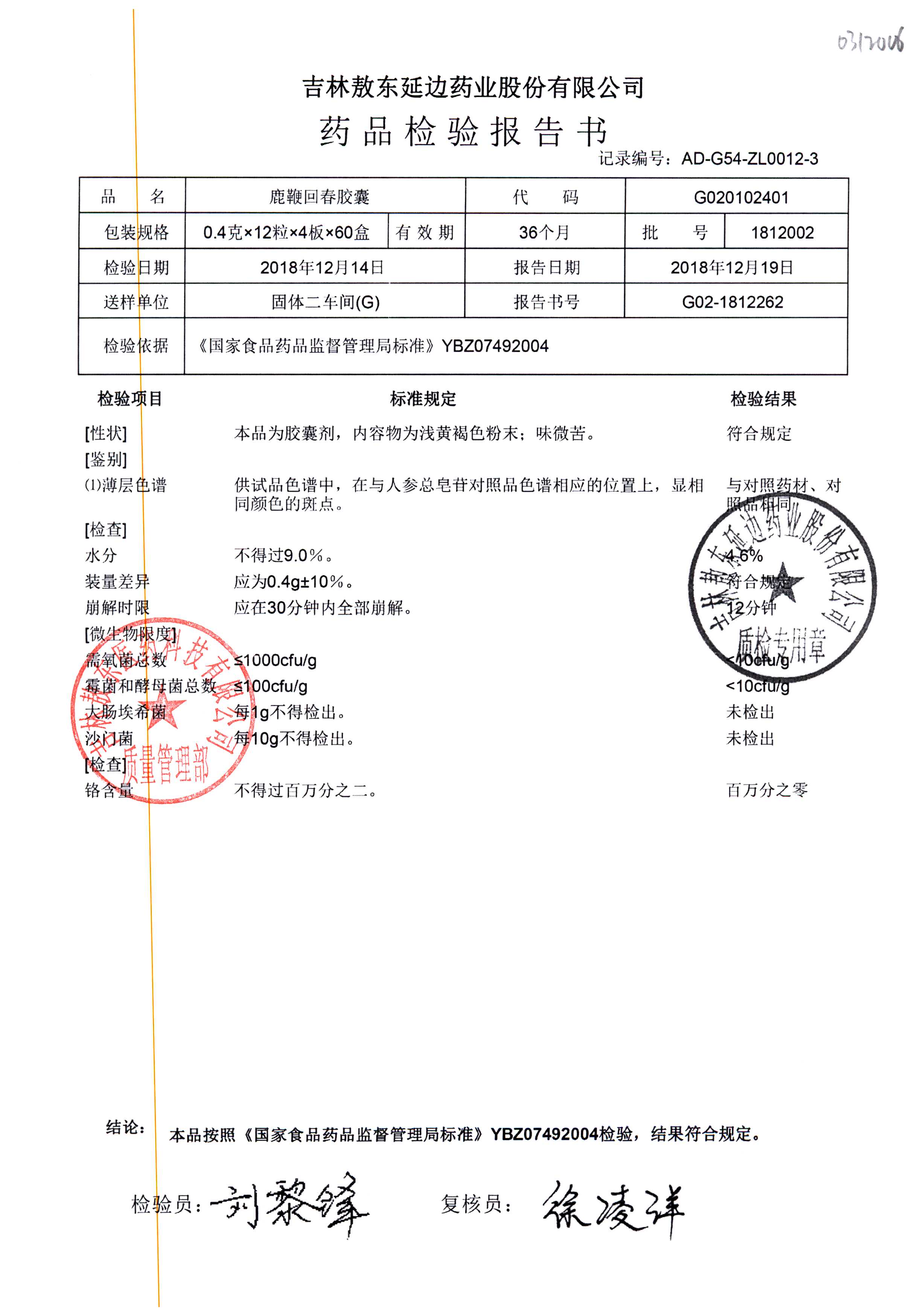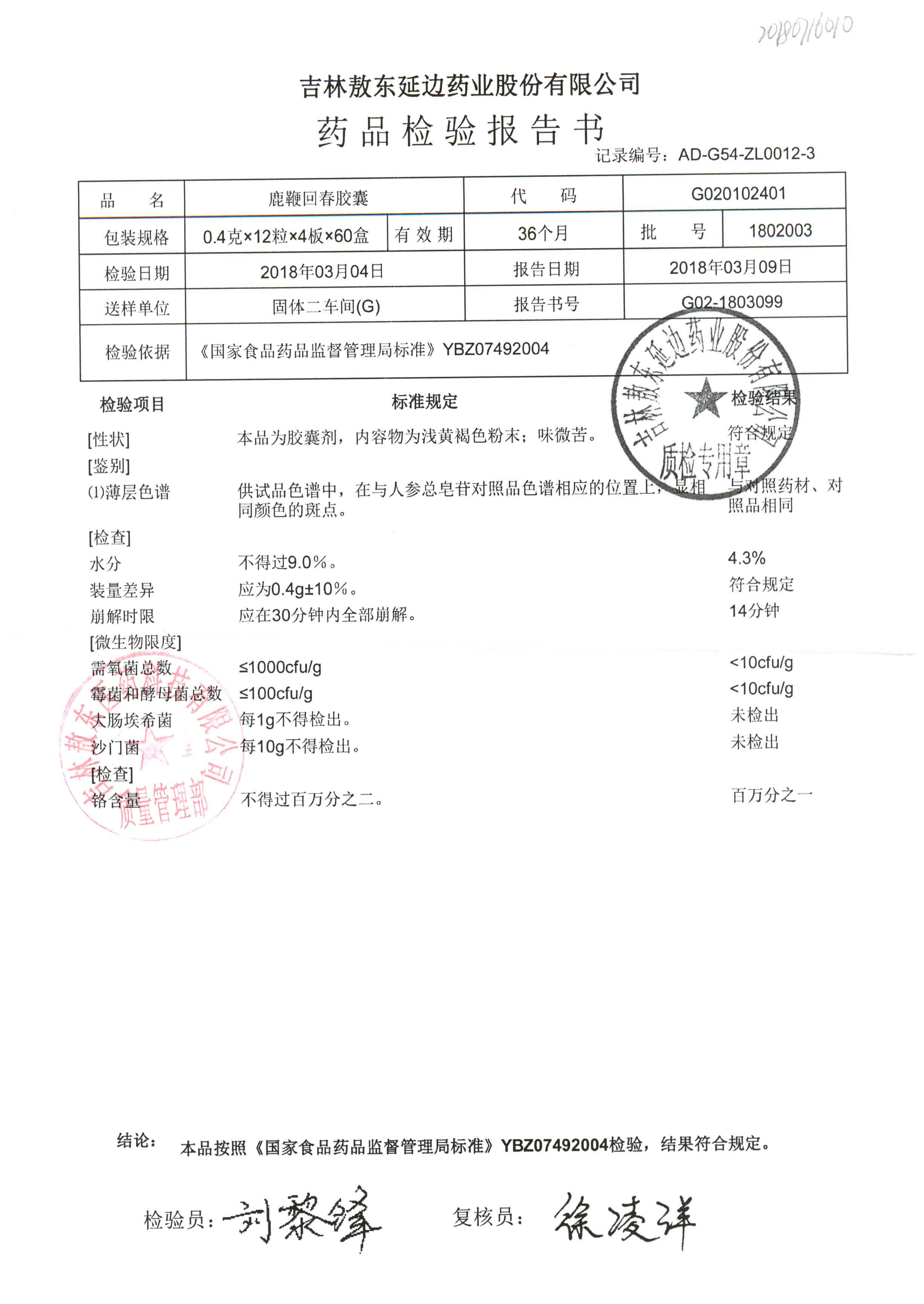 | 名稱 | 規(guī)格 | 批號(hào) | 藥檢報(bào)告 |