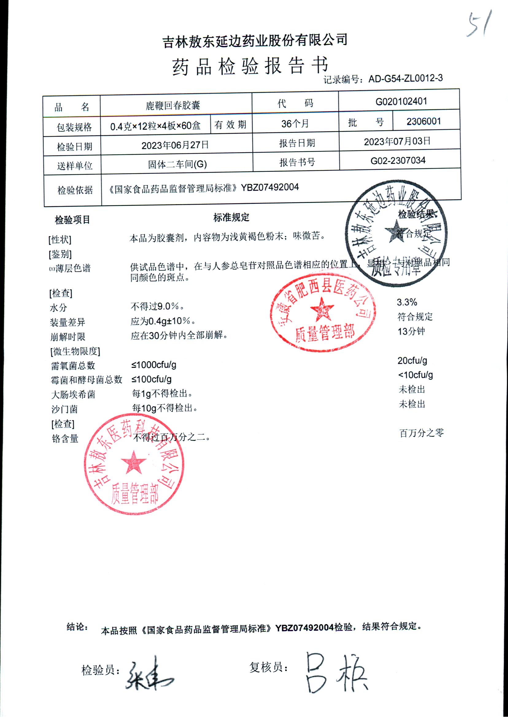 | 鹿鞭回春膠囊 | 0.4g*48s | 2306001 | 查看詳情 |