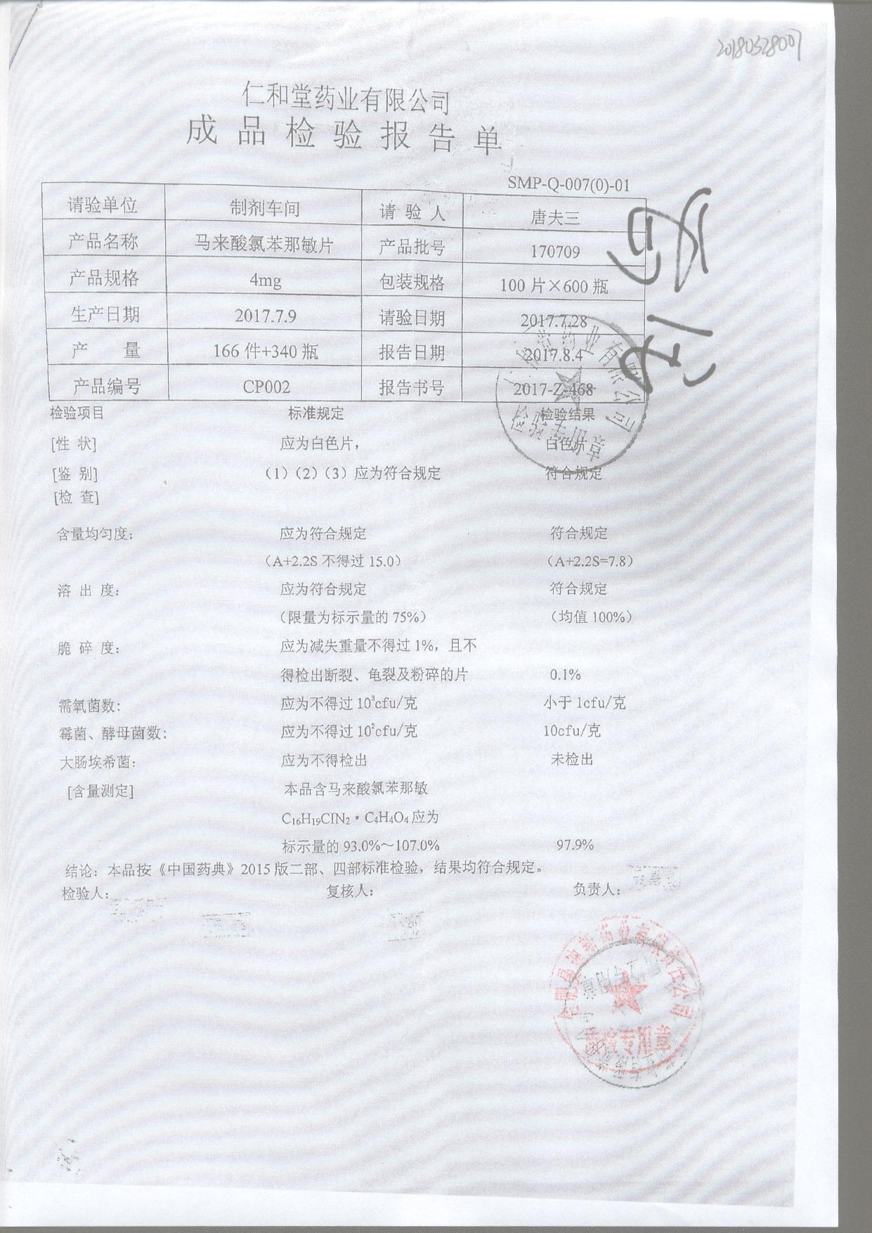 | 名稱 | 規(guī)格 | 批號 | 藥檢報告 |