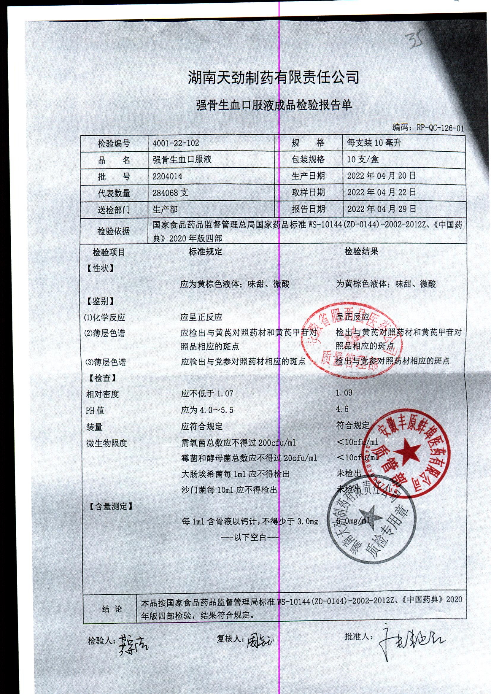 | 強骨生血口服液 | 10ml | 2211025 | 查看詳情 |