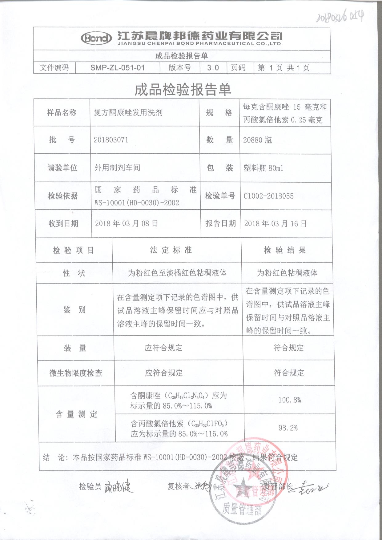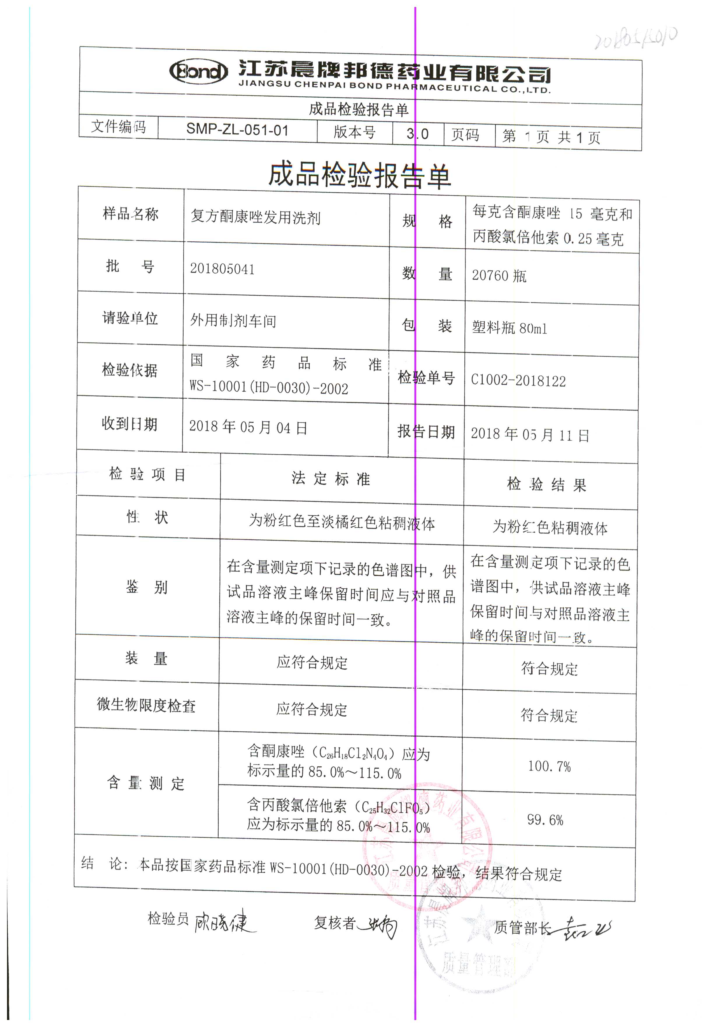 | 復(fù)方酮康唑發(fā)用洗劑 | 80ml | 201805041 | 查看詳情 |