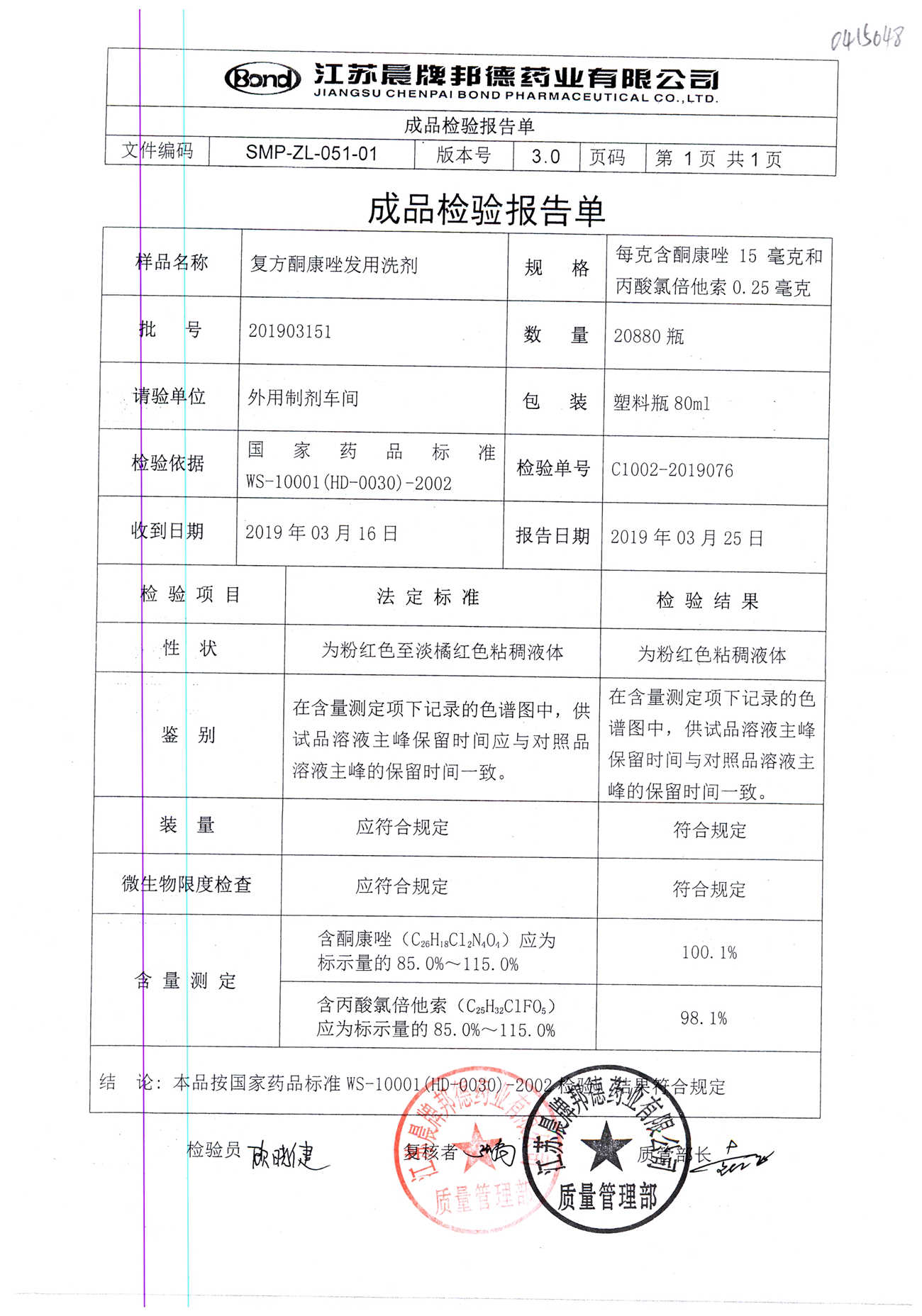 | 復(fù)方酮康唑發(fā)用洗劑 | 80ml | 201903151 | 查看詳情 |