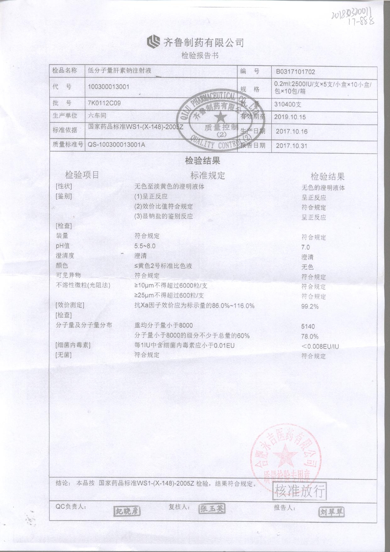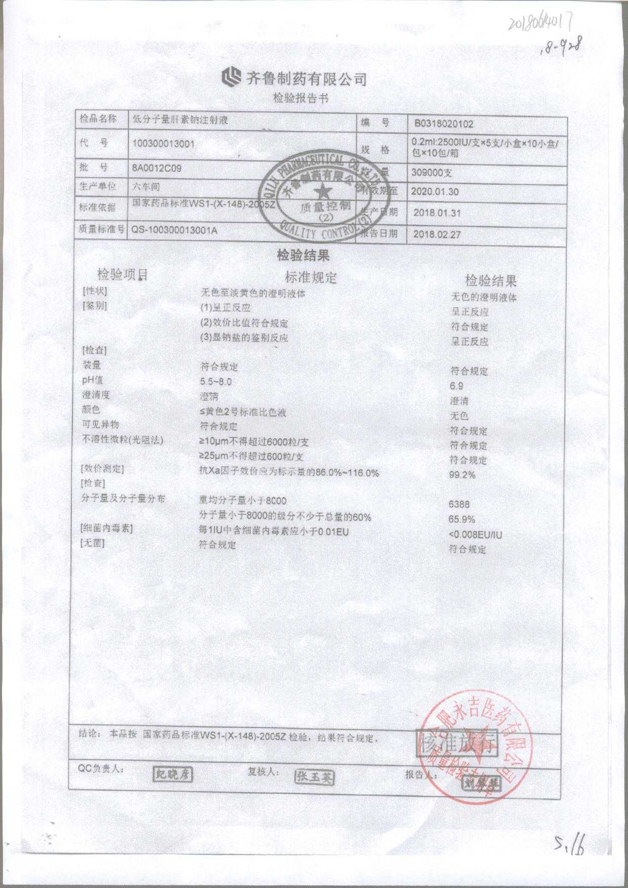 低分子量肝素鈉注射液 0.2ml:2500IU/支*5支 7K0112C09 查看詳情